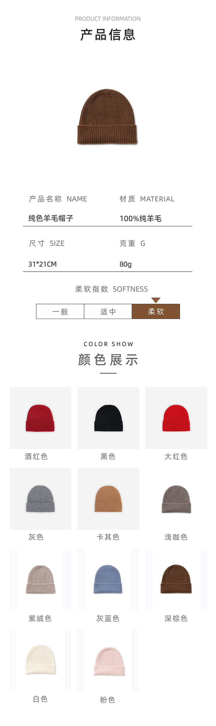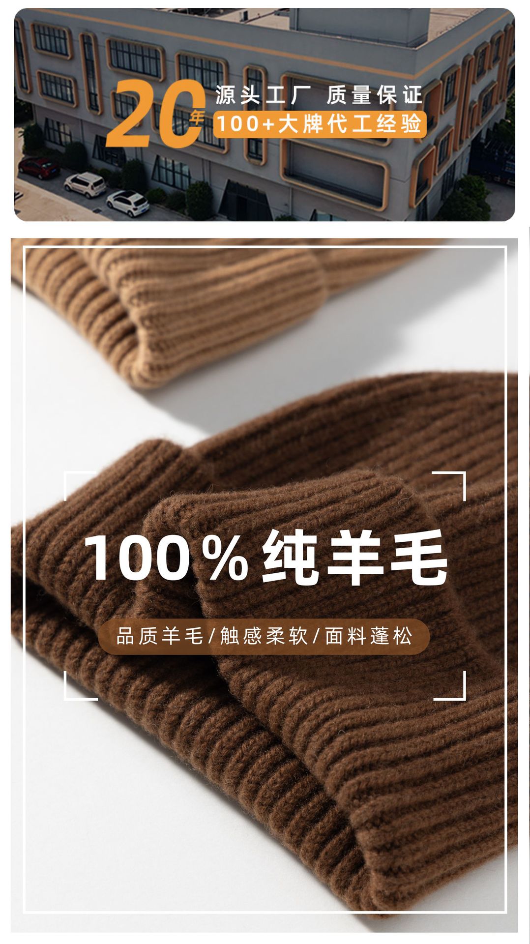 Selección estricta de 100% de lana sombrero de punto para mujeres otoño invierno alto sentido sombrero universal simple sombrero de lana cálida sombrero de hombre sombrero adulto