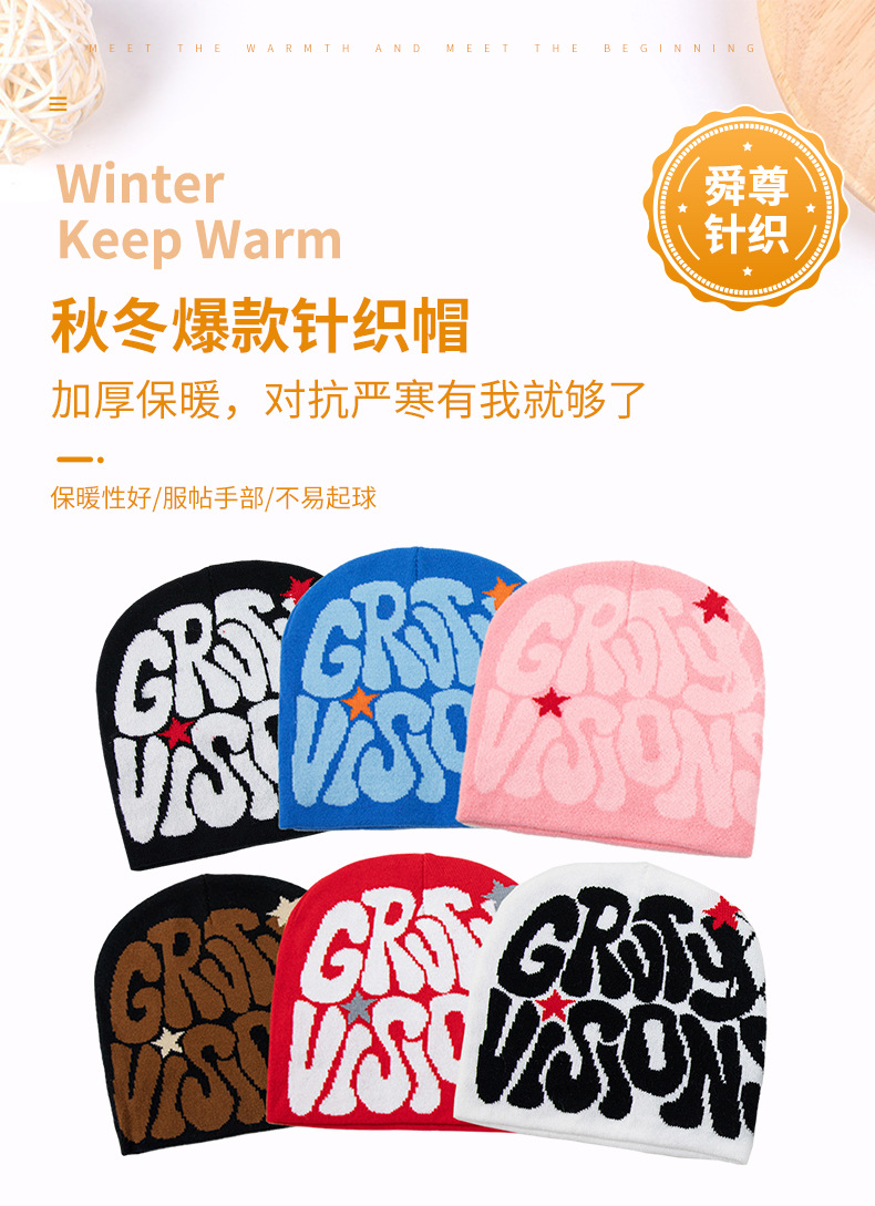 Nueva letra transfronteriza Jacquard sombrero de punto otoño e invierno al aire libre sombrero cálido versátil hip hop Street Fashion Hat