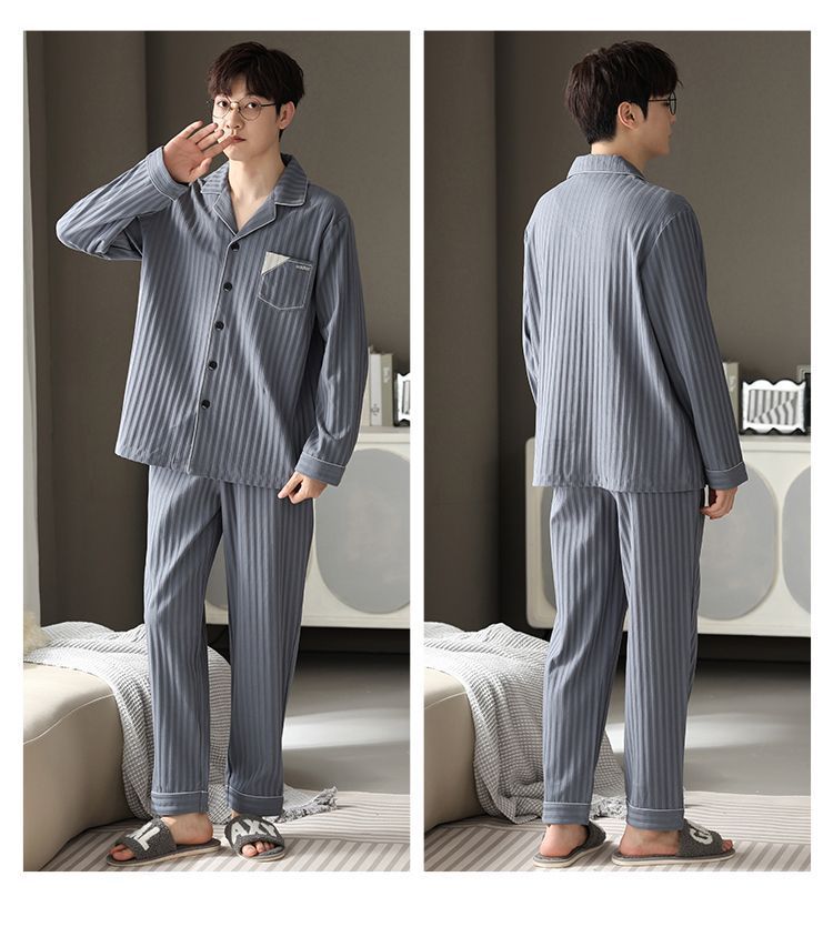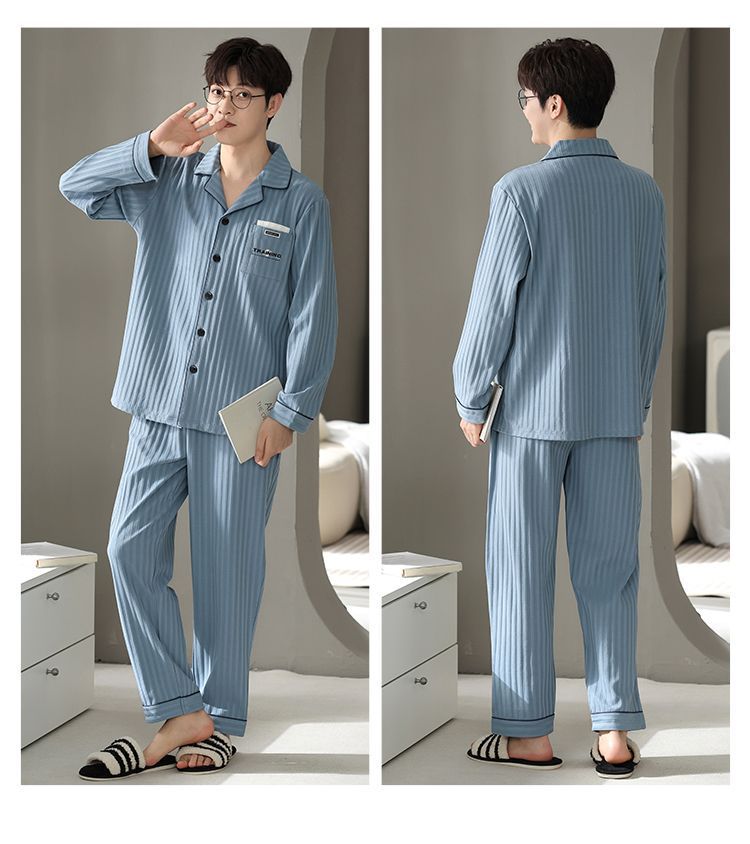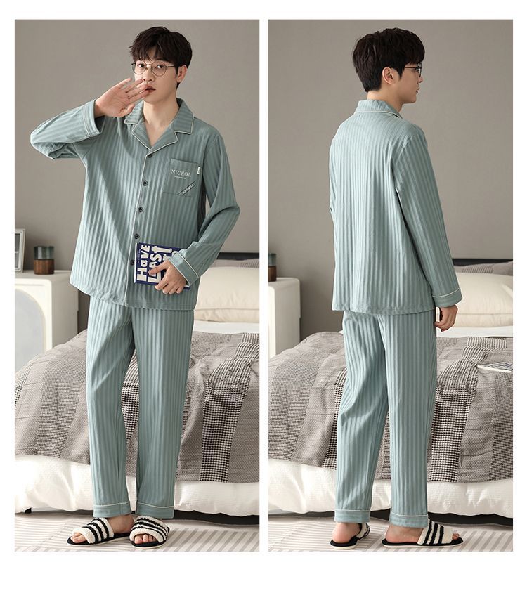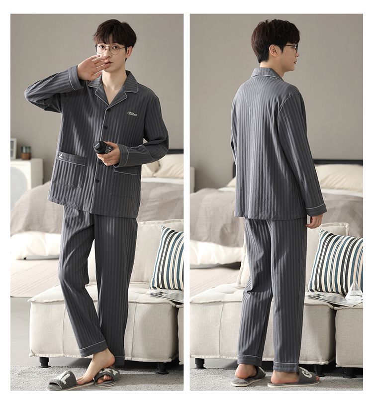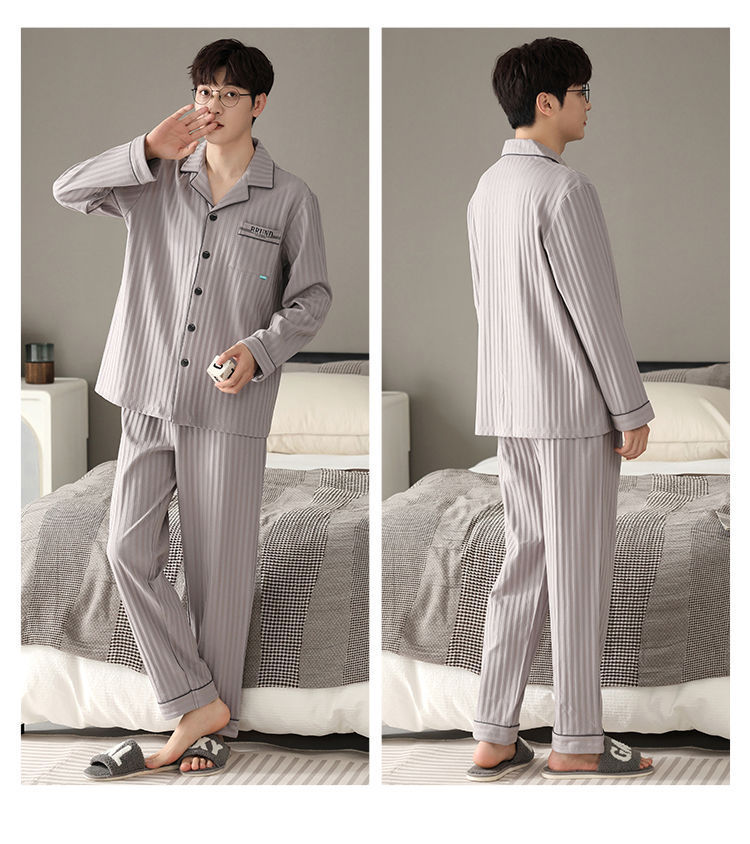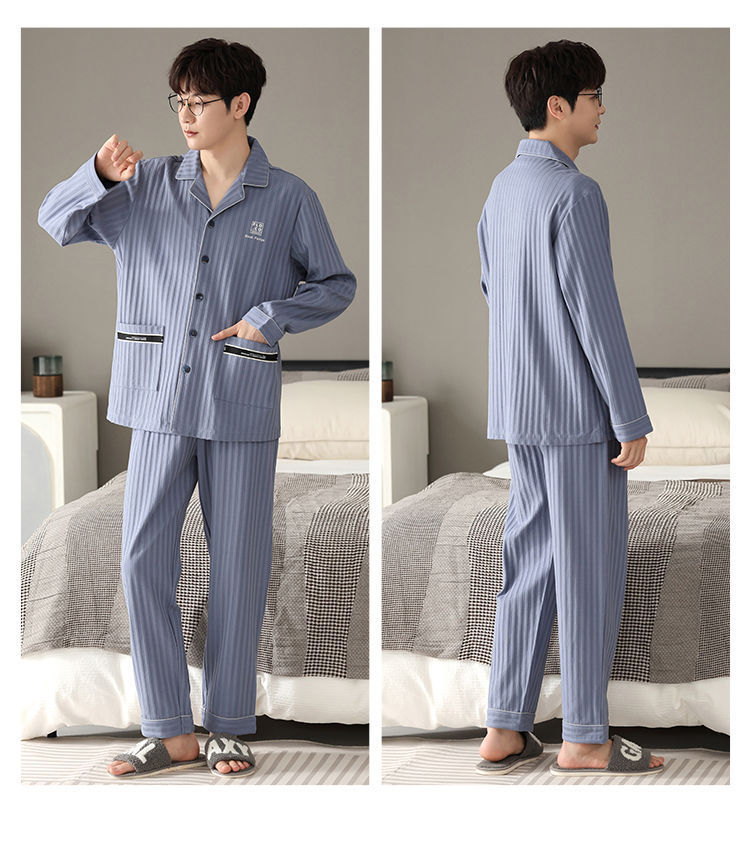 Pajamas de algodón de hombre primavera y otoño de manga larga nueva ropa casera suelta de tamaño grande engordado conjunto de ropa de hombre otoño y invierno