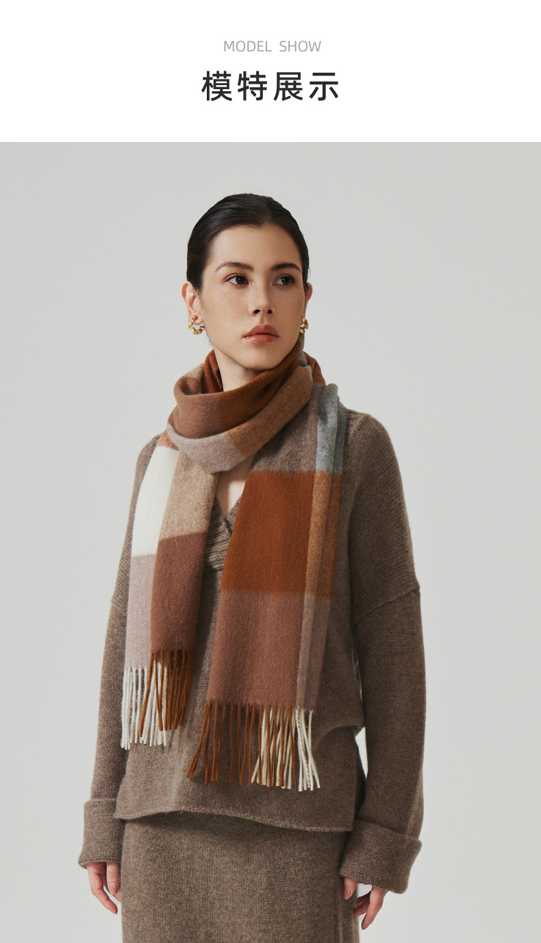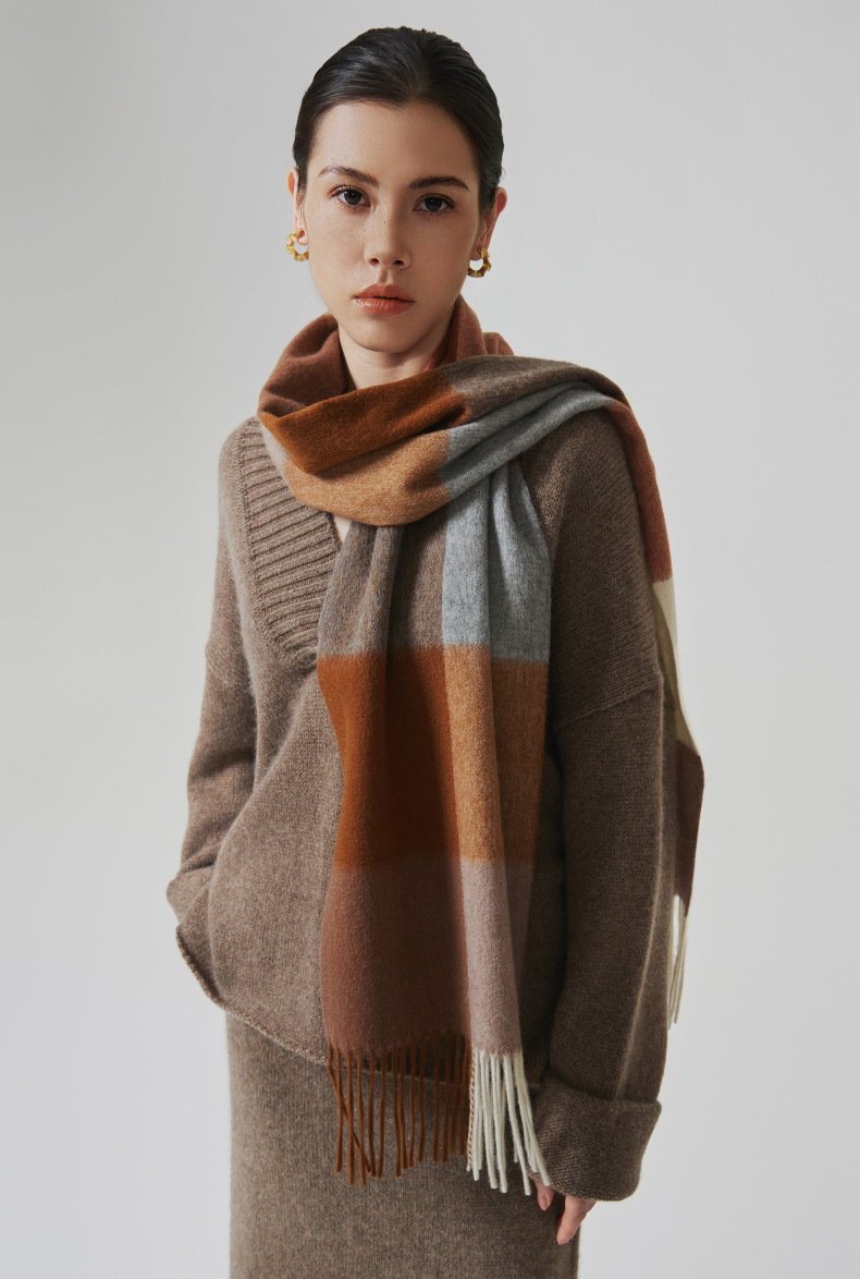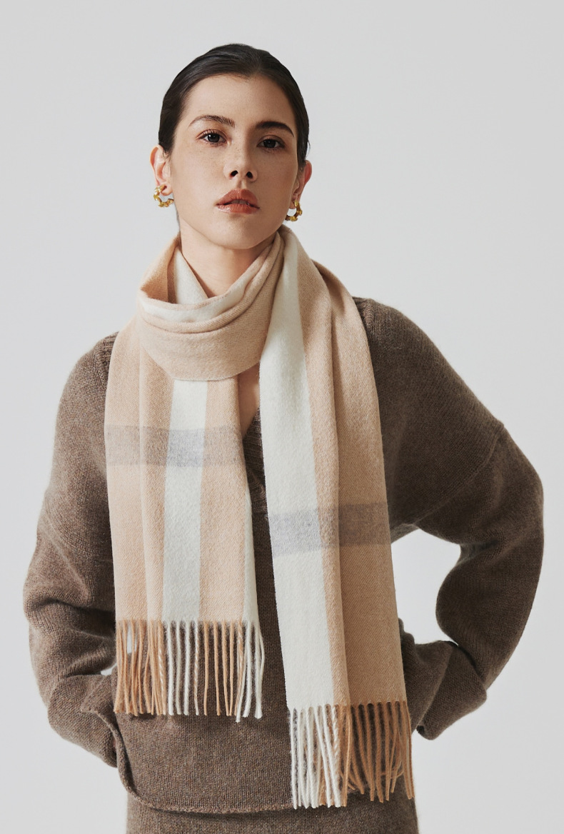 Nuevo estilo europeo y americano 100% bufanda de lana para mujer otoño e invierno chal a cuadros de alta calidad bufanda de borla simple salvaje al por mayor