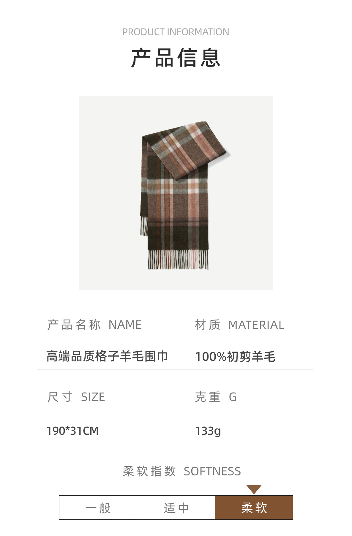 | Nombre de la tela | Bufanda a cuadros de lana de alta calidad |