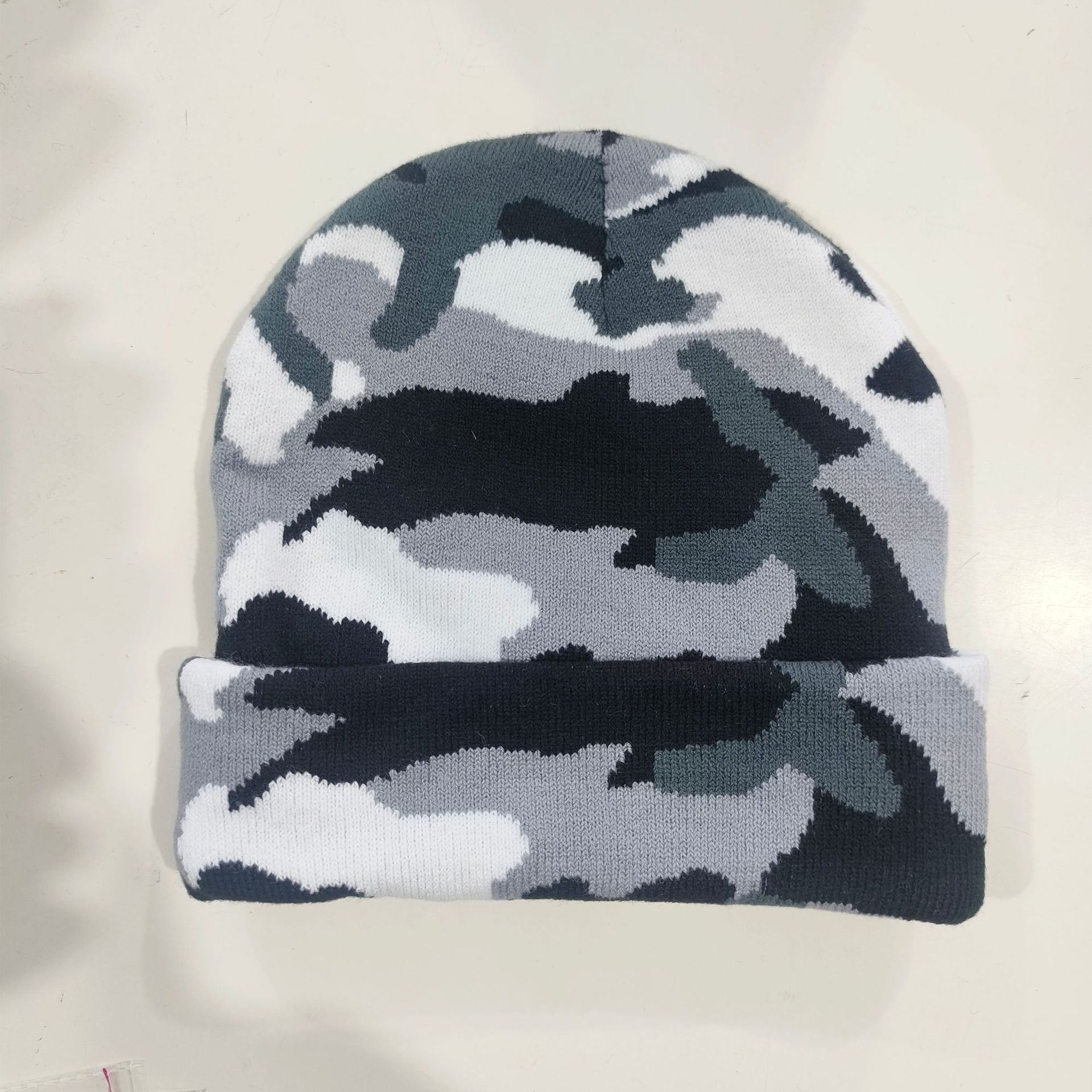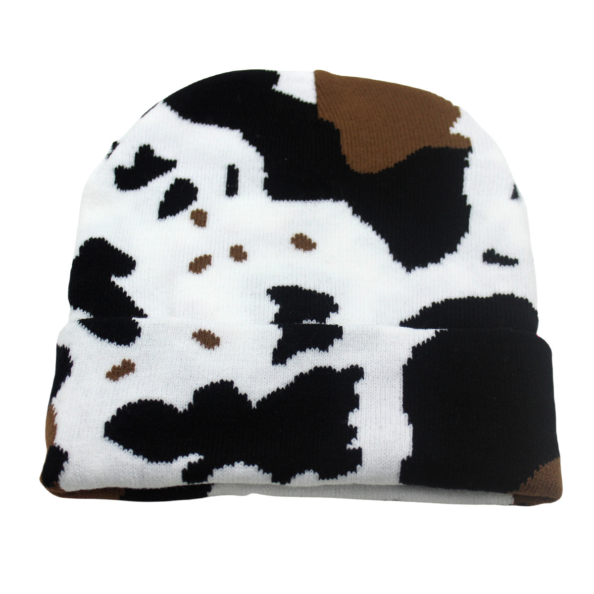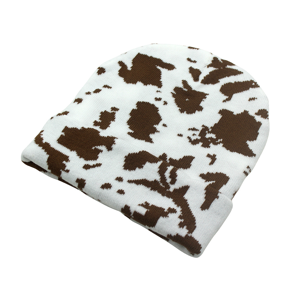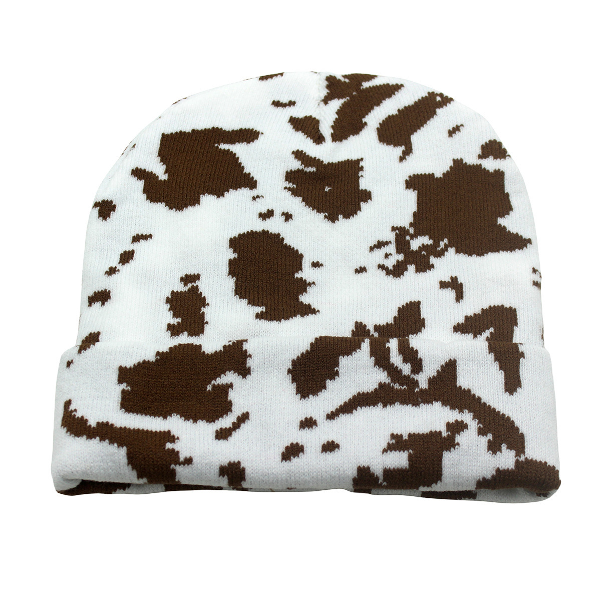 Nuevo sombrero de gorro de guisantes de invierno transfronterizo, sombrero de punto de lana corta con patrón de leche, jacquard, camuflaje cálido