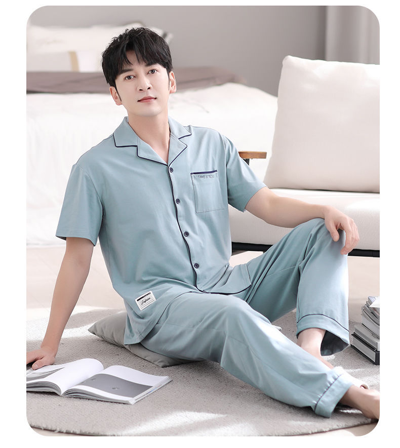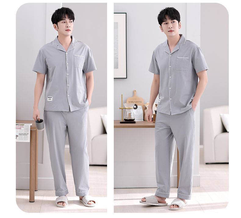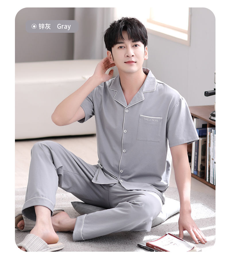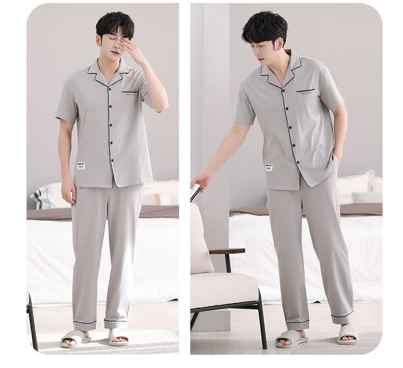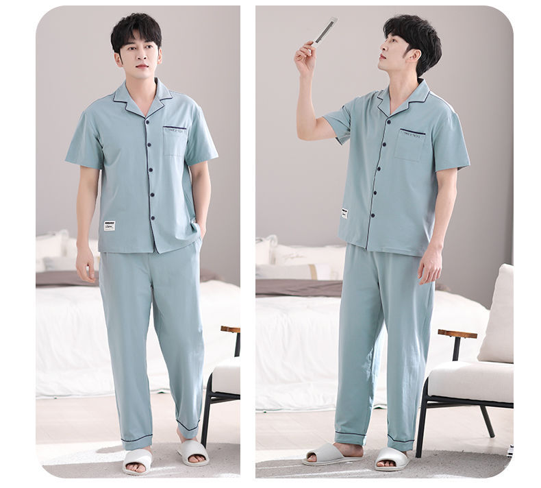 Pijamas de verano de los hombres 100% algodón pantalones de manga corta delgada verano de los hombres cardigan verano más tamaño homewear