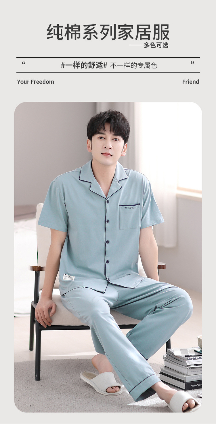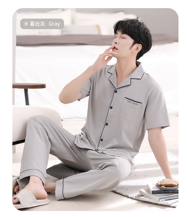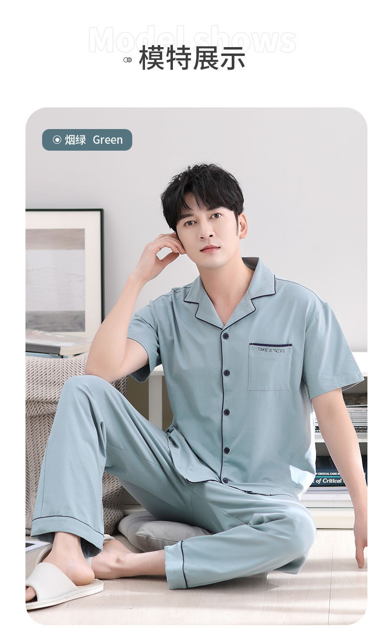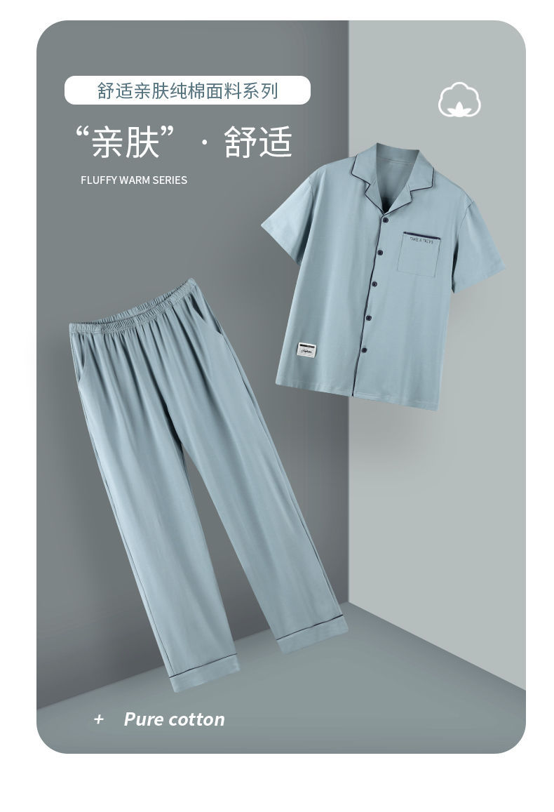 Pijamas de verano de los hombres 100% algodón pantalones de manga corta delgada verano de los hombres cardigan verano más tamaño homewear