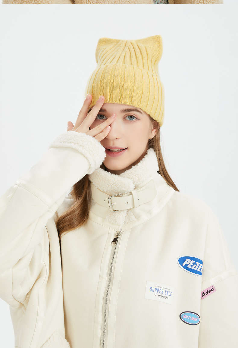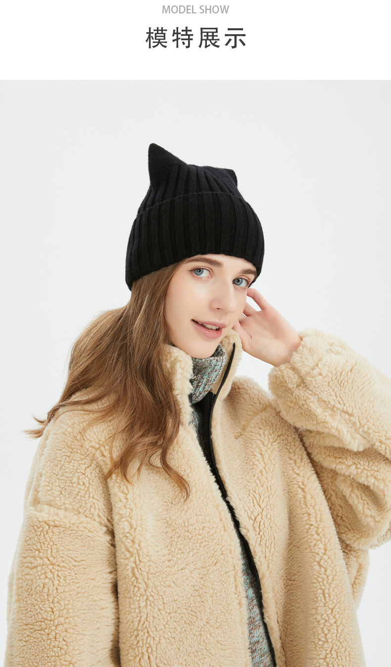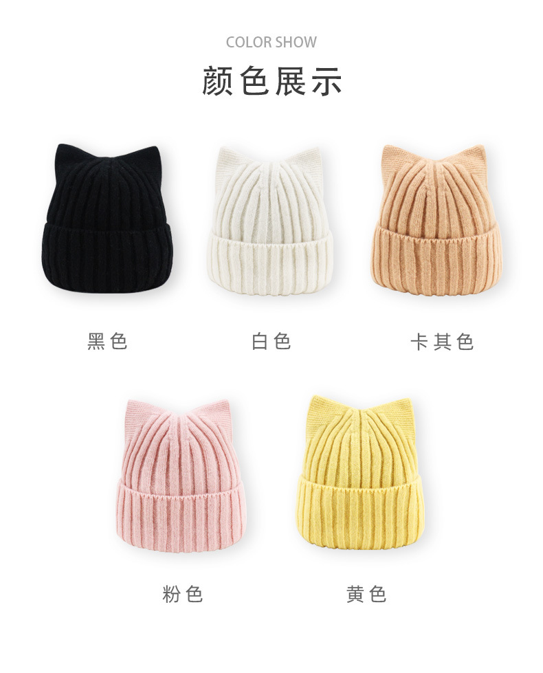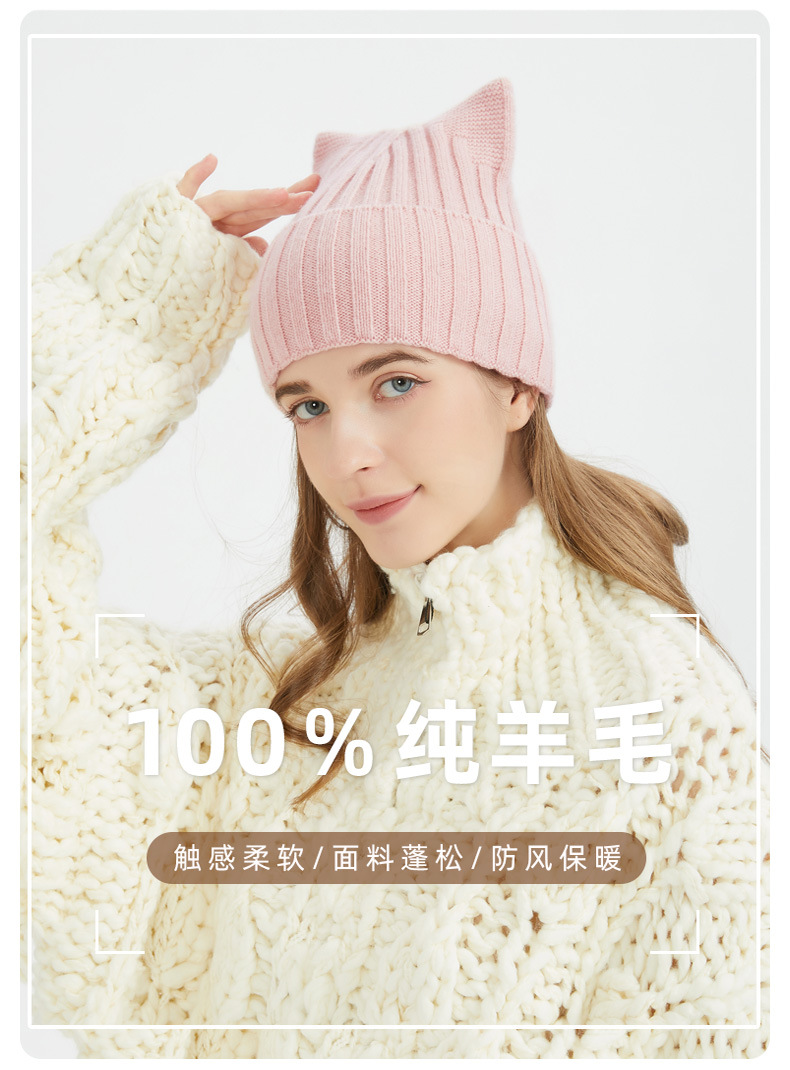 Orejas de gato 100% sombrero de lana invierno de las mujeres versátil otoño e invierno cálido sombrero de punto moda engrosada sombrero de lana de invierno