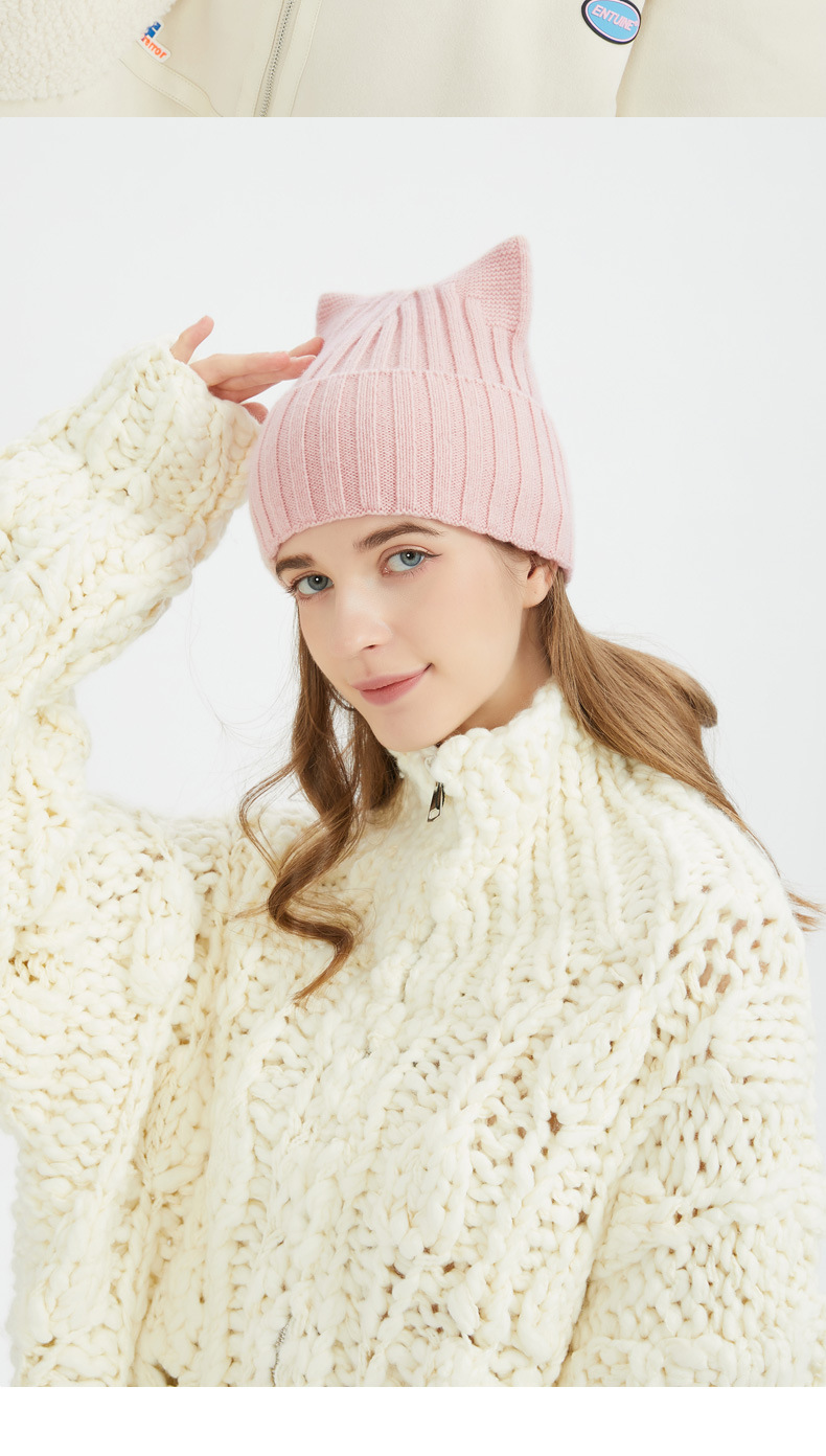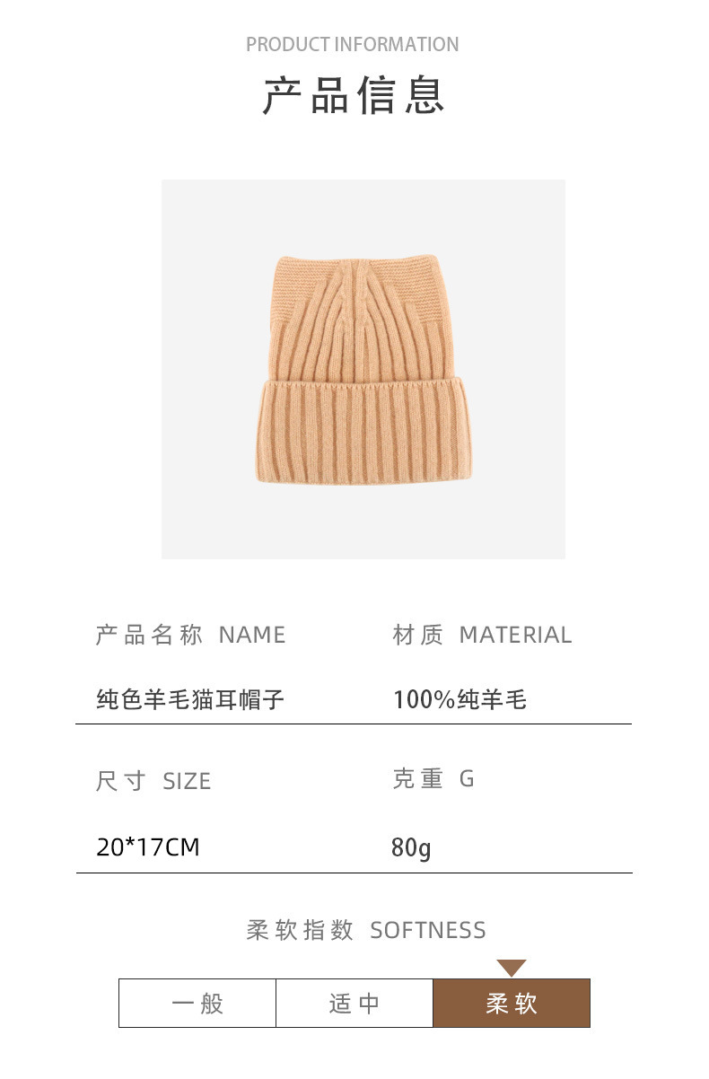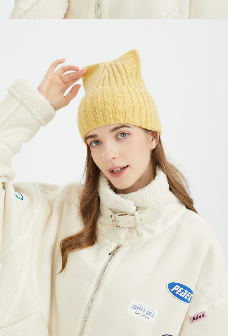 Orejas de gato 100% sombrero de lana invierno de las mujeres versátil otoño e invierno cálido sombrero de punto moda engrosada sombrero de lana de invierno