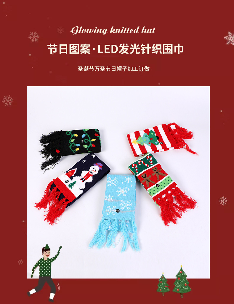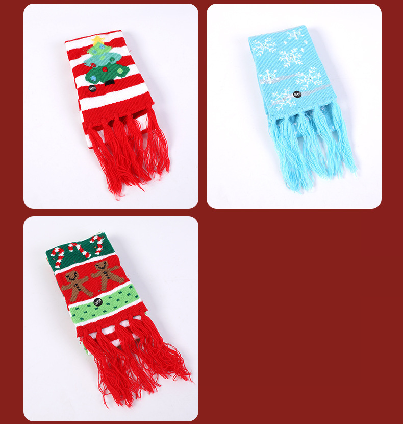 Bufanda de Navidad de punto europeo y americano transfronterizo con bufanda de punto de luz LED babero de color universal para niños y adultos