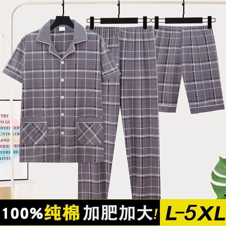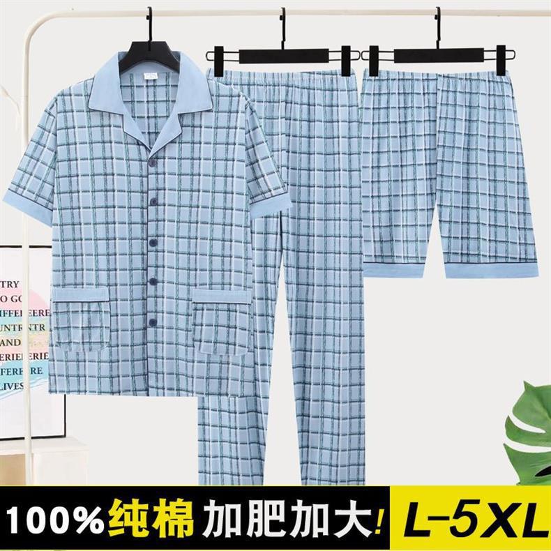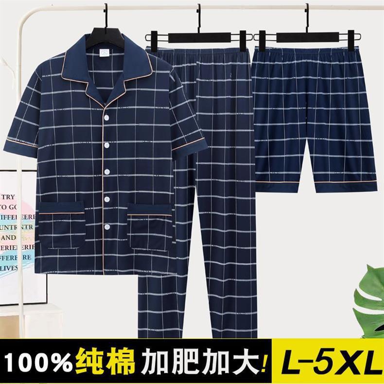 Pijamas de algodón gordo de tres piezas para hombre verano delgado de manga corta casual de talla grande servicio a domicilio se puede usar afuera