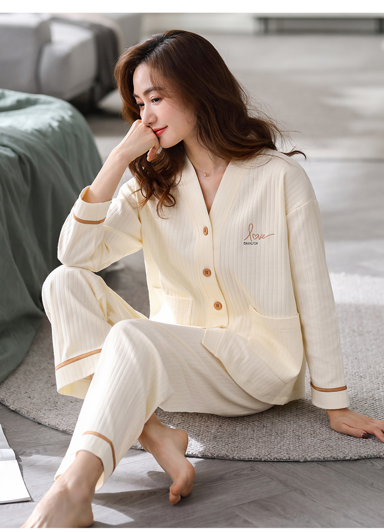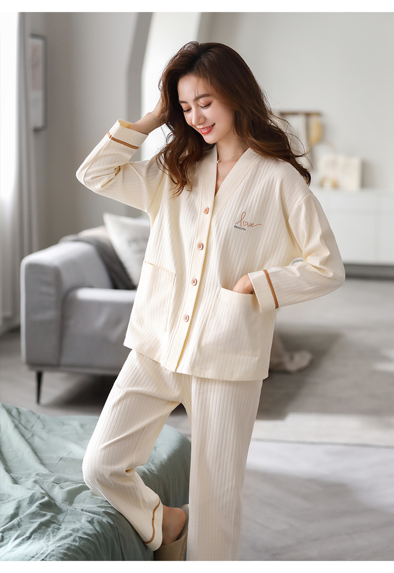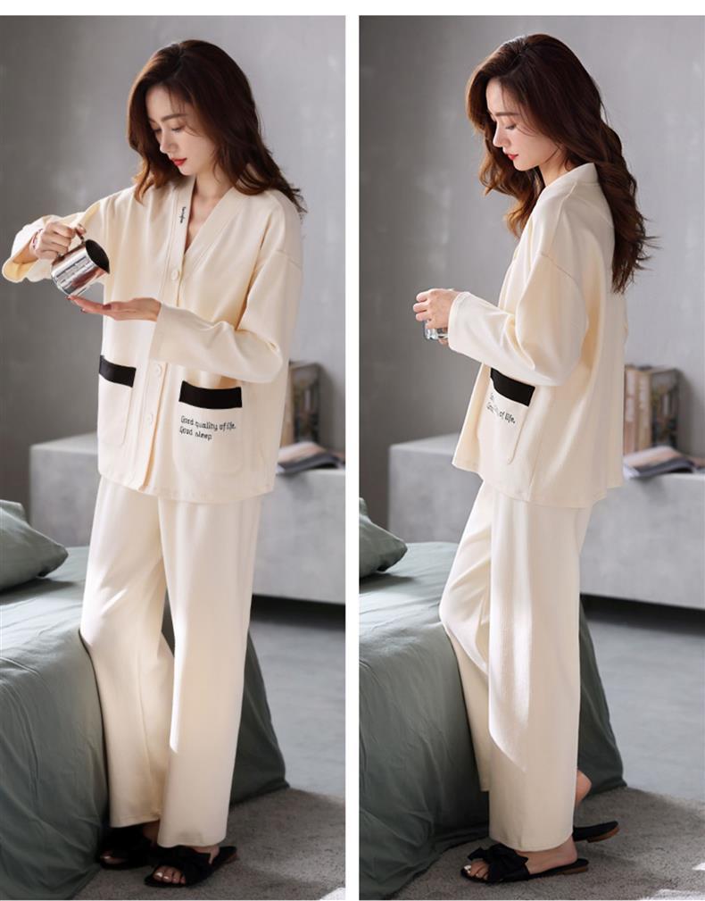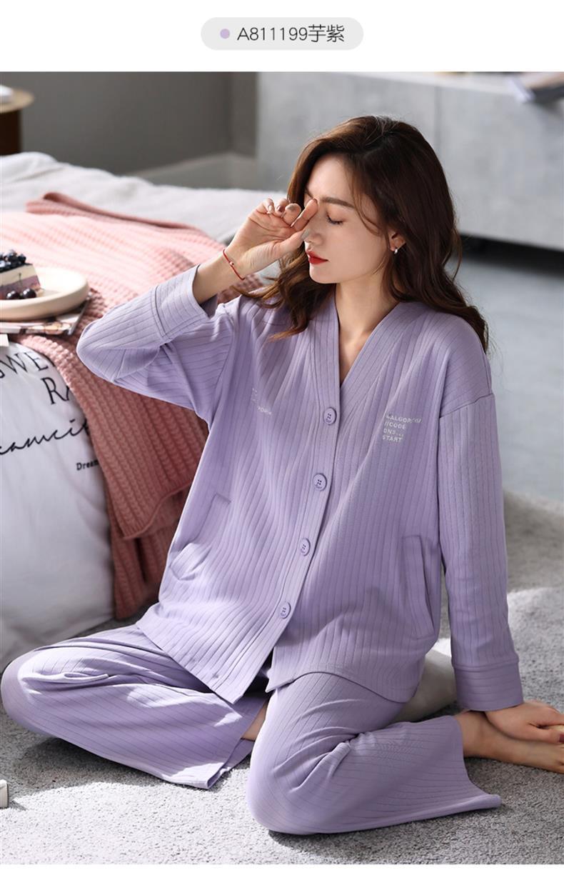Pijamas de las mujeres de primavera y otoño de algodón de manga larga ropa de otoño e invierno traje fino