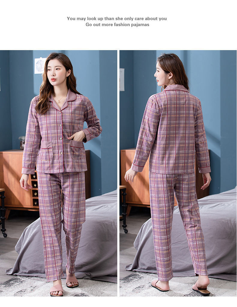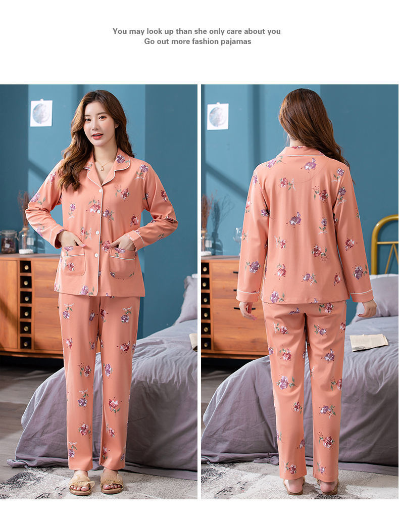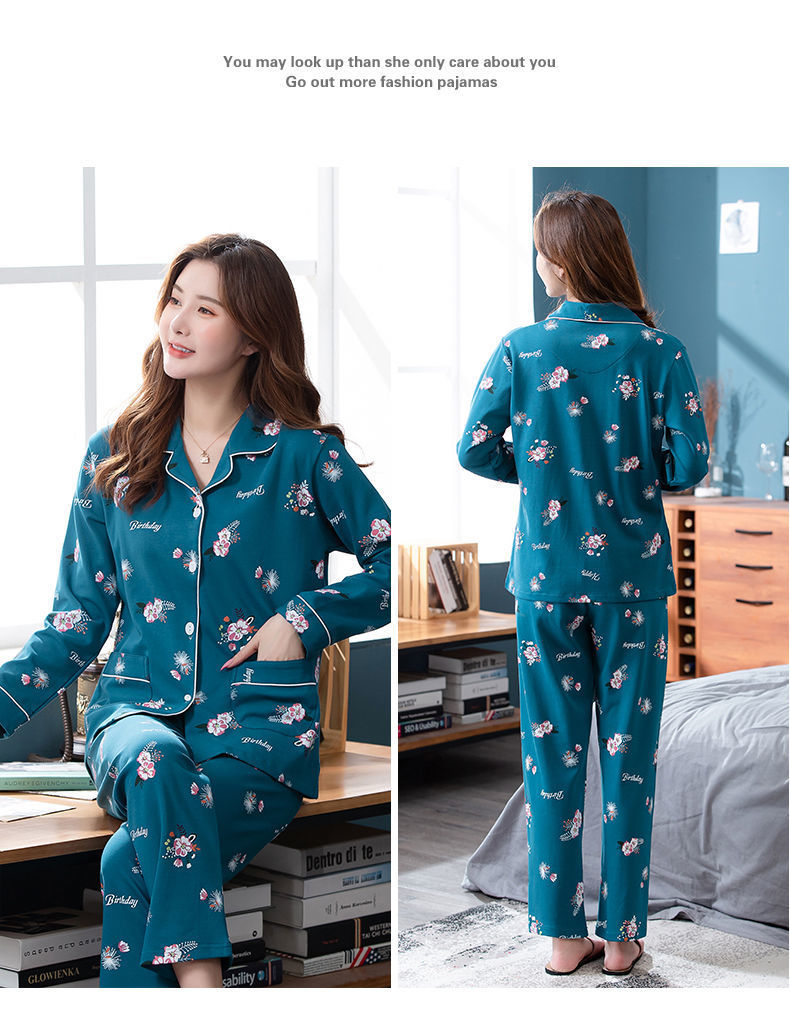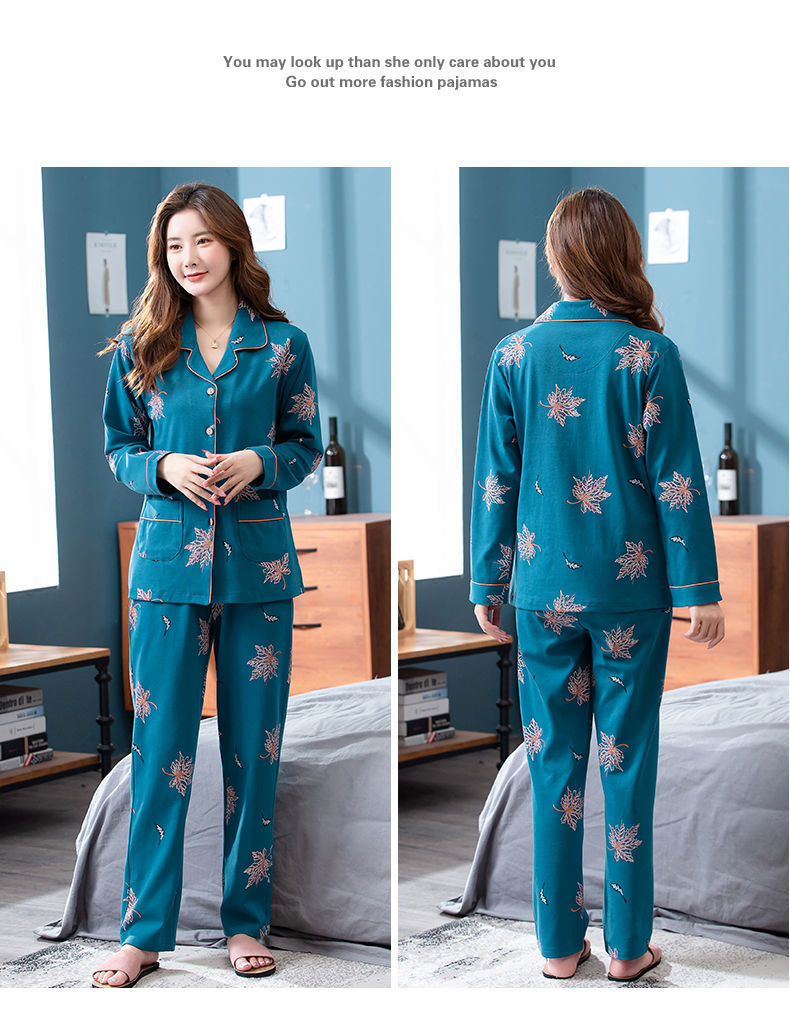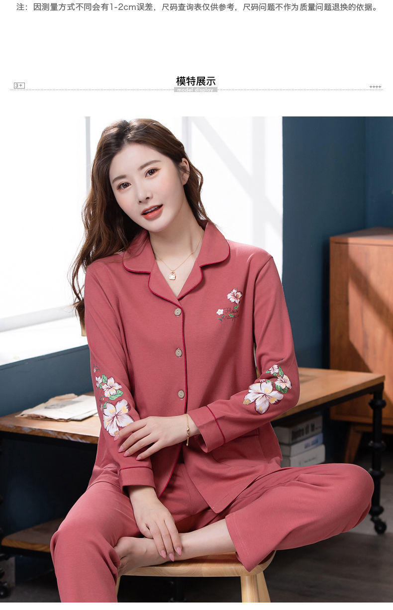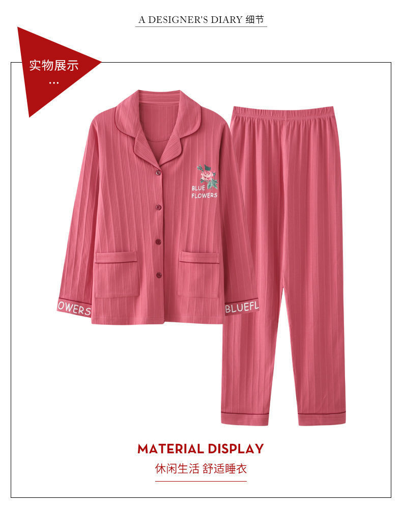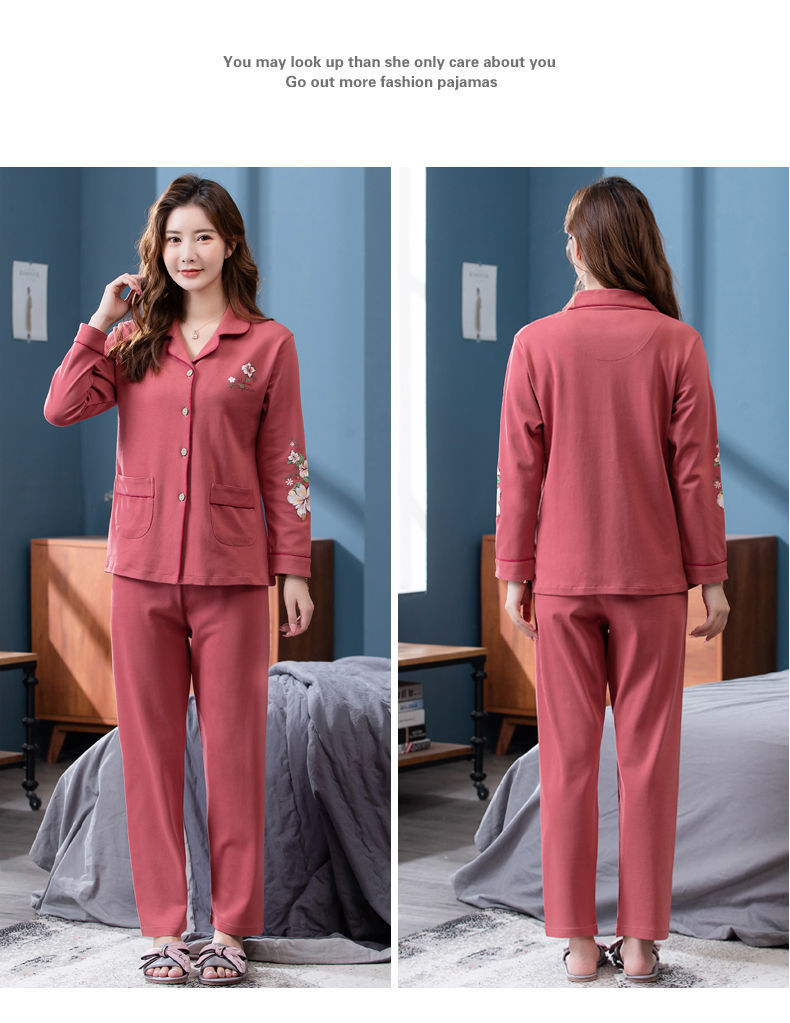 Pijamas de algodón puro Primavera y otoño de las mujeres de manga larga más tamaño cardigan traje de mediana edad y ancianos madre pijamas Otoño e Invierno