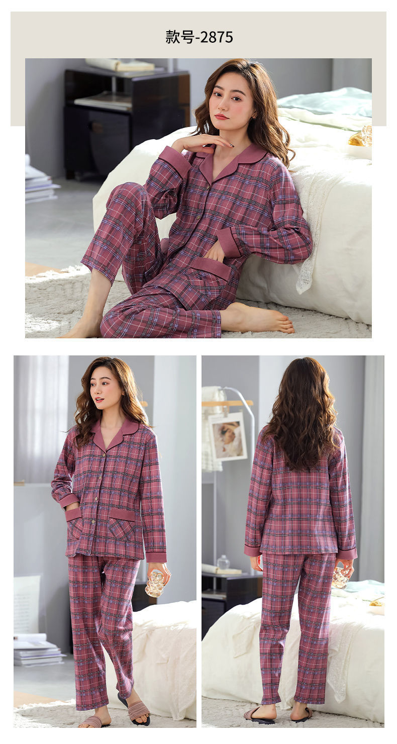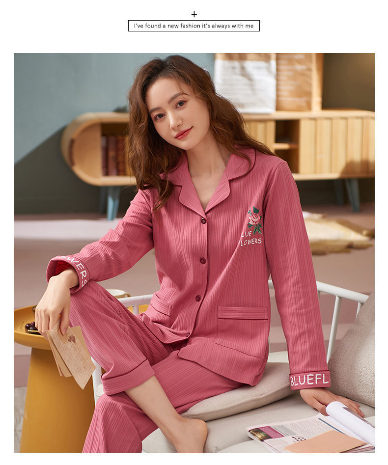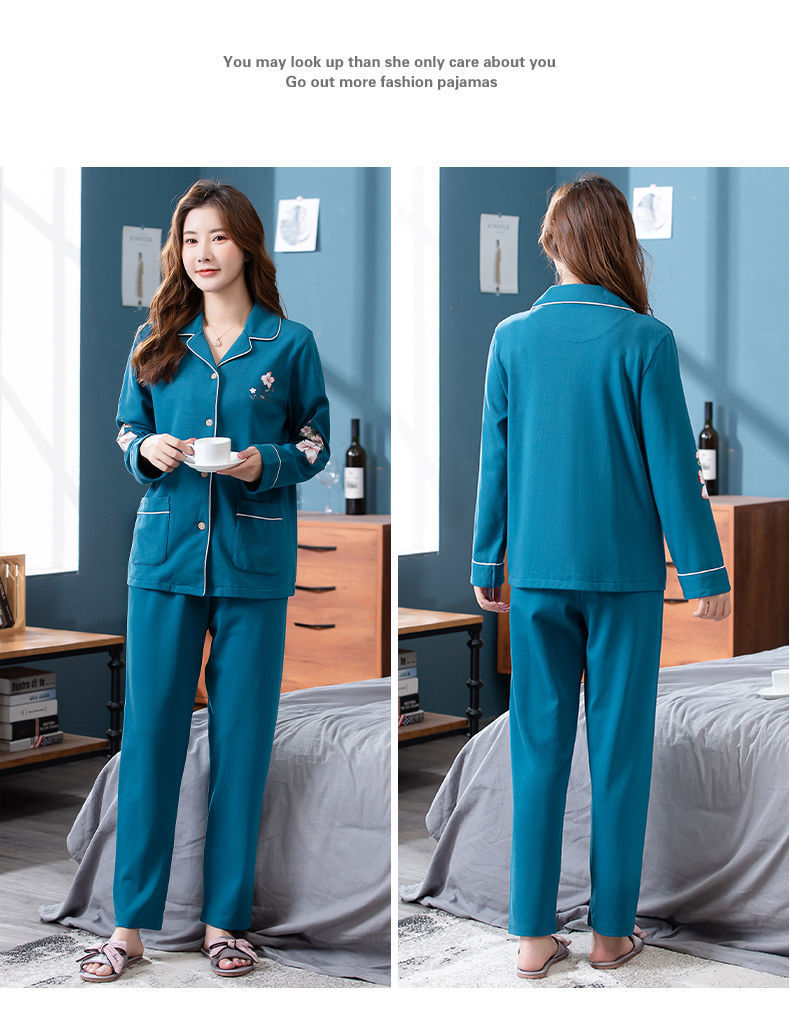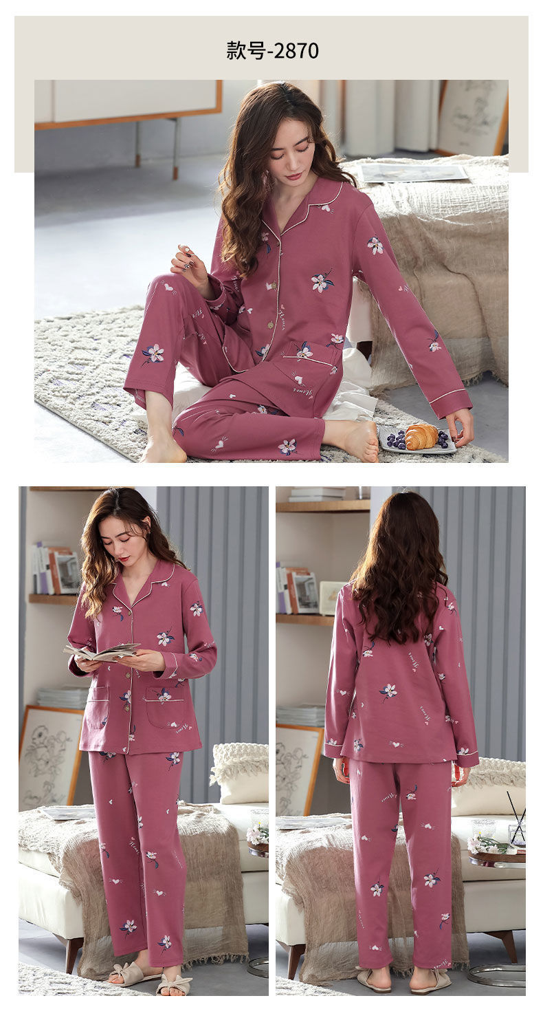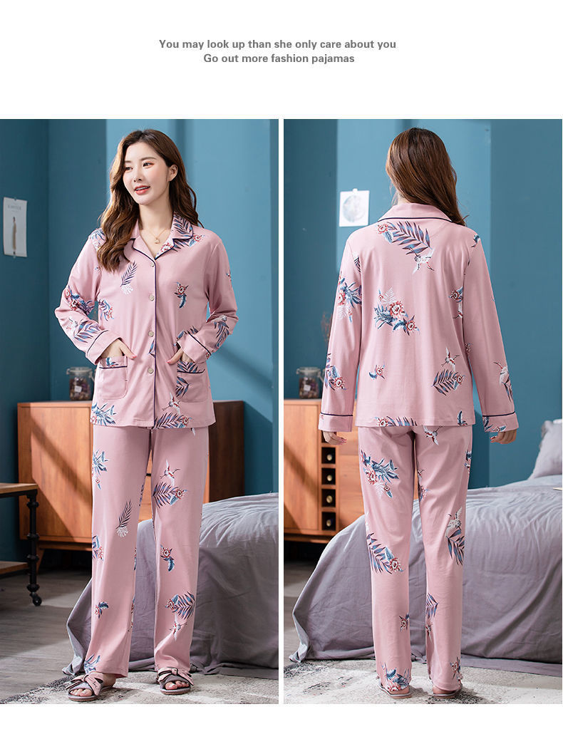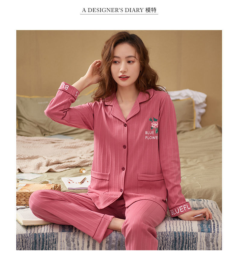 Pijamas de algodón puro Primavera y otoño de las mujeres de manga larga más tamaño cardigan traje de mediana edad y ancianos madre pijamas Otoño e Invierno