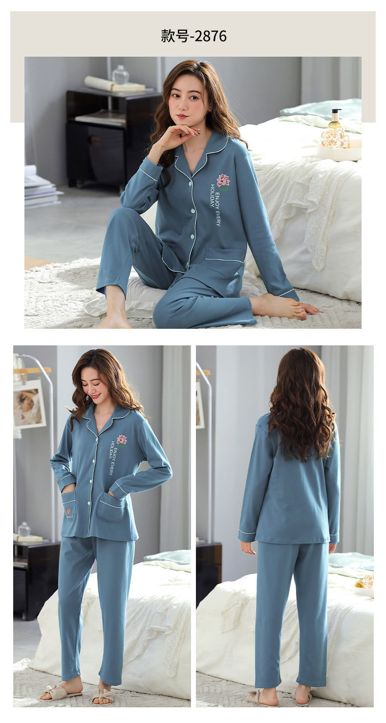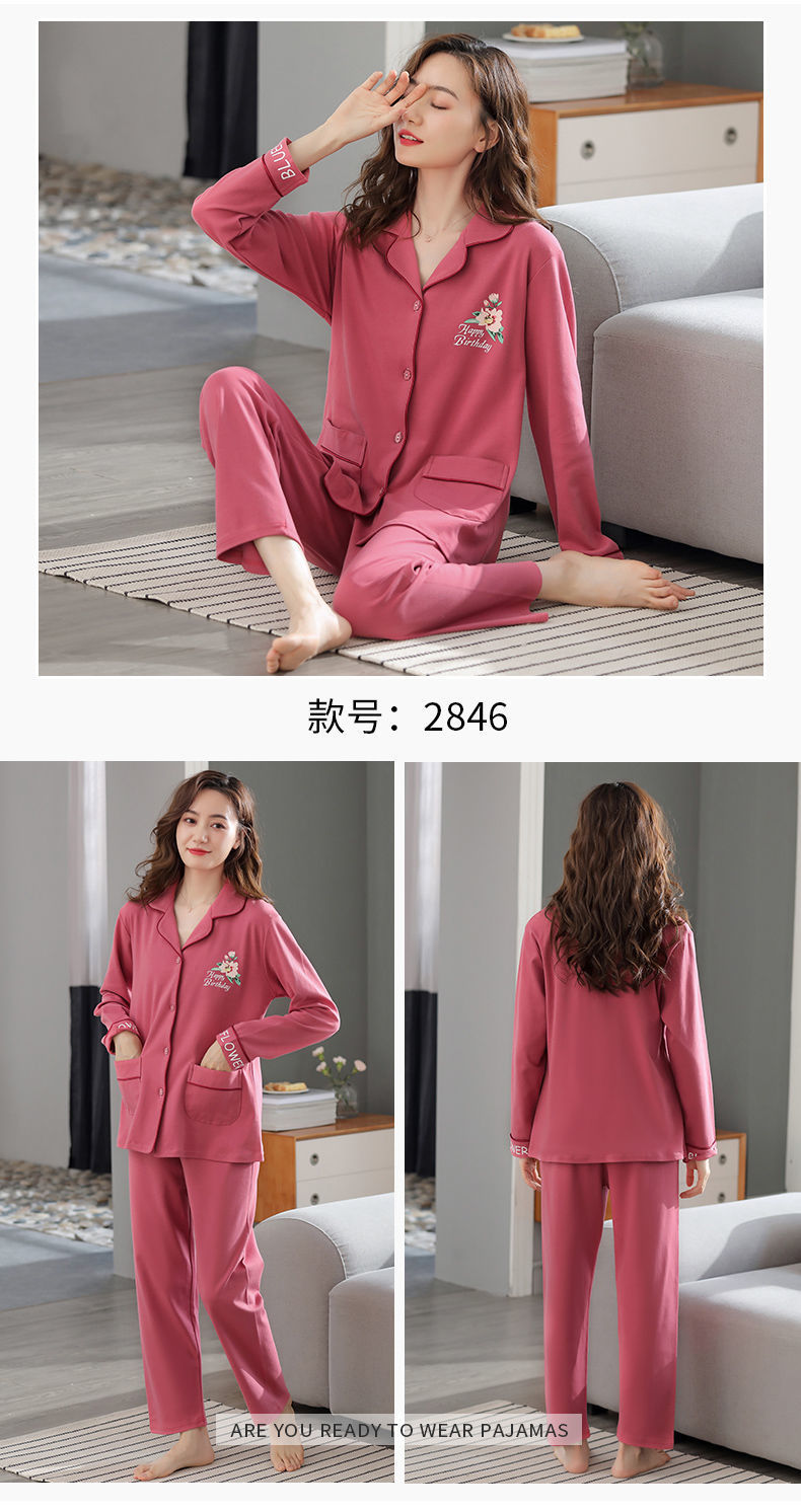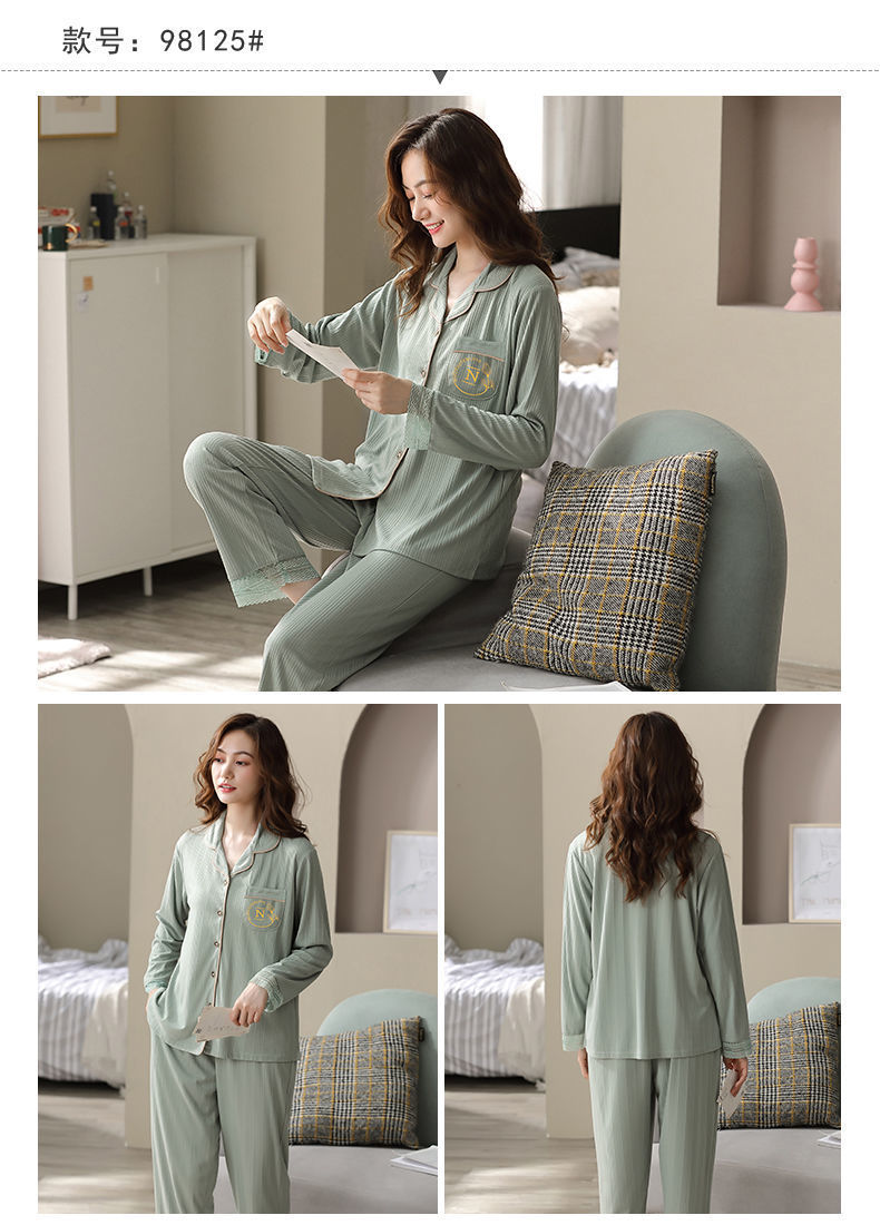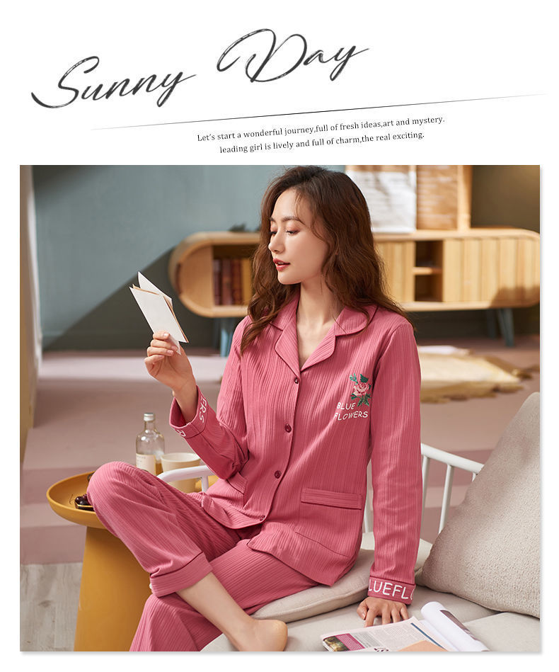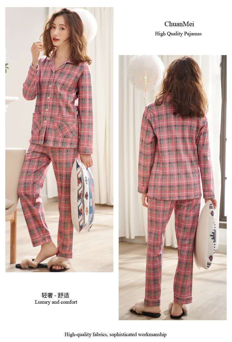 Pijamas de algodón puro Primavera y otoño de las mujeres de manga larga más tamaño cardigan traje de mediana edad y ancianos madre pijamas Otoño e Invierno