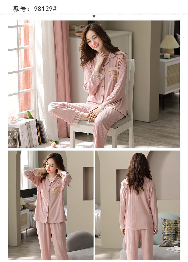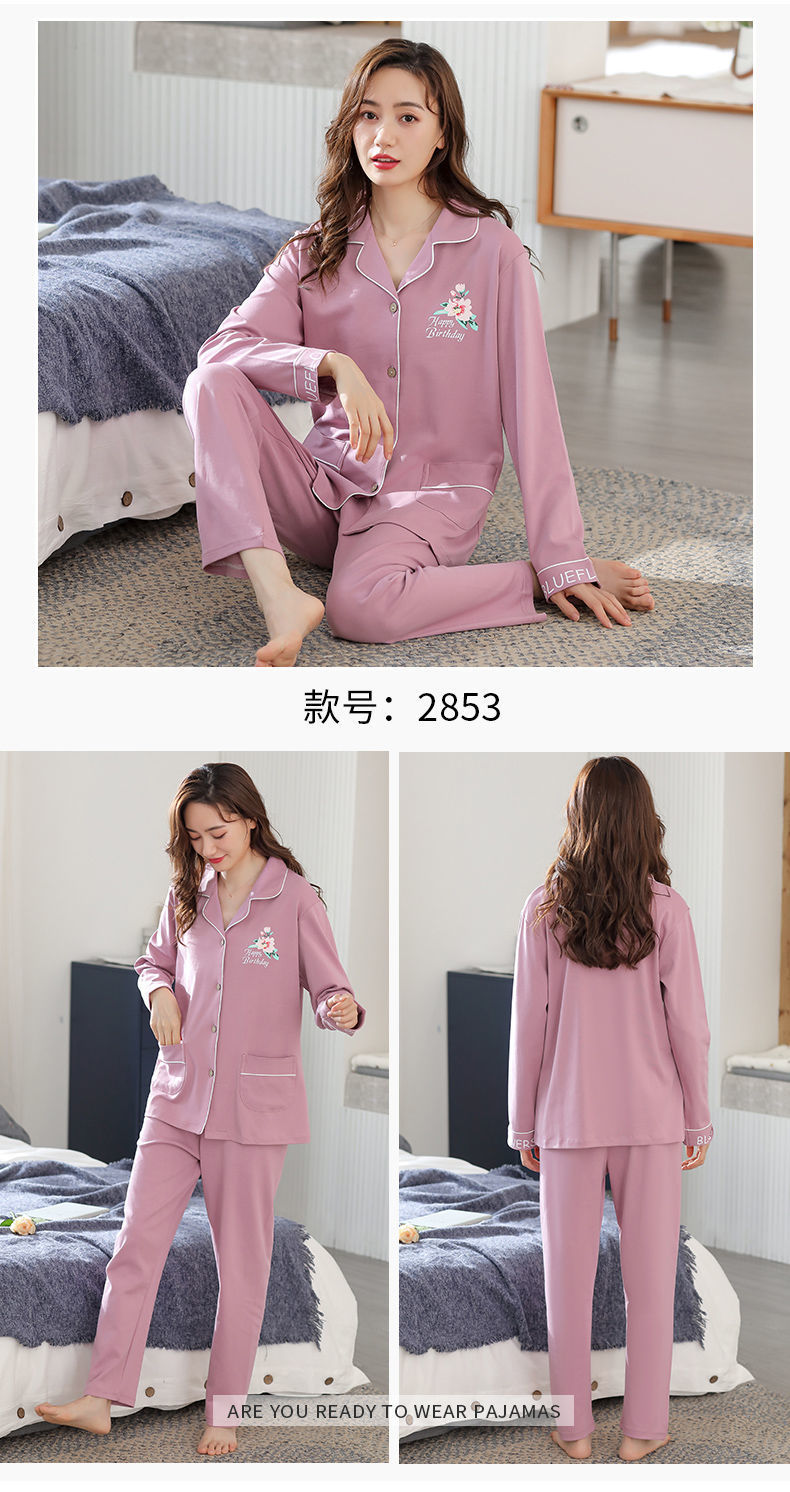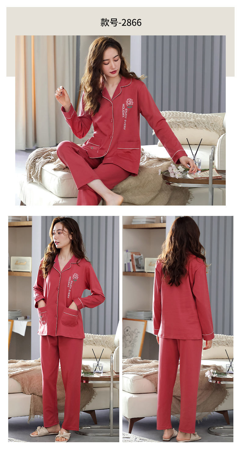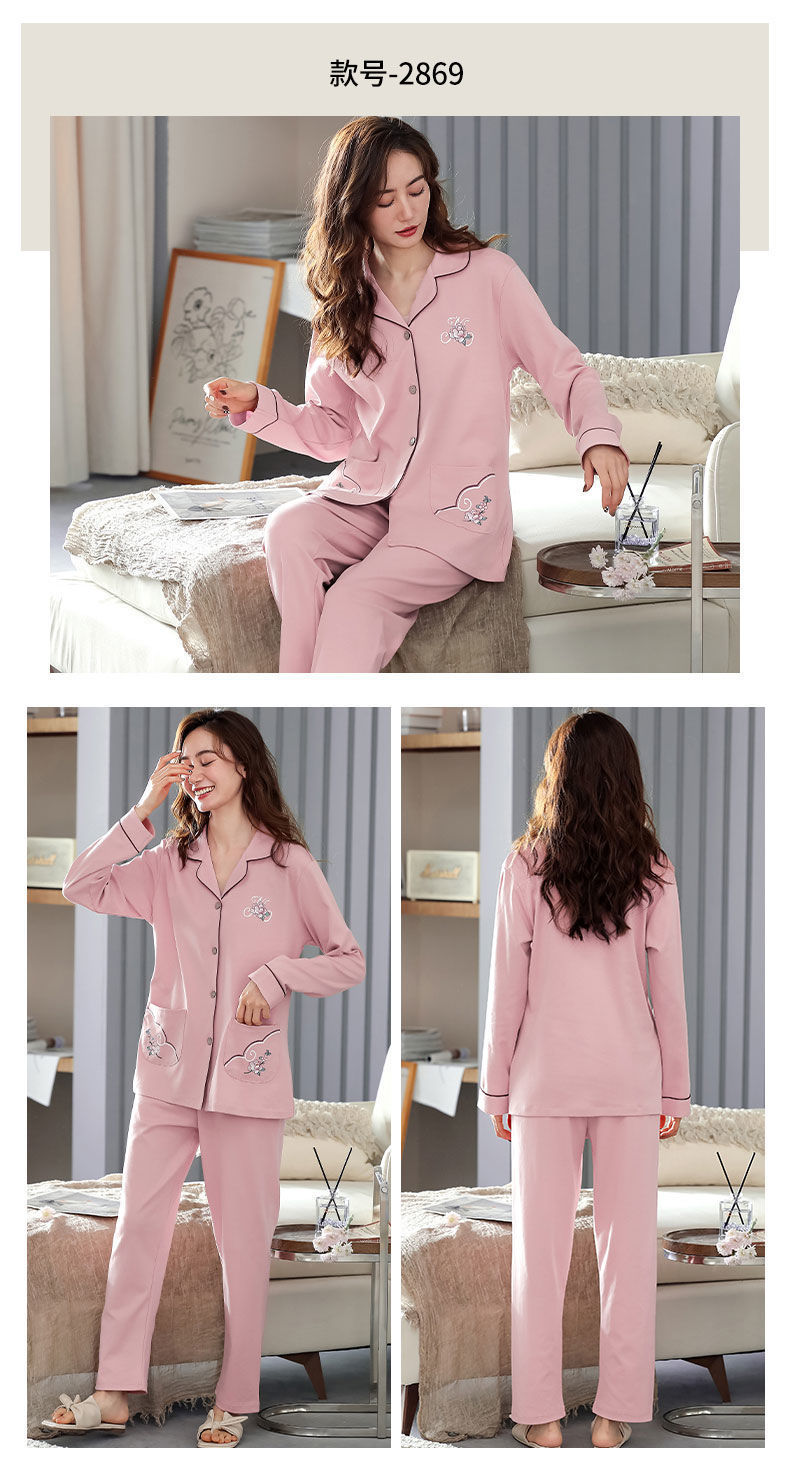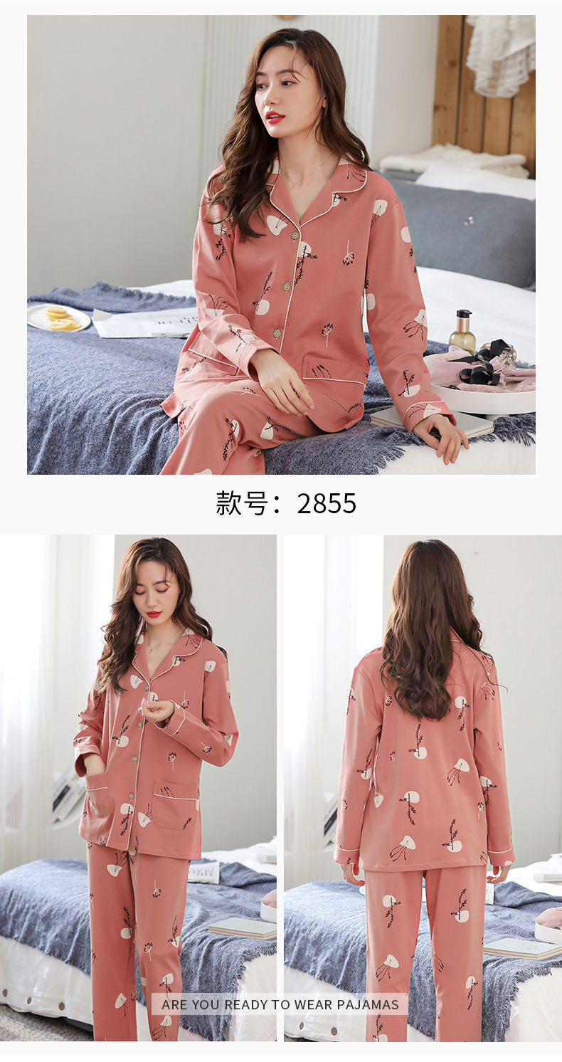 Pijamas de algodón puro Primavera y otoño de las mujeres de manga larga más tamaño cardigan traje de mediana edad y ancianos madre pijamas Otoño e Invierno
