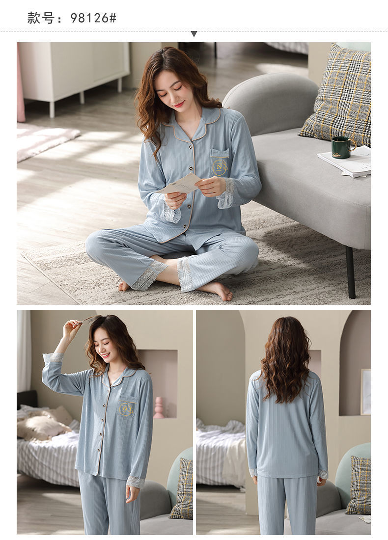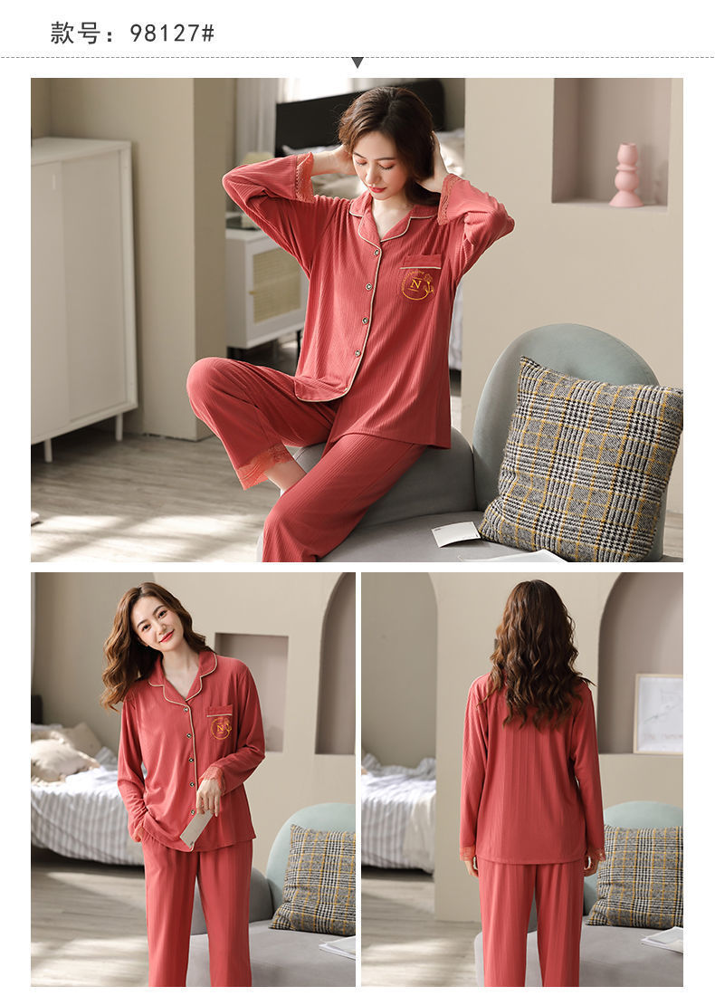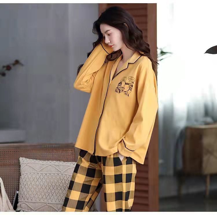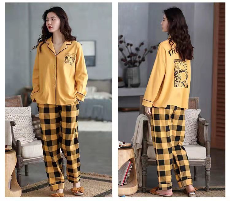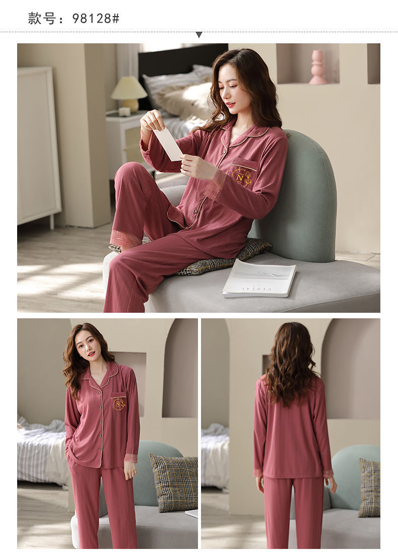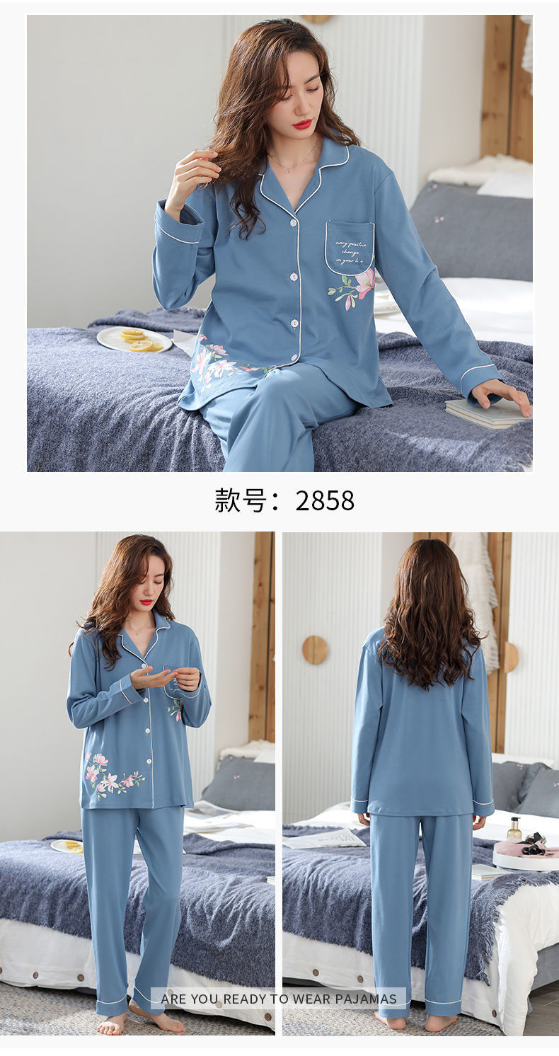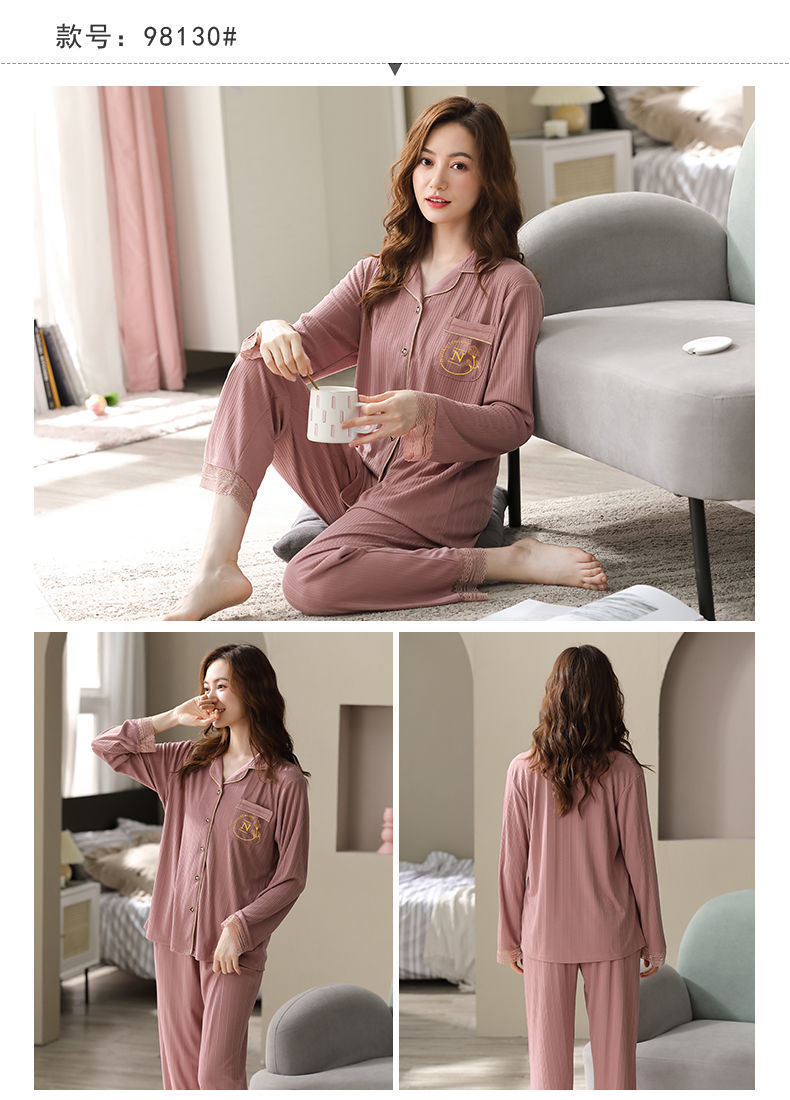 Pijamas de algodón puro Primavera y otoño de las mujeres de manga larga más tamaño cardigan traje de mediana edad y ancianos madre pijamas Otoño e Invierno