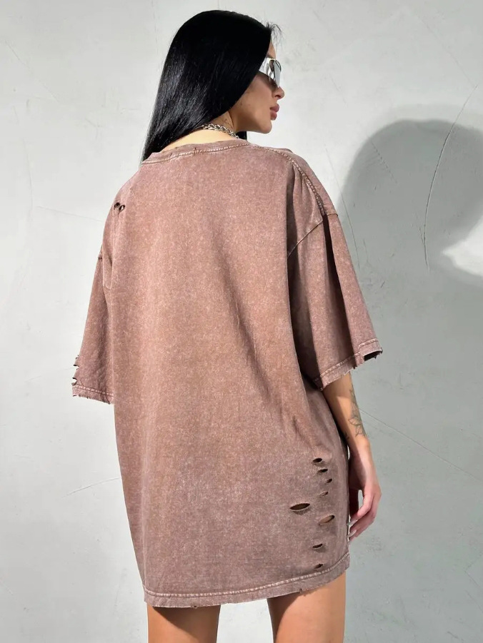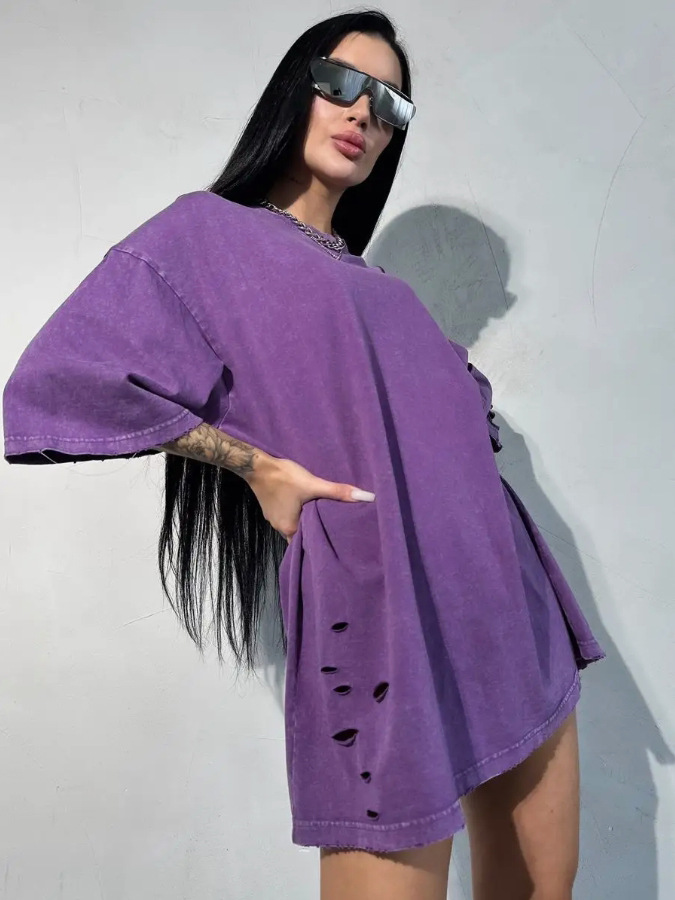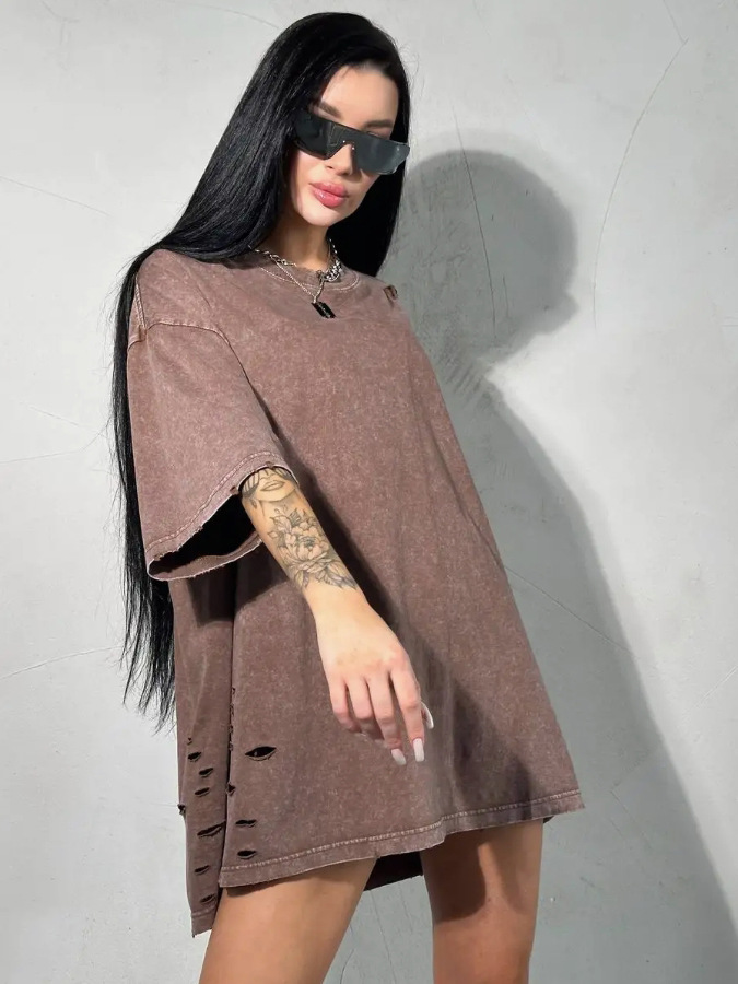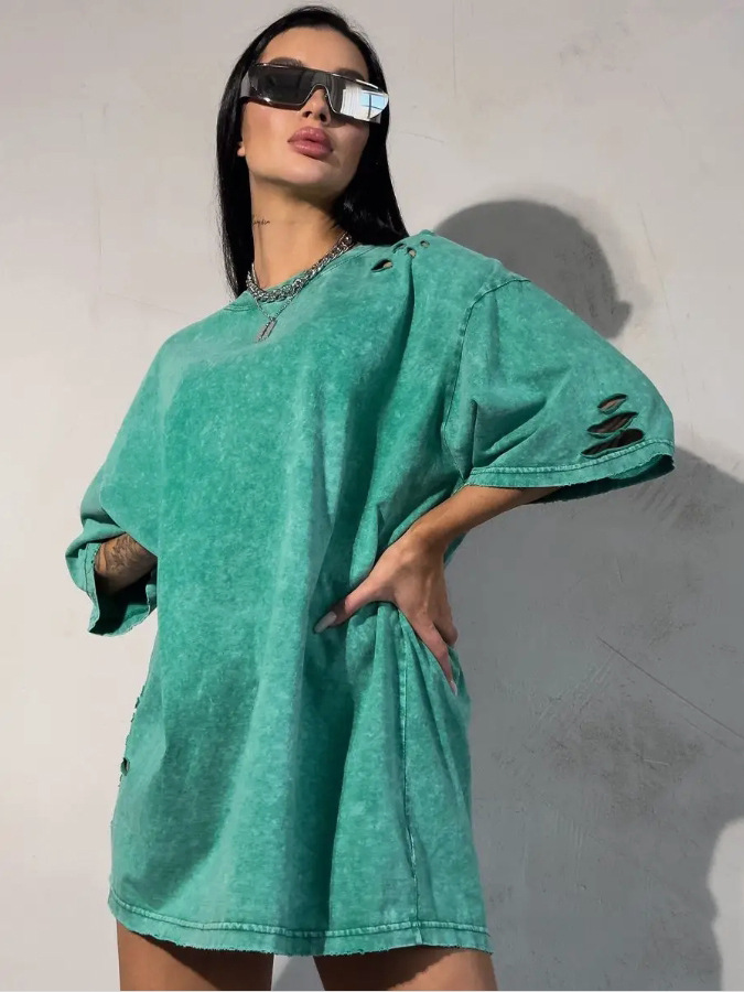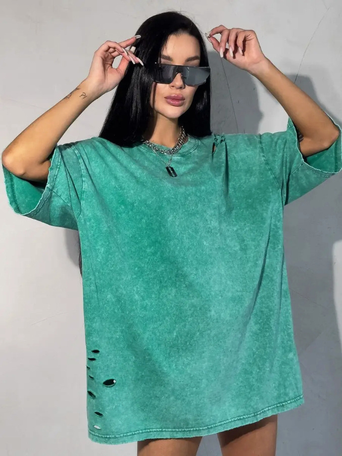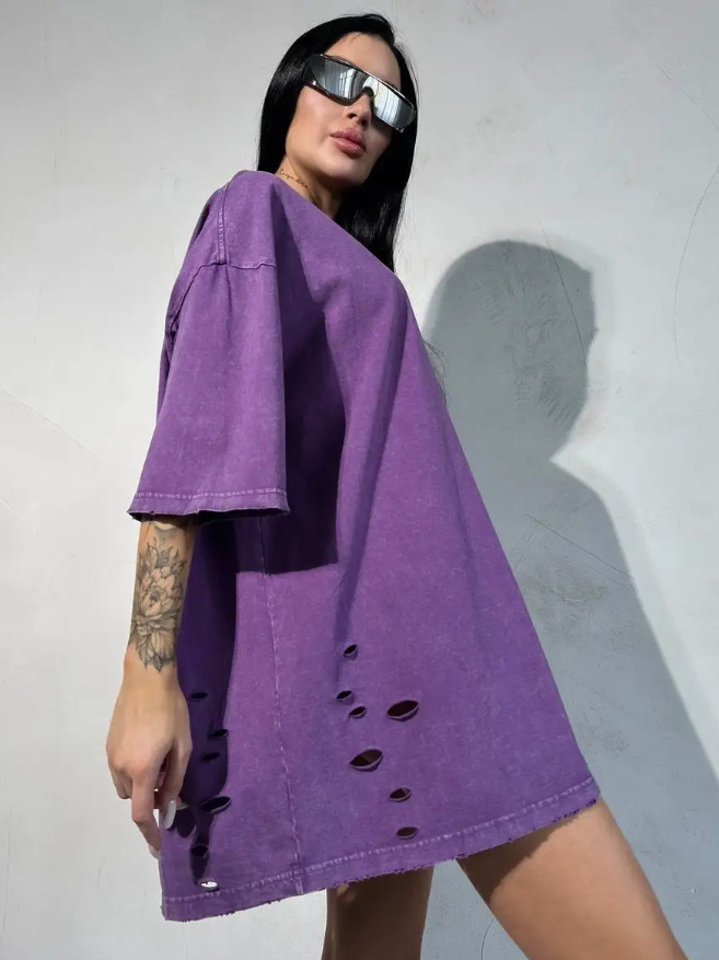 Europa y Estados Unidos transfronterizos cuello redondo camiseta de manga corta hombre verano agujero relajado pareja hip-hop vientos multifuncional blusa