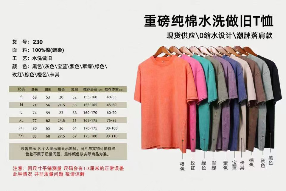 | Color | Negro lavado, gris lavado, color café, azul klein, rojo rosa, verde hierba, morado, verde ejército, albaricoque, naranja |