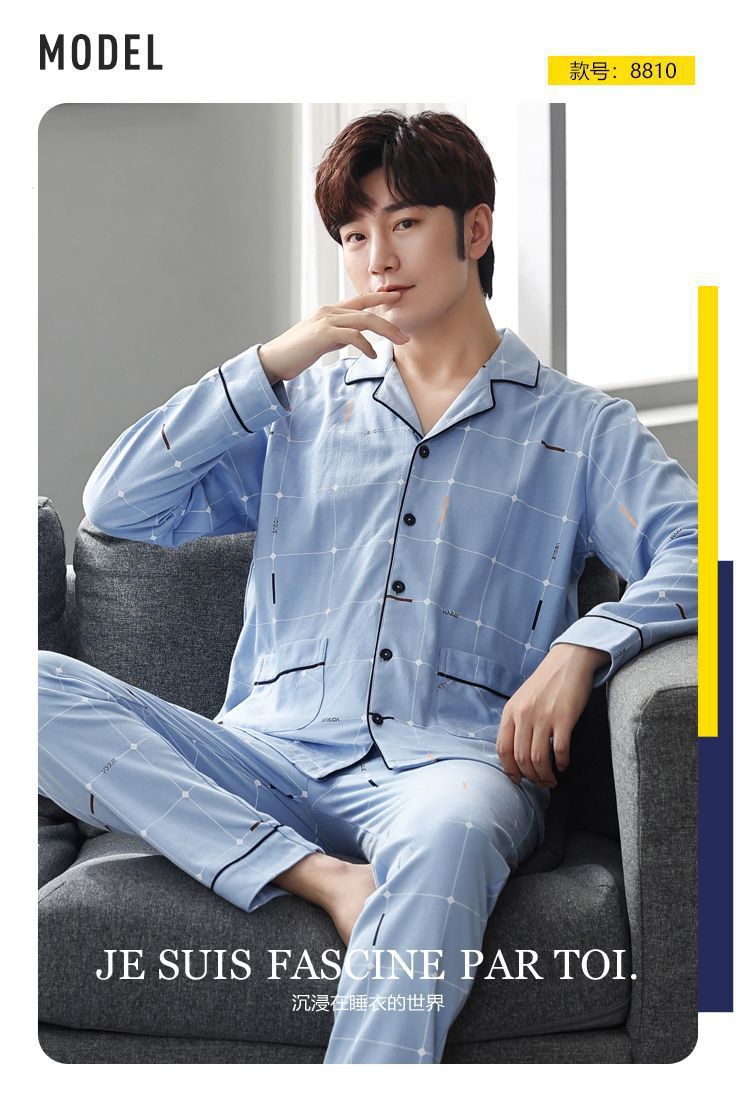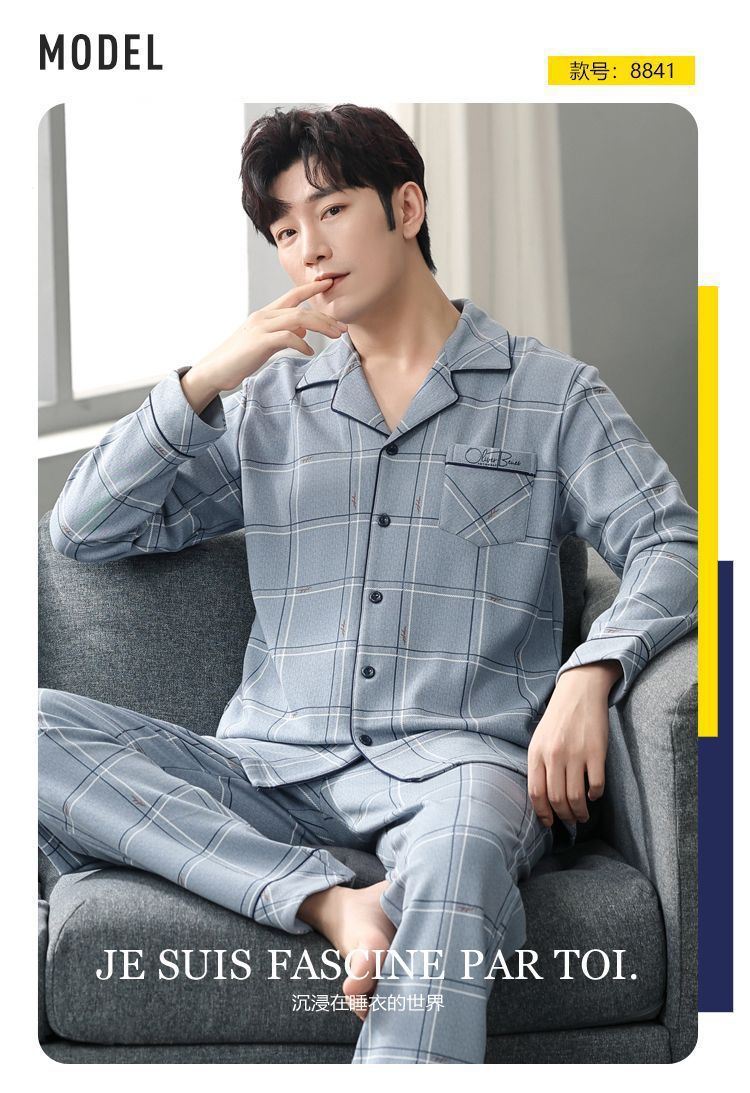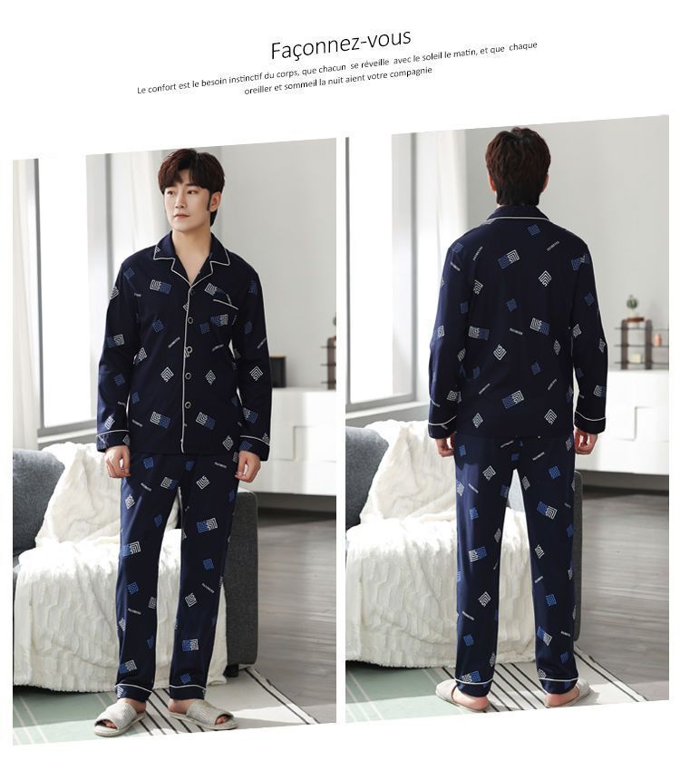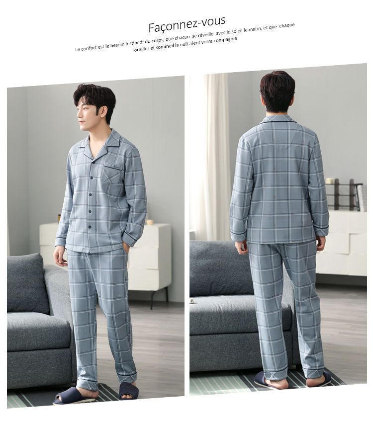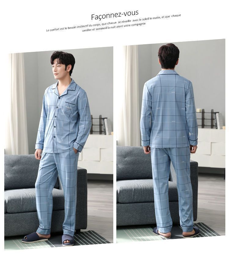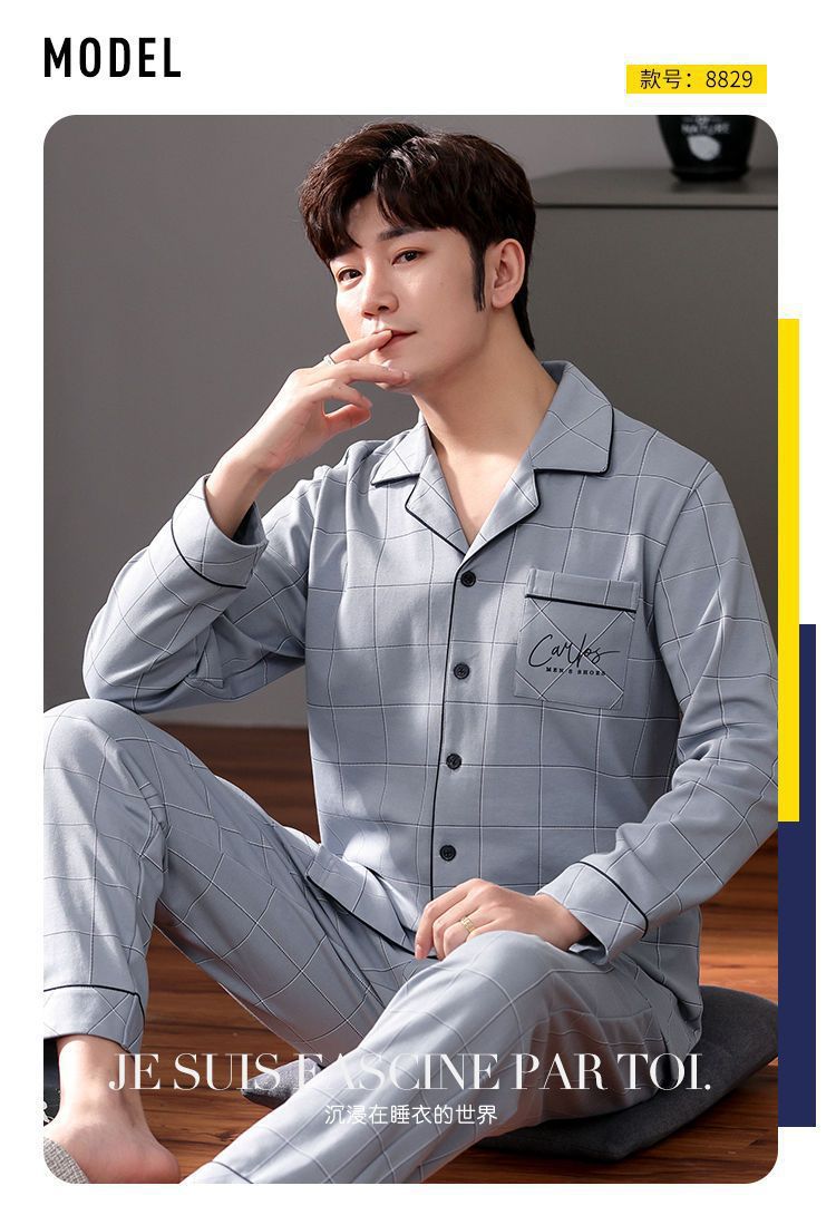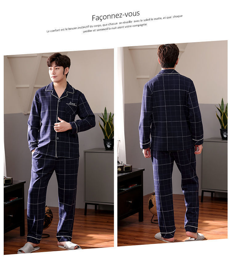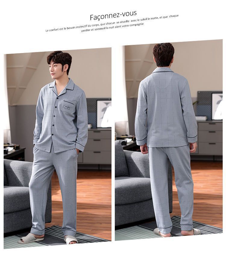 Pijamas de hombre de algodón puro primavera y otoño se pueden usar sueltos de gran tamaño casual ropa a domicilio de manga larga traje de dos piezas