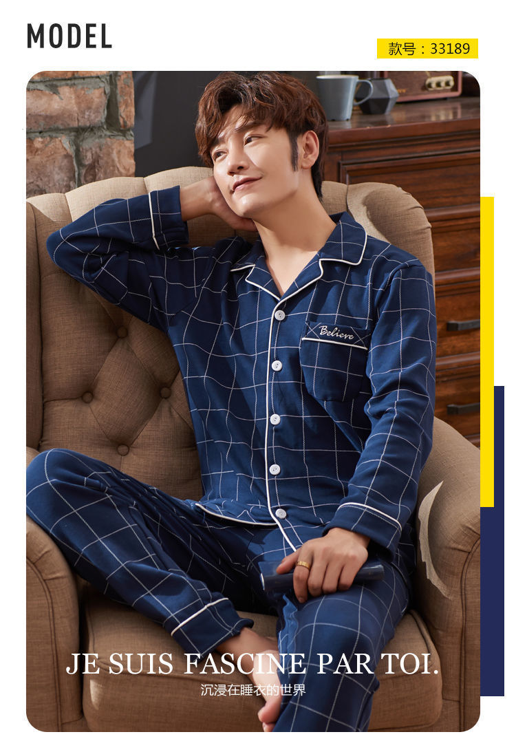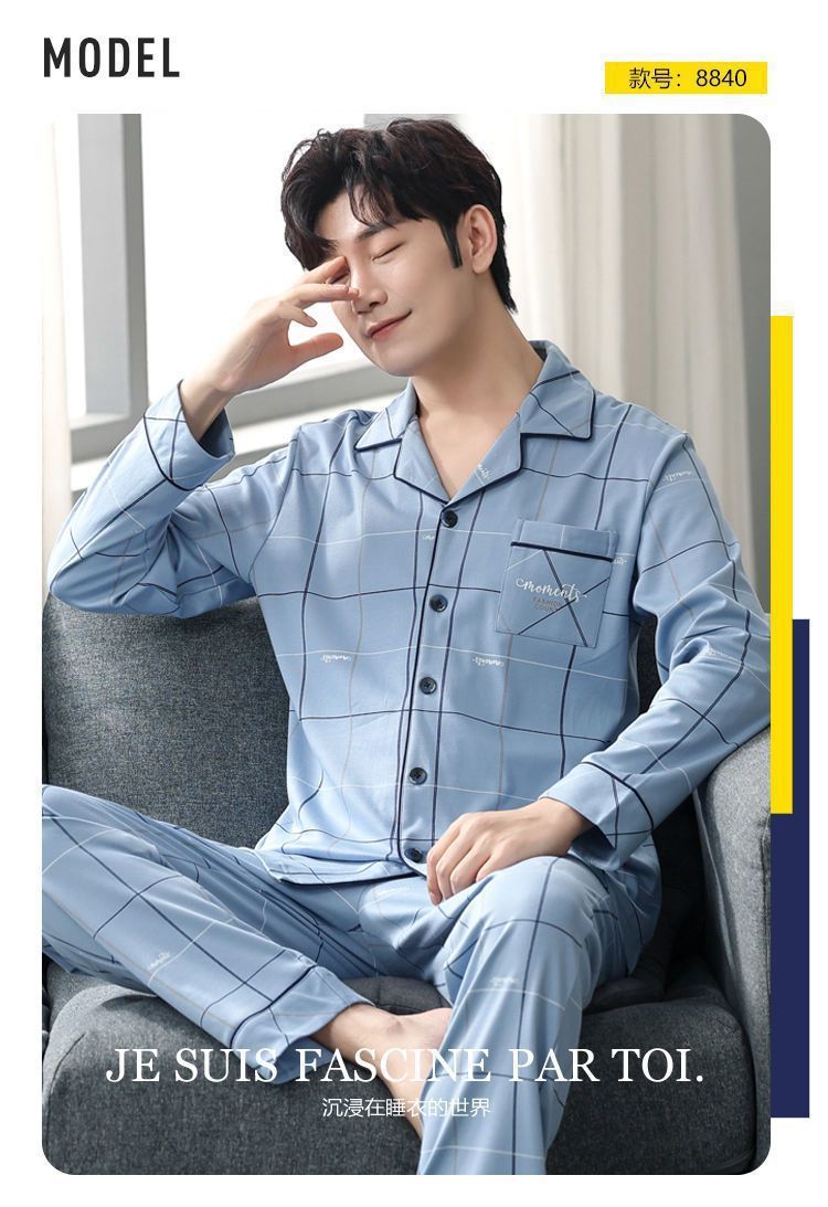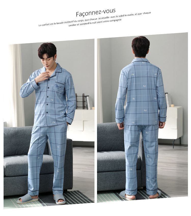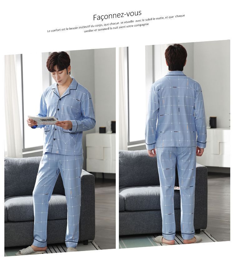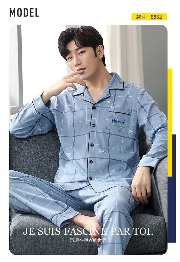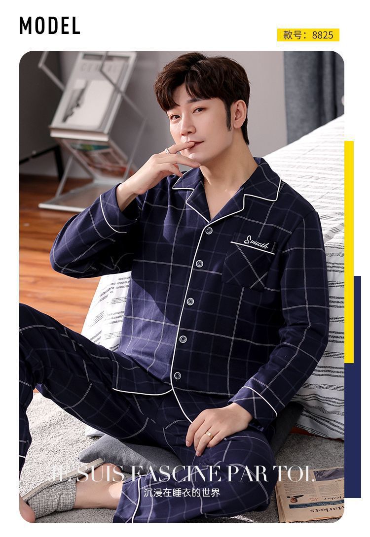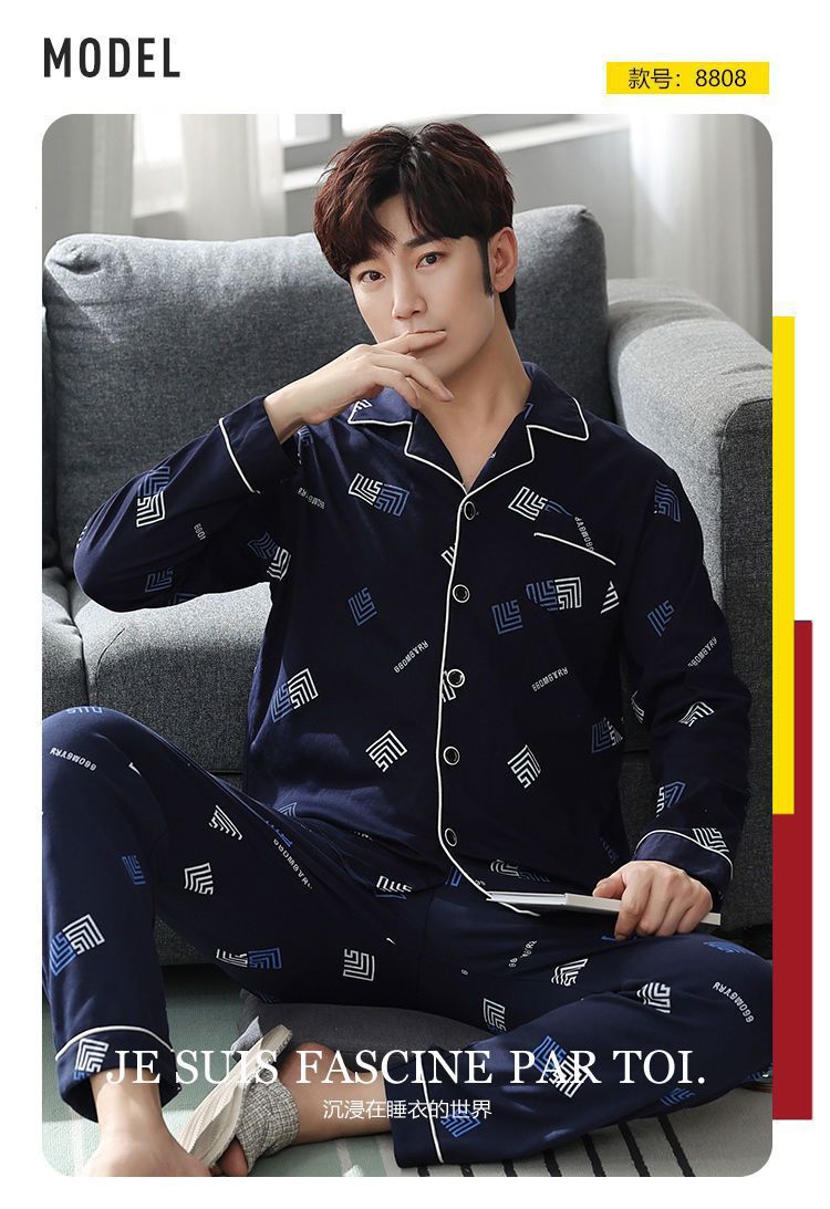 Pijamas de hombre de algodón puro primavera y otoño se pueden usar sueltos de gran tamaño casual ropa a domicilio de manga larga traje de dos piezas