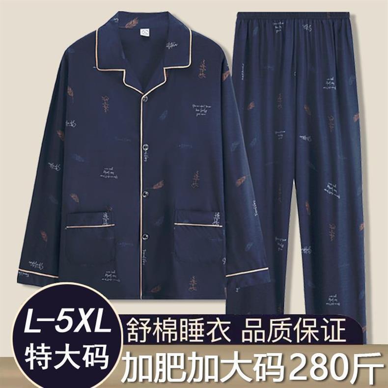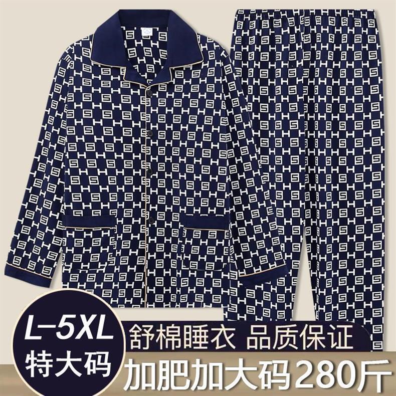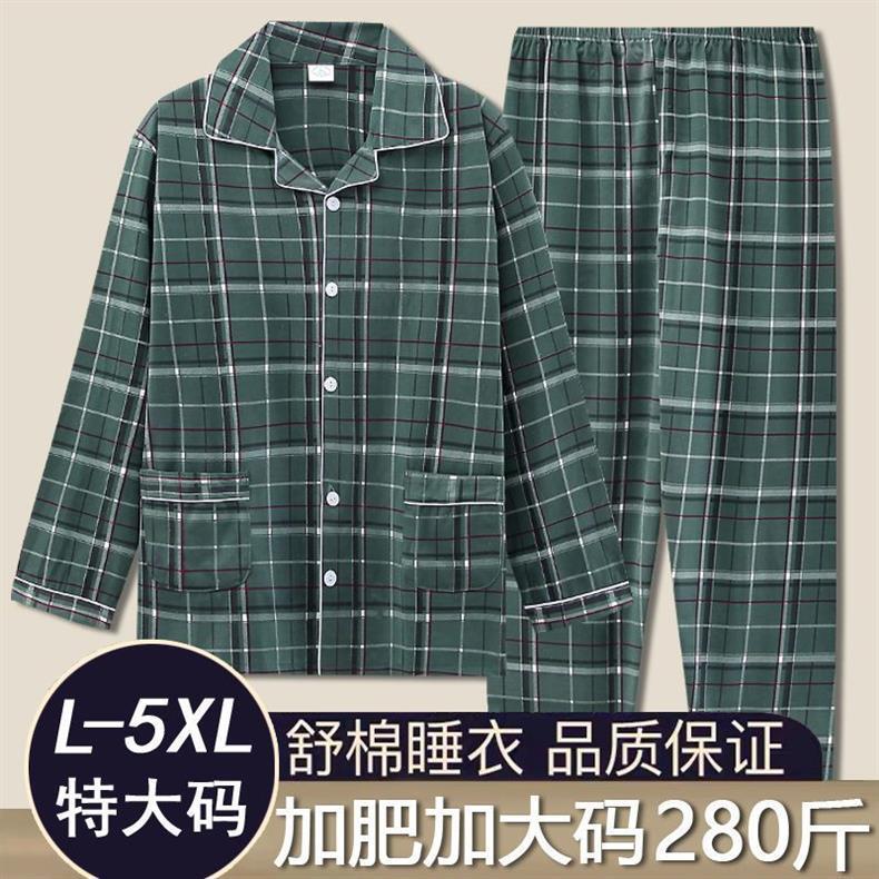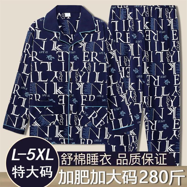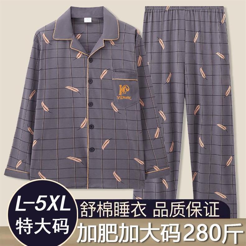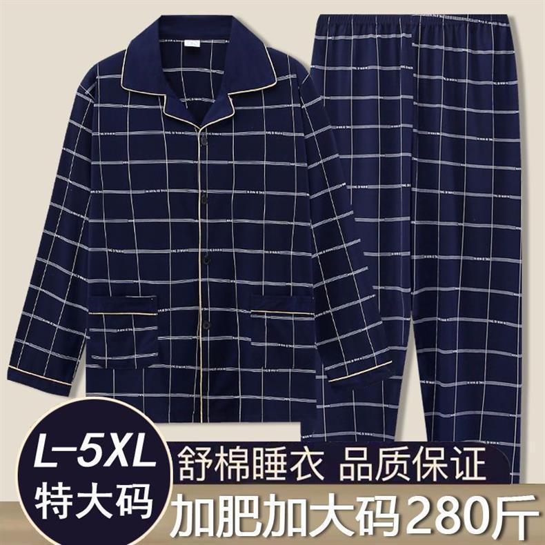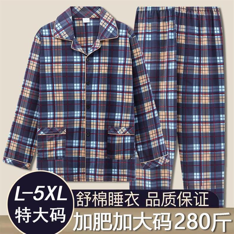 Pijamas de algodón gordo para hombres primavera y otoño de mangas largas para aumentar el tamaño delgado juvenil de mediana edad otoño y invierno conjunto de ropa para el hogar