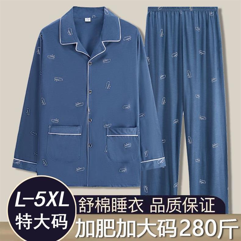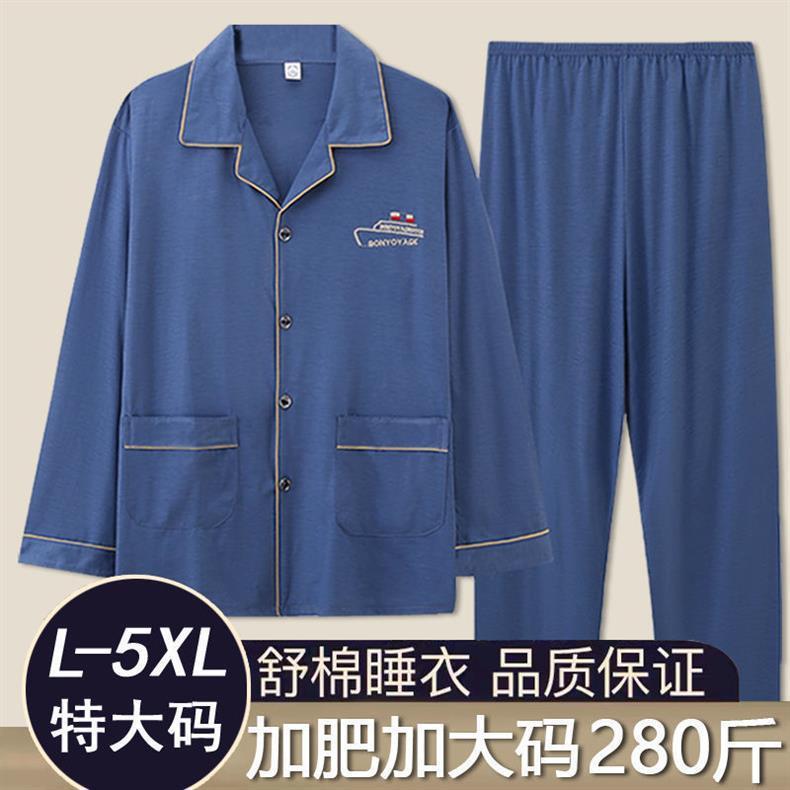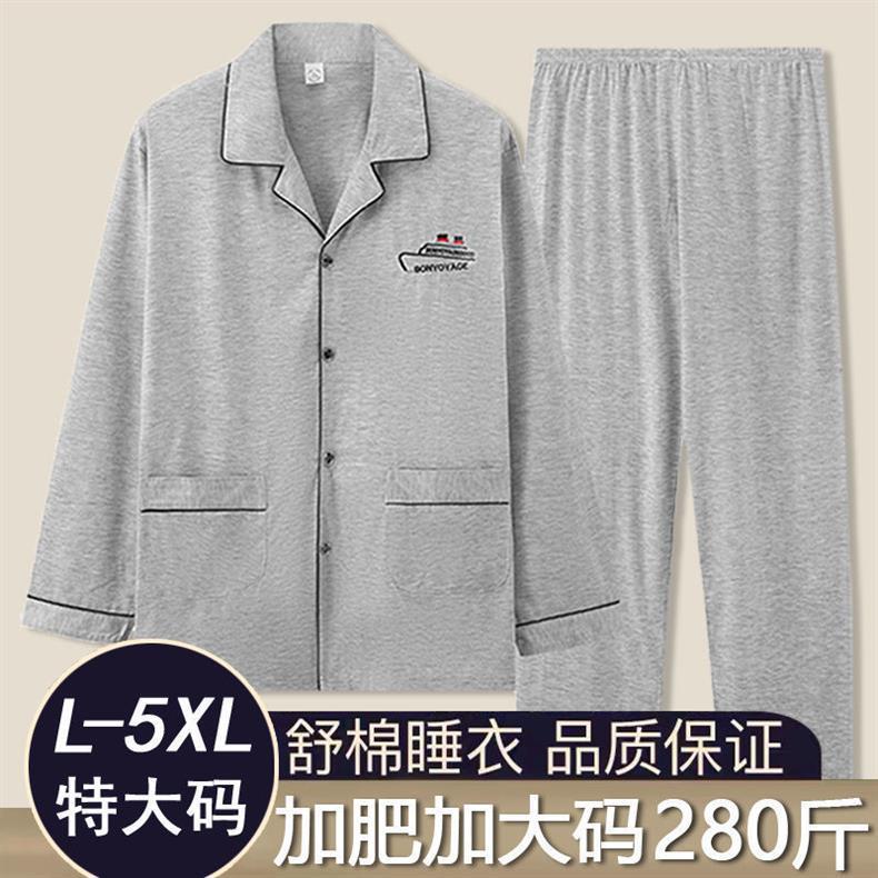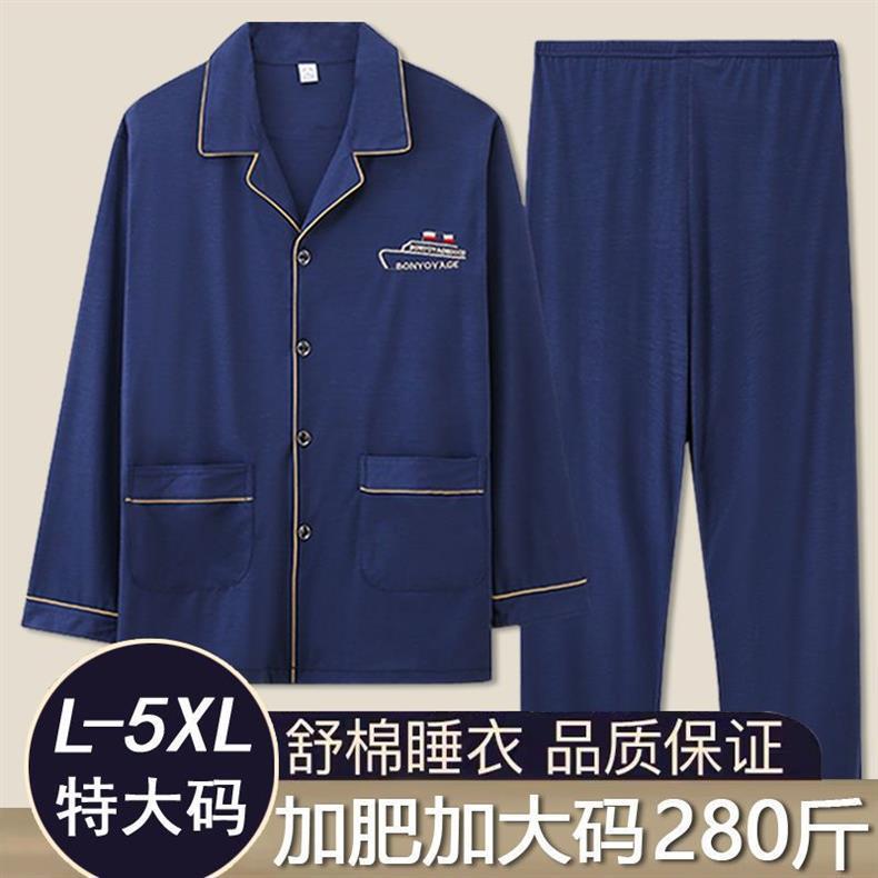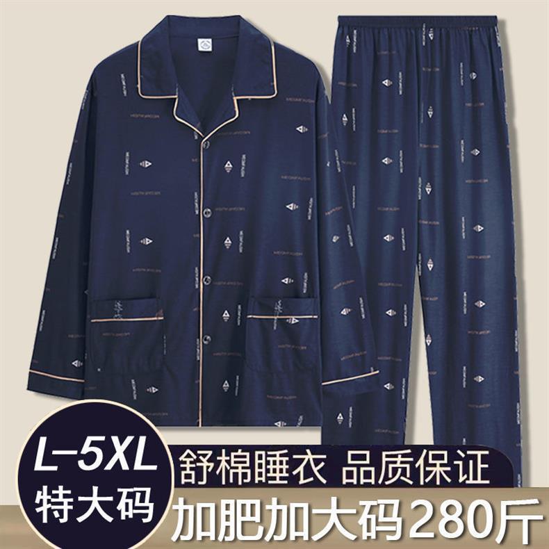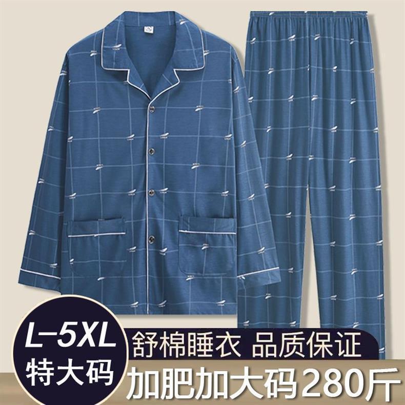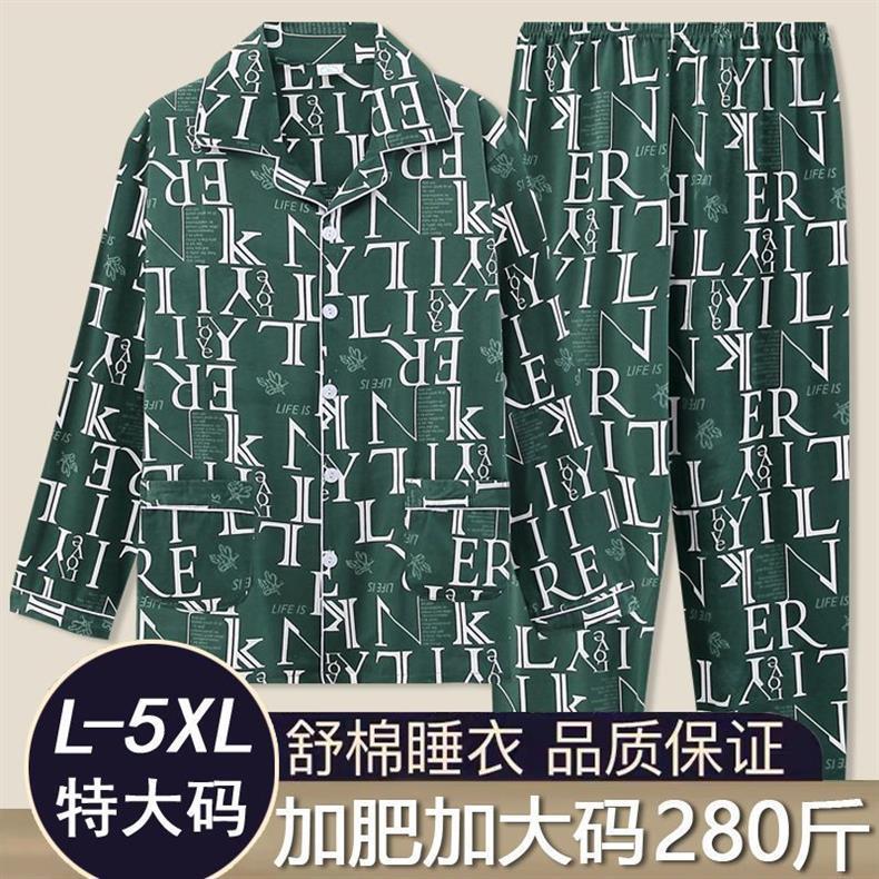 Pijamas de algodón gordo para hombres primavera y otoño de mangas largas para aumentar el tamaño delgado juvenil de mediana edad otoño y invierno conjunto de ropa para el hogar