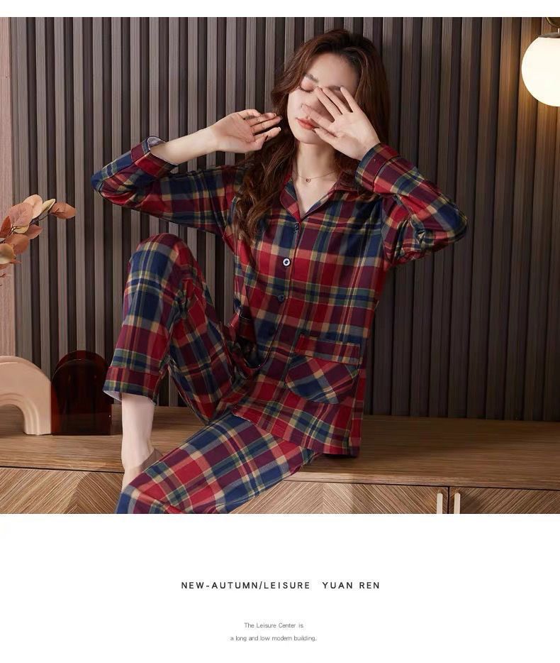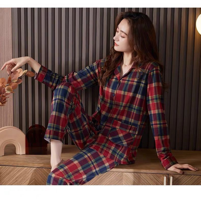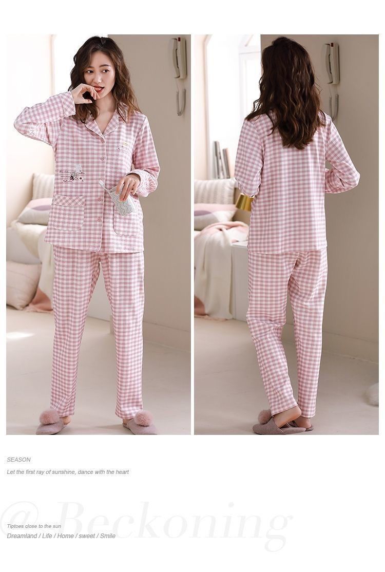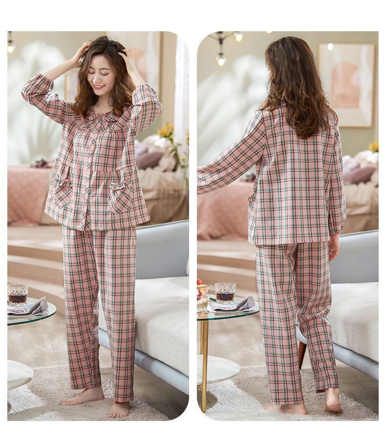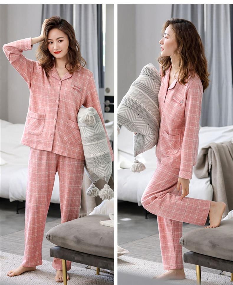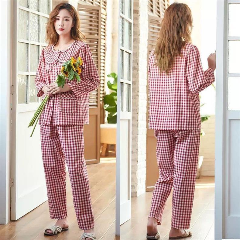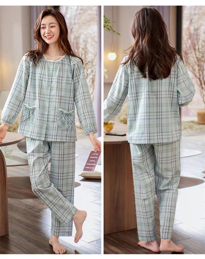 Pijama de mujer otoño invierno algodón nuevo cardigan de manga larga a cuadrillas grande se puede usar con ropa de casa de primavera y otoño