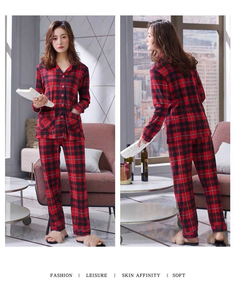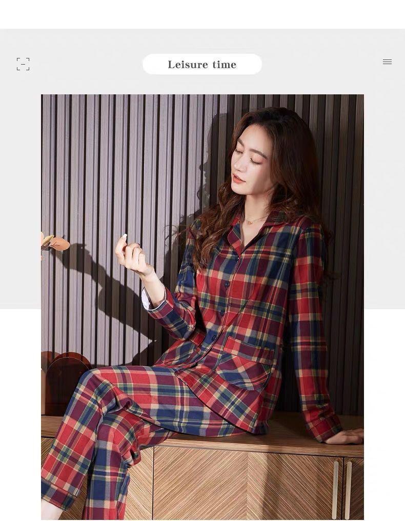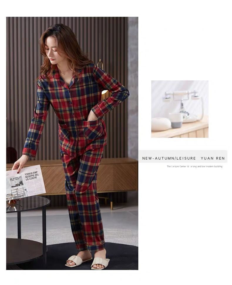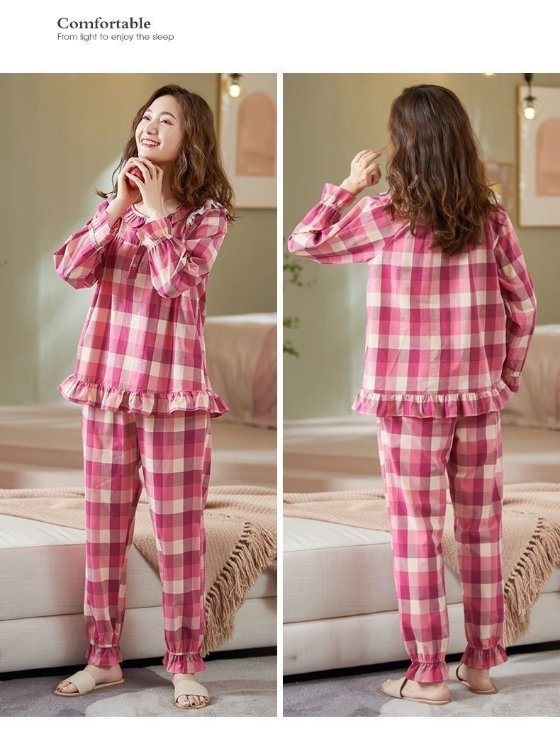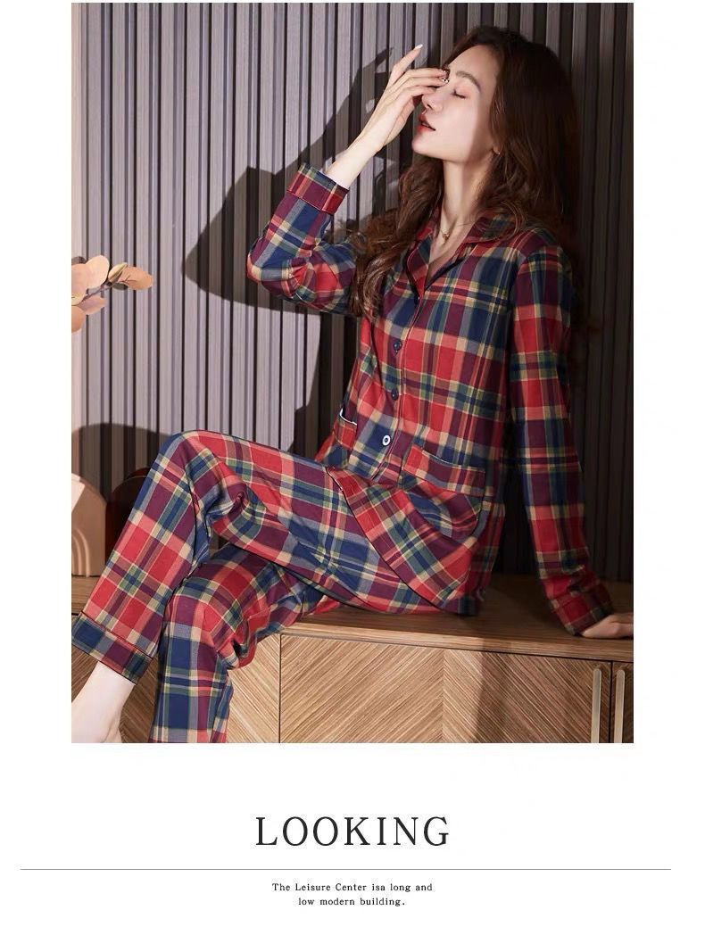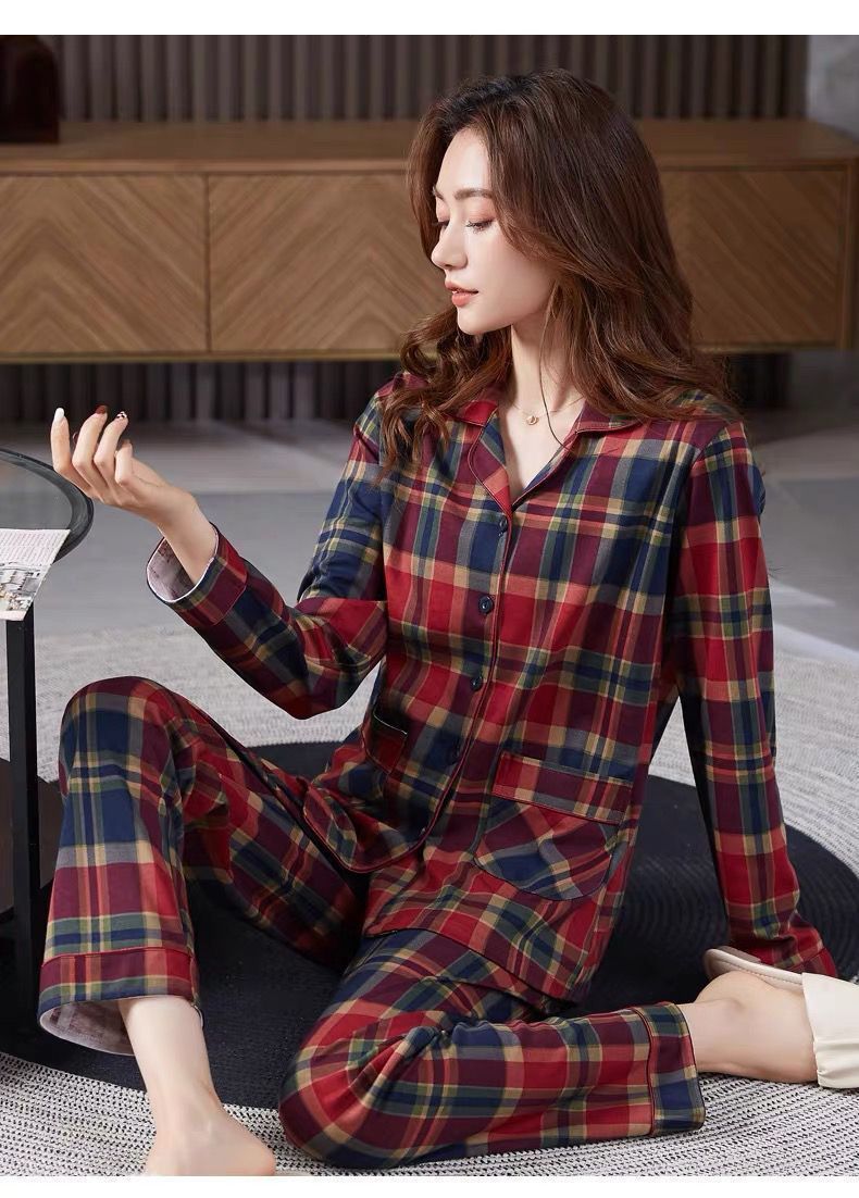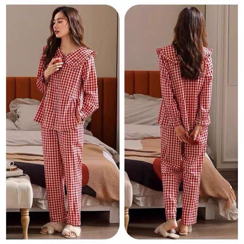 Pijama de mujer otoño invierno algodón nuevo cardigan de manga larga a cuadrillas grande se puede usar con ropa de casa de primavera y otoño