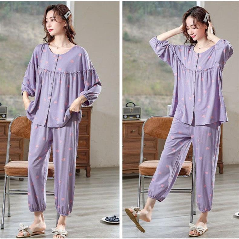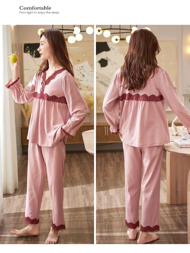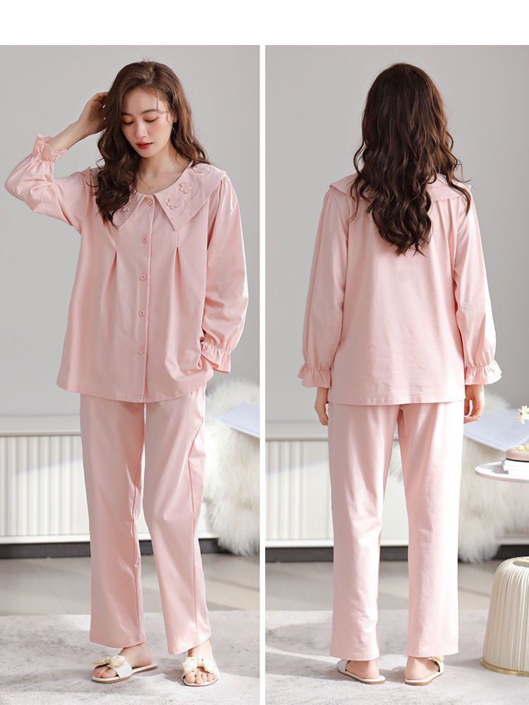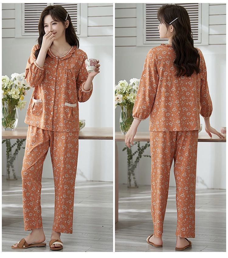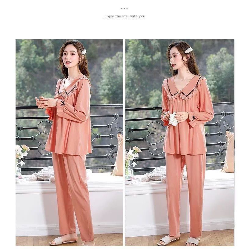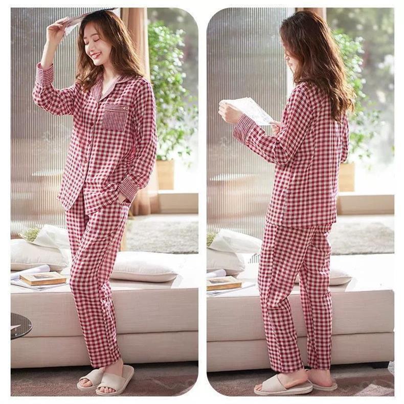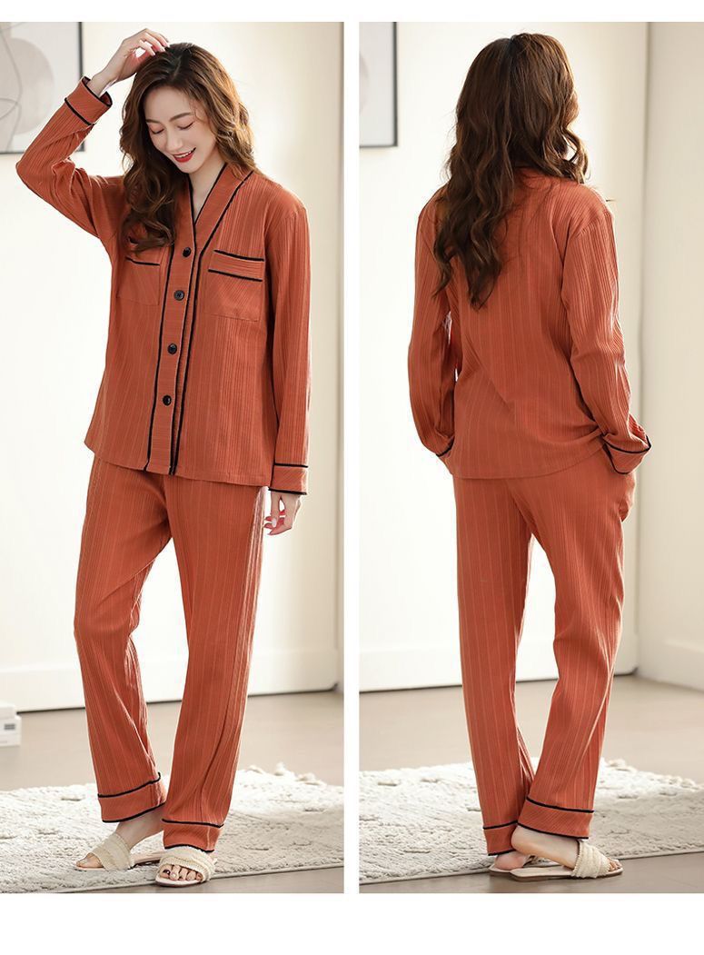 Pijama de mujer otoño invierno algodón nuevo cardigan de manga larga a cuadrillas grande se puede usar con ropa de casa de primavera y otoño