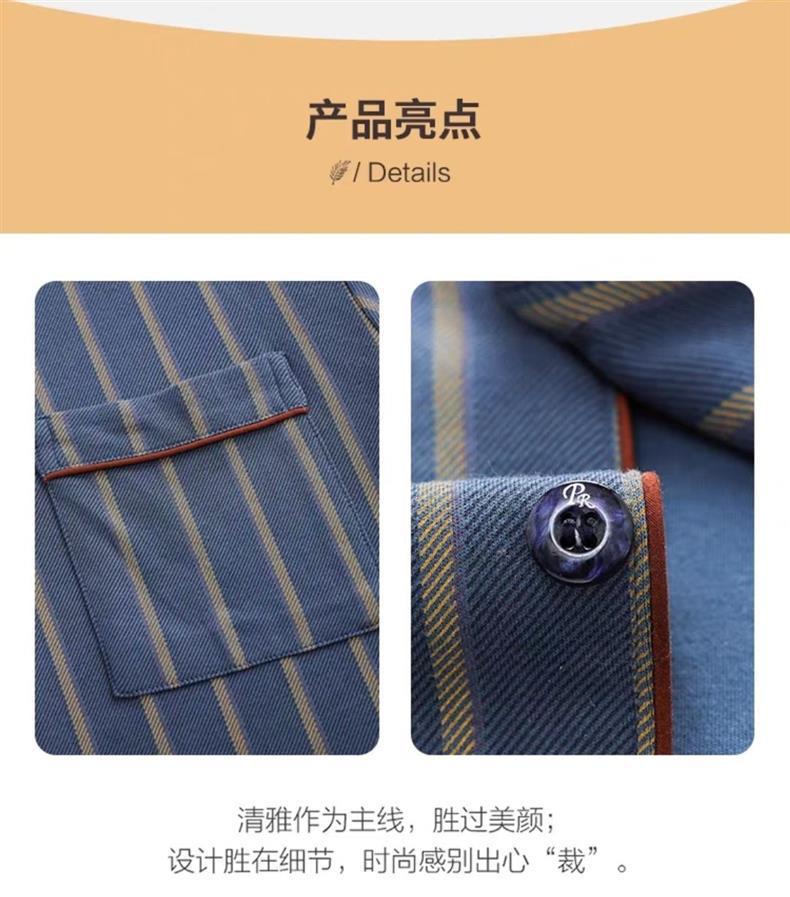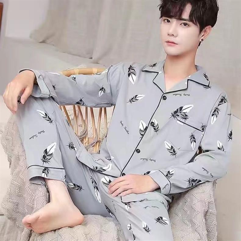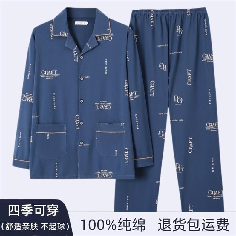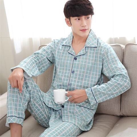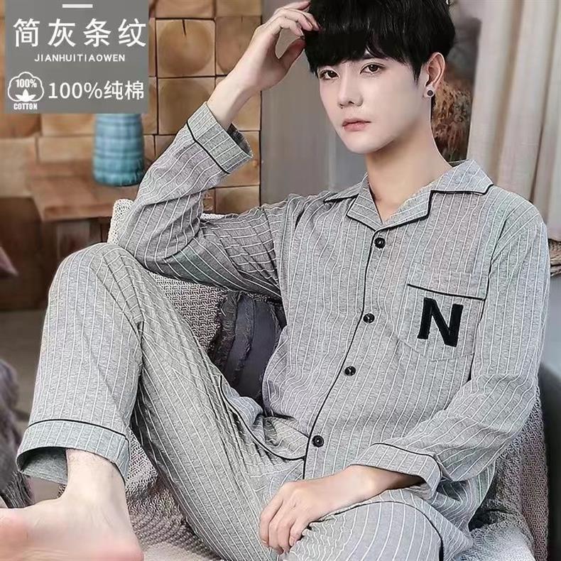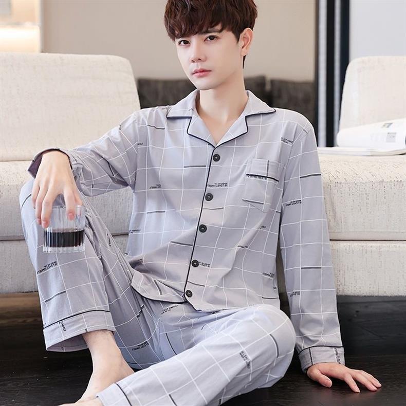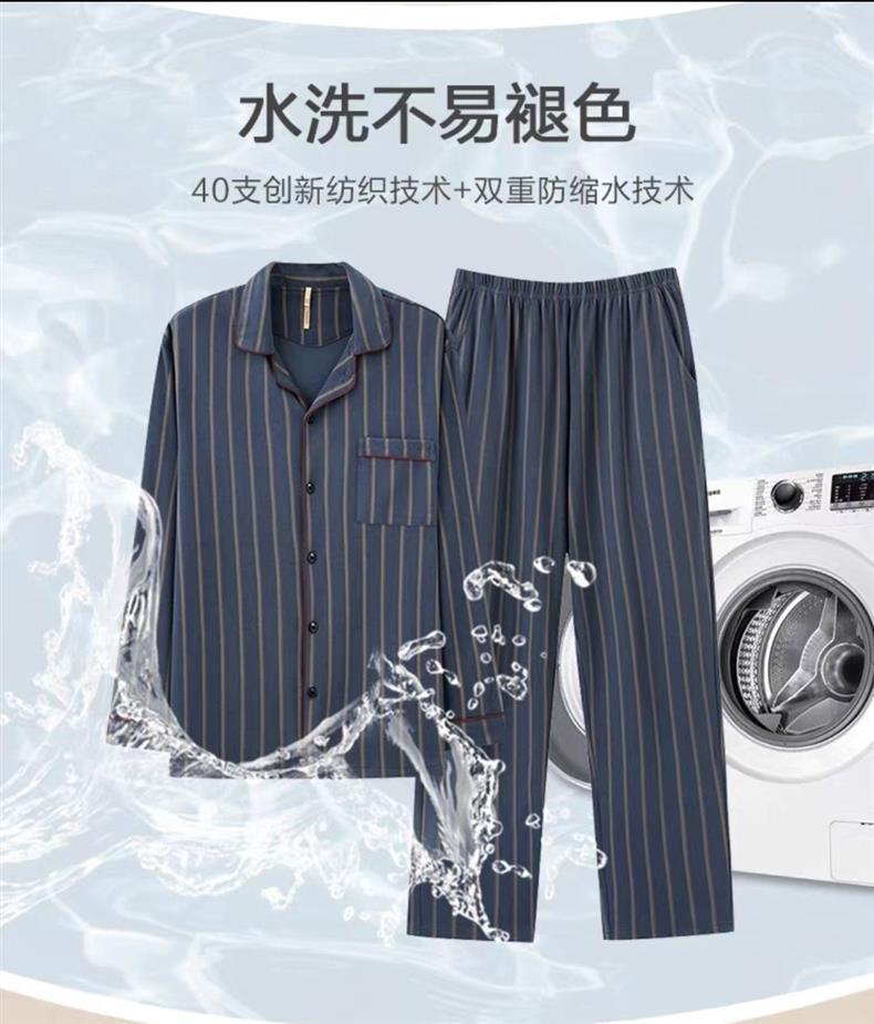 100% algodón de gama alta de los hombres pijamas de primavera y otoño de manga larga de solapa suelta traje de mediana edad desgaste del hogar