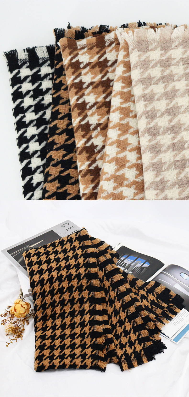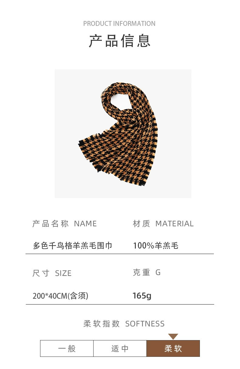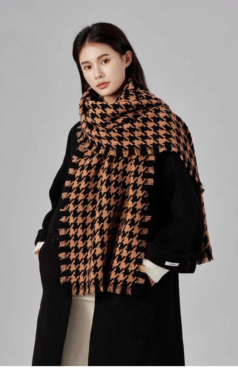 100% bufanda de lana houndstooth moda Otoño e Invierno Plaid bufanda invierno popular chal de los hombres de alta calidad