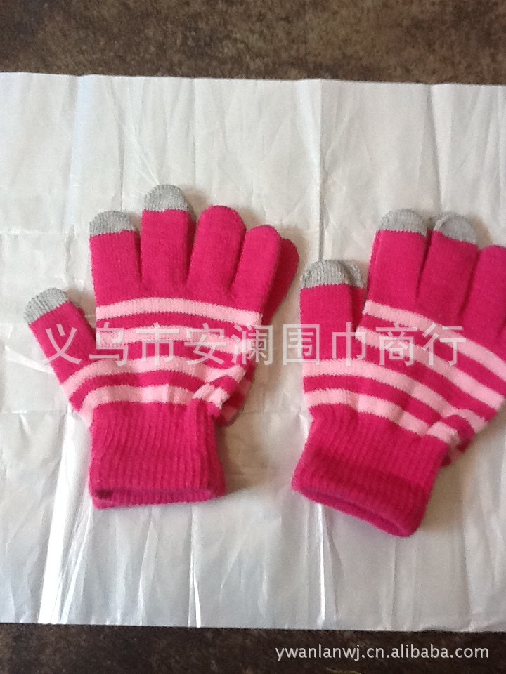 Procesamiento de bajo precio pequeña venta al por mayor mujer adulta de dos colores a rayas pantalla táctil de acrílico de punto de ropa fabricante de guantes de pantalla táctil