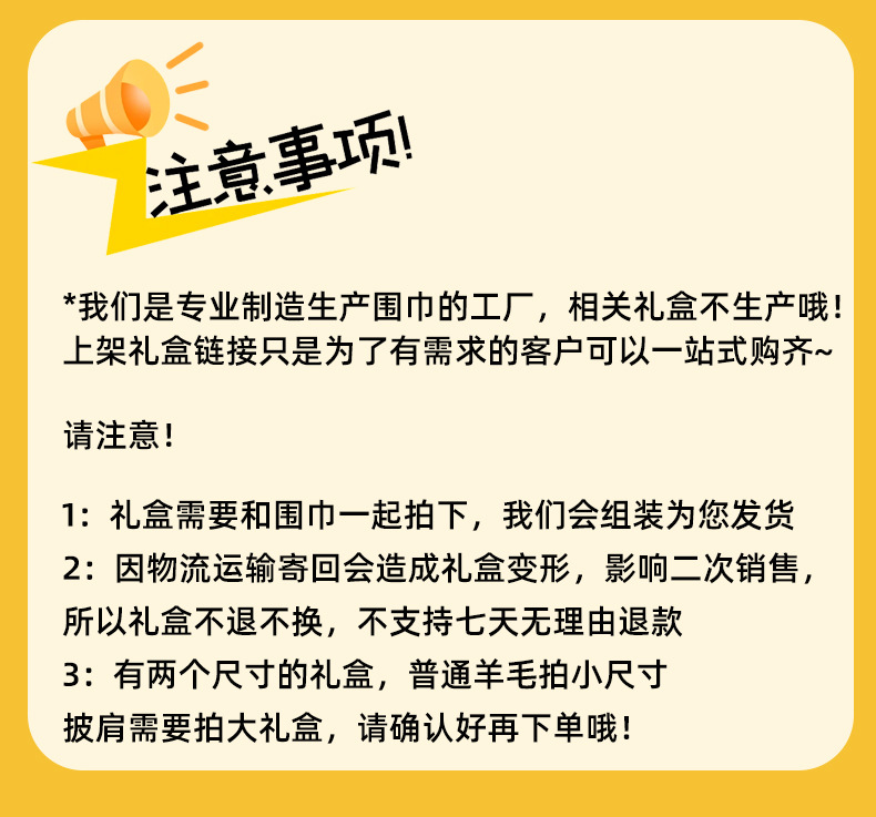 | Colores | Caqui Ruyi de Año Nuevo (sin bufanda),Envíe a un amigo patrón verde retro (sin bufanda),Caja de regalo simple y rápida (sin bufanda),Caja de regalo grande (adecuada para un chal grande de tres piezas, etc.) sin bufanda |