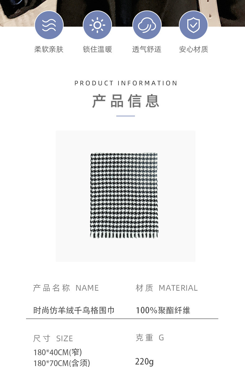 Nueva bufanda de pata de gallo de Cachemira como invierno popular Corea del Sur engrosada de las mujeres otoño e invierno cálido bufanda chal de los hombres