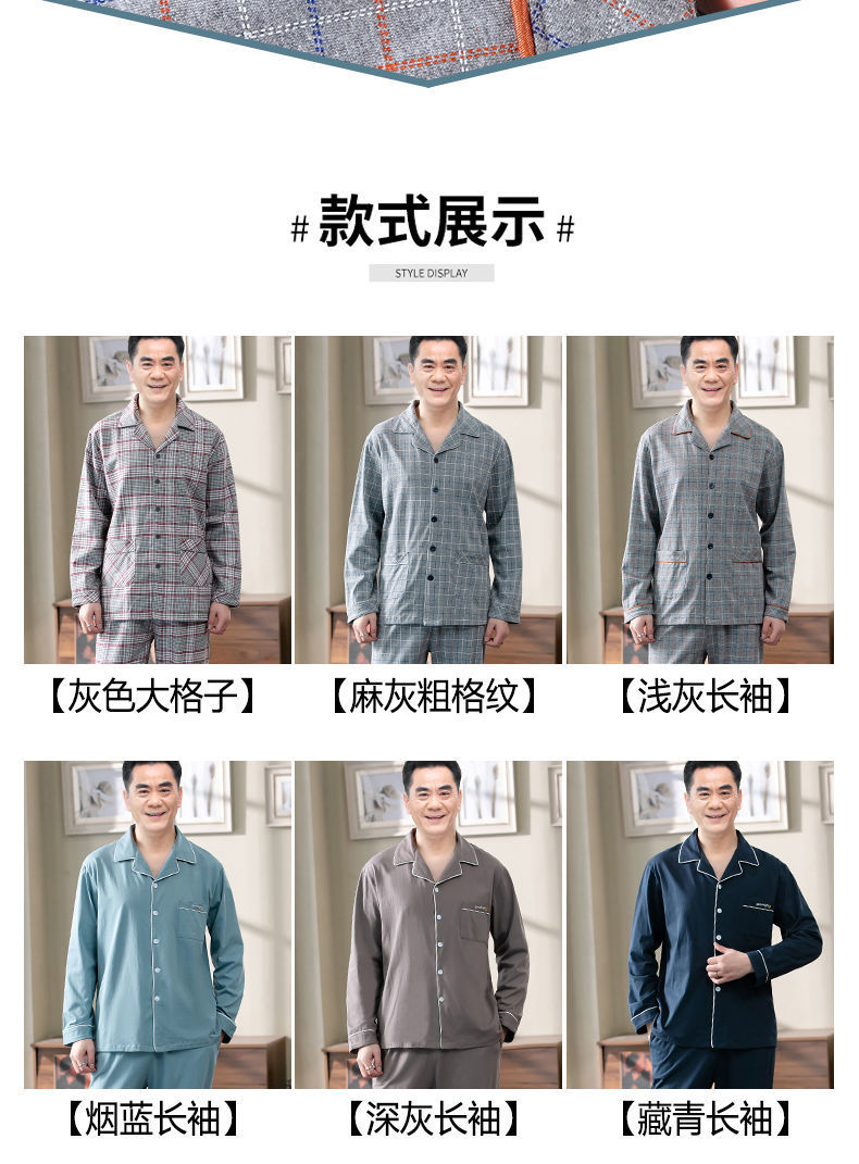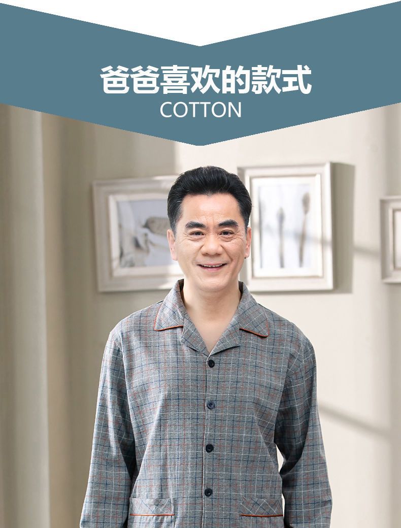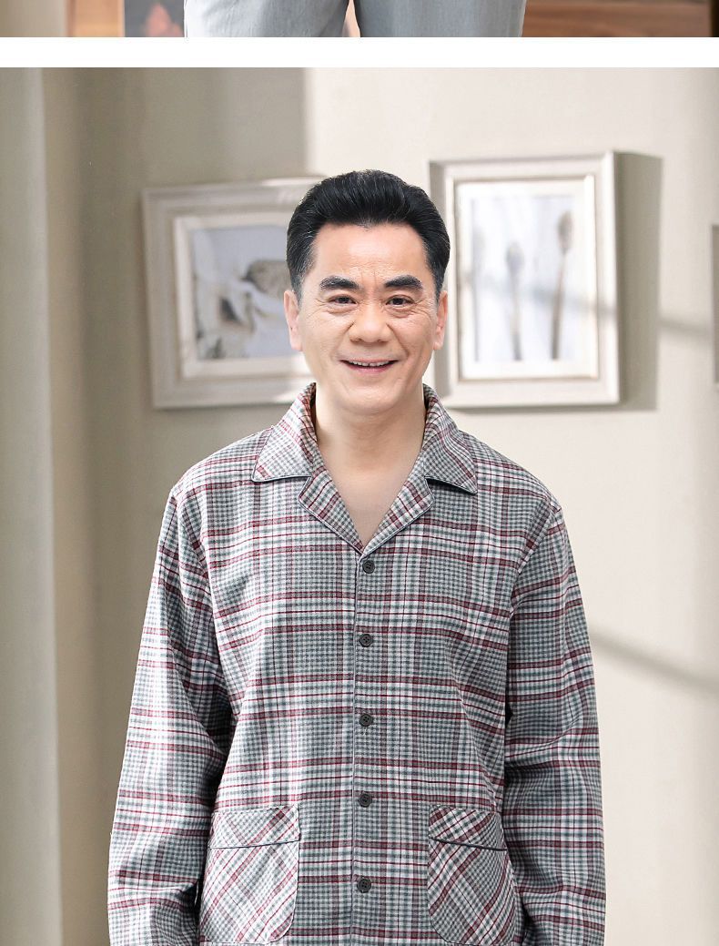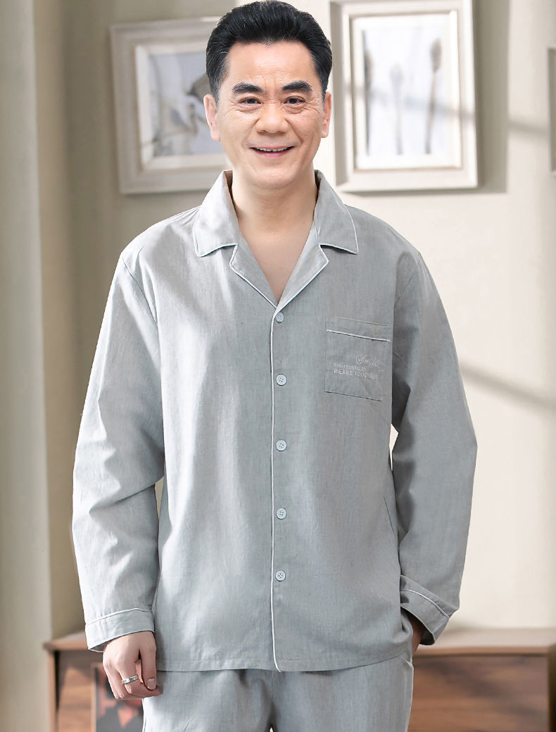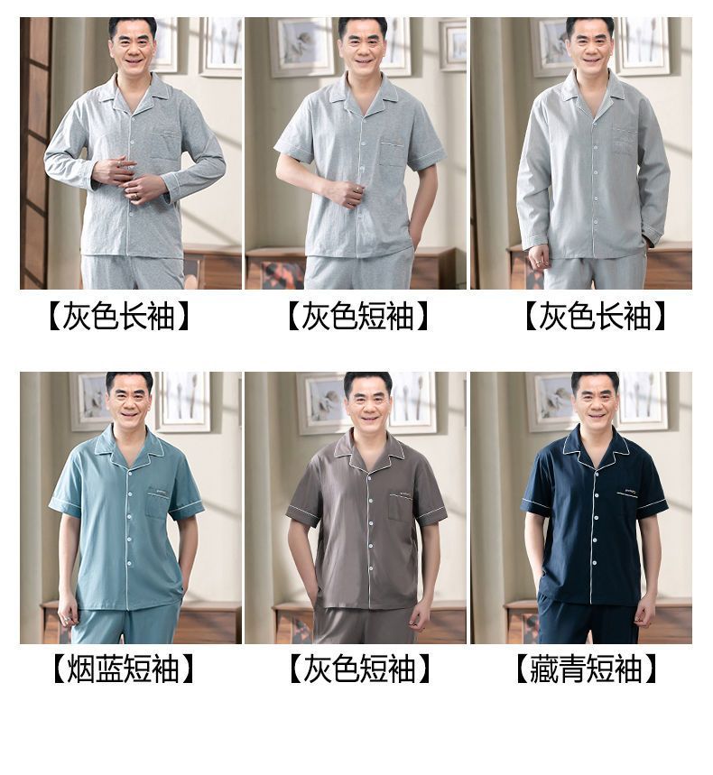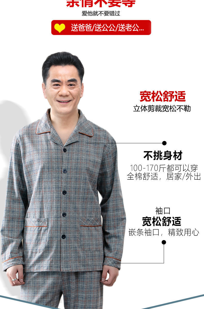 Pijamas de los hombres de primavera y otoño 100% algodón de manga larga de verano delgado de mediana edad y ancianos de algodón papá traje de desgaste para el hogar
