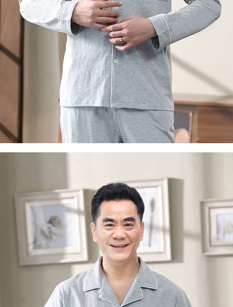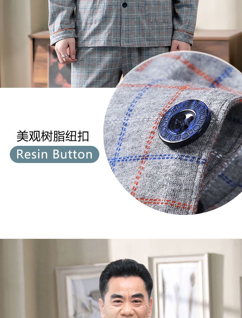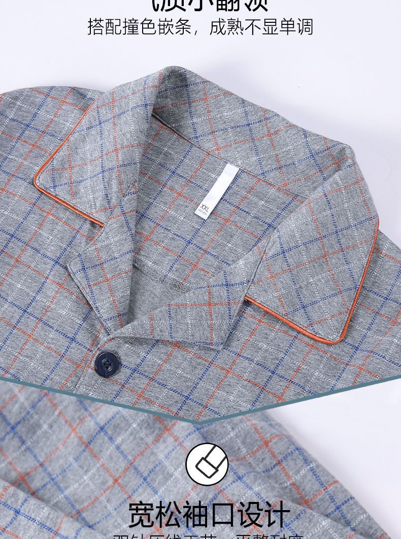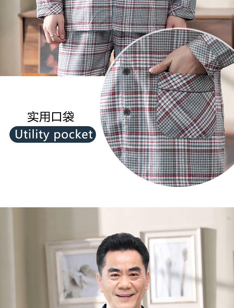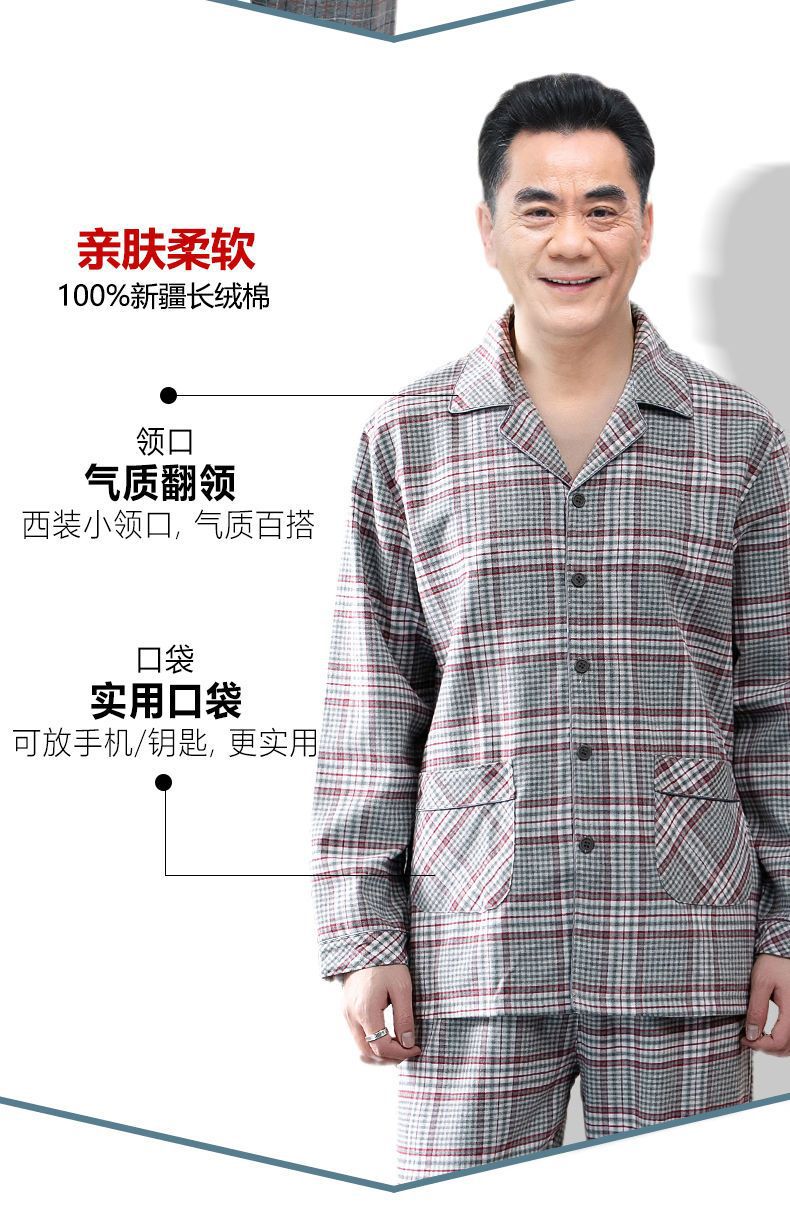Pijamas de los hombres de primavera y otoño 100% algodón de manga larga de verano delgado de mediana edad y ancianos de algodón papá traje de desgaste para el hogar