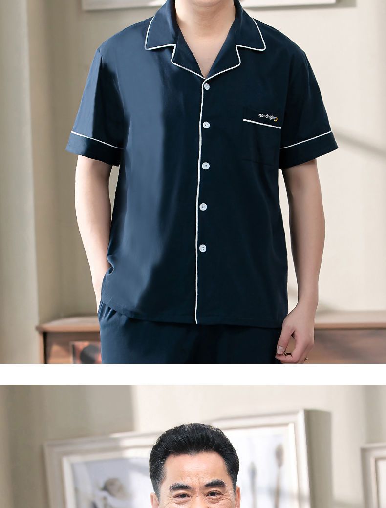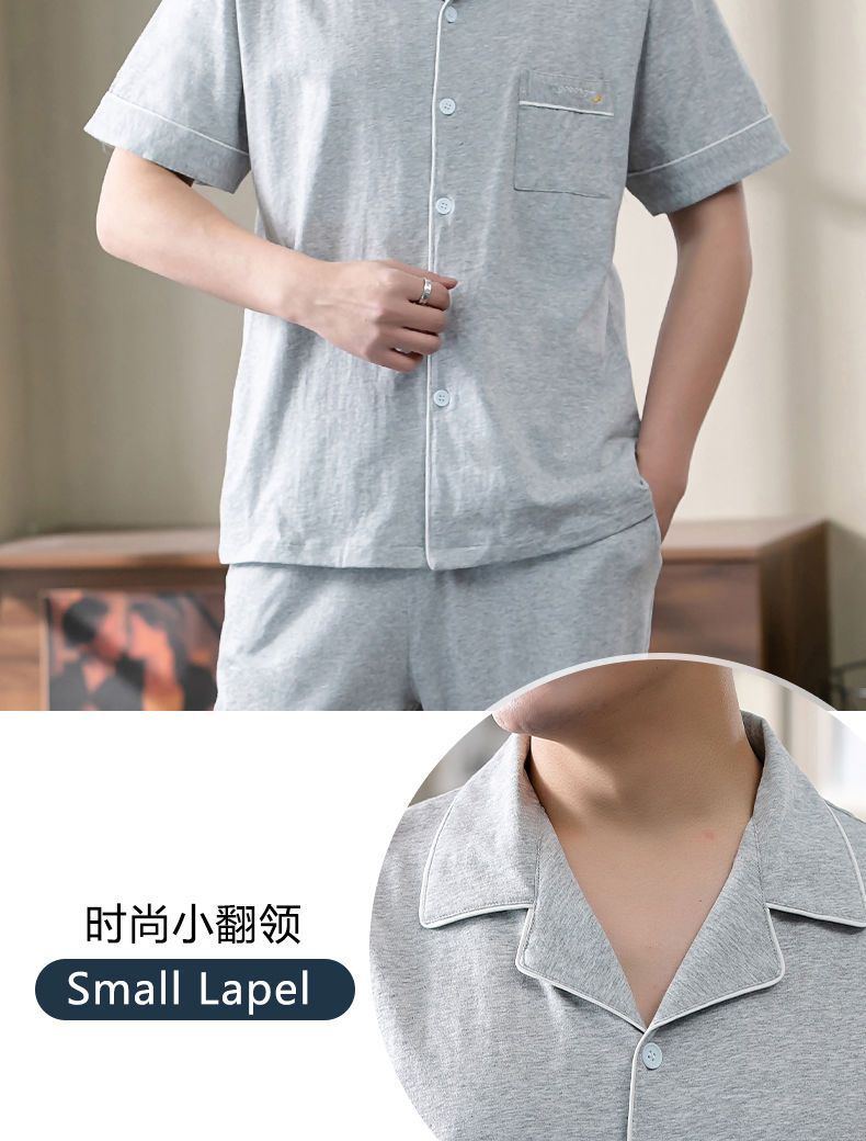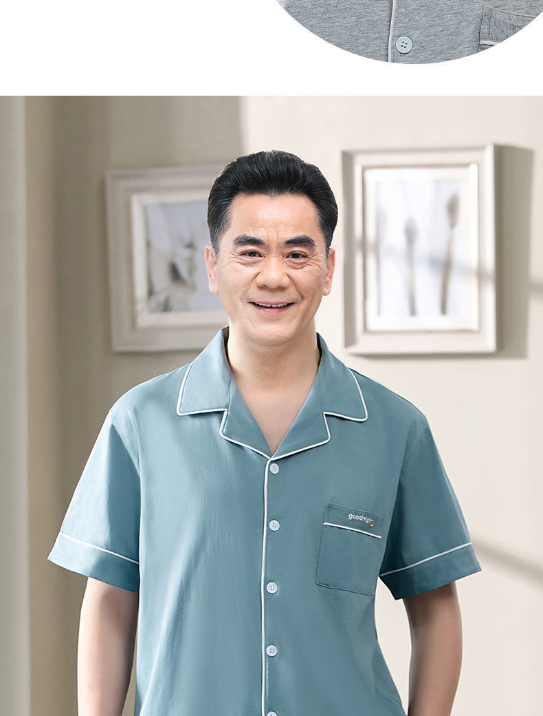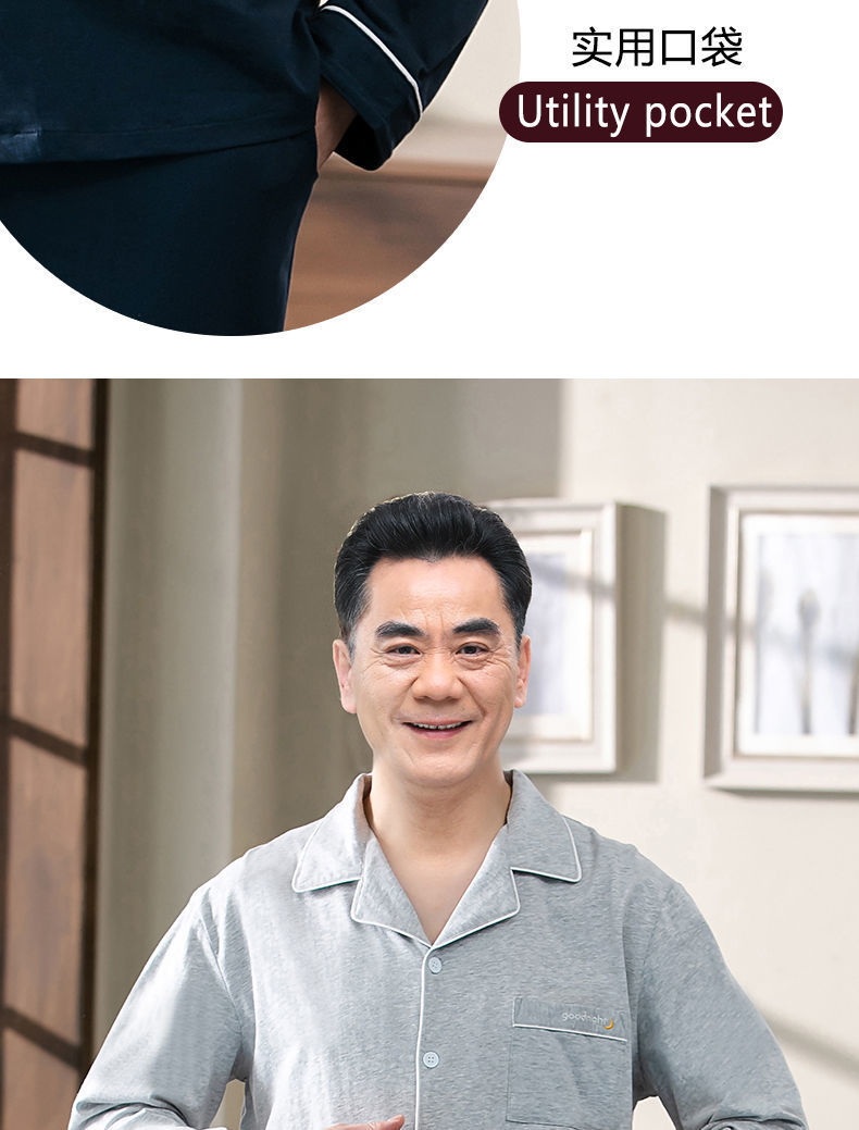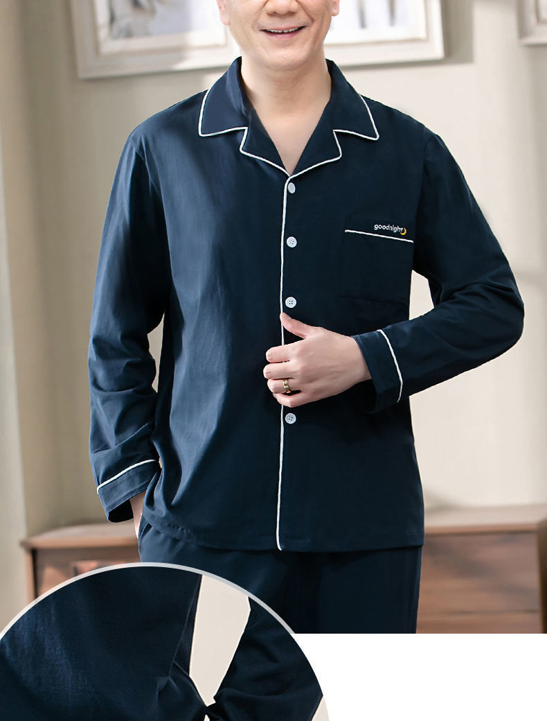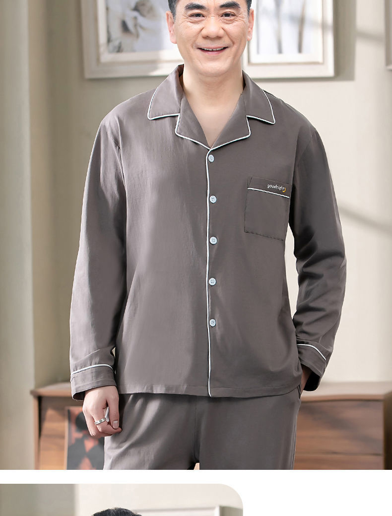 Pijamas de los hombres de primavera y otoño 100% algodón de manga larga de verano delgado de mediana edad y ancianos de algodón papá traje de desgaste para el hogar