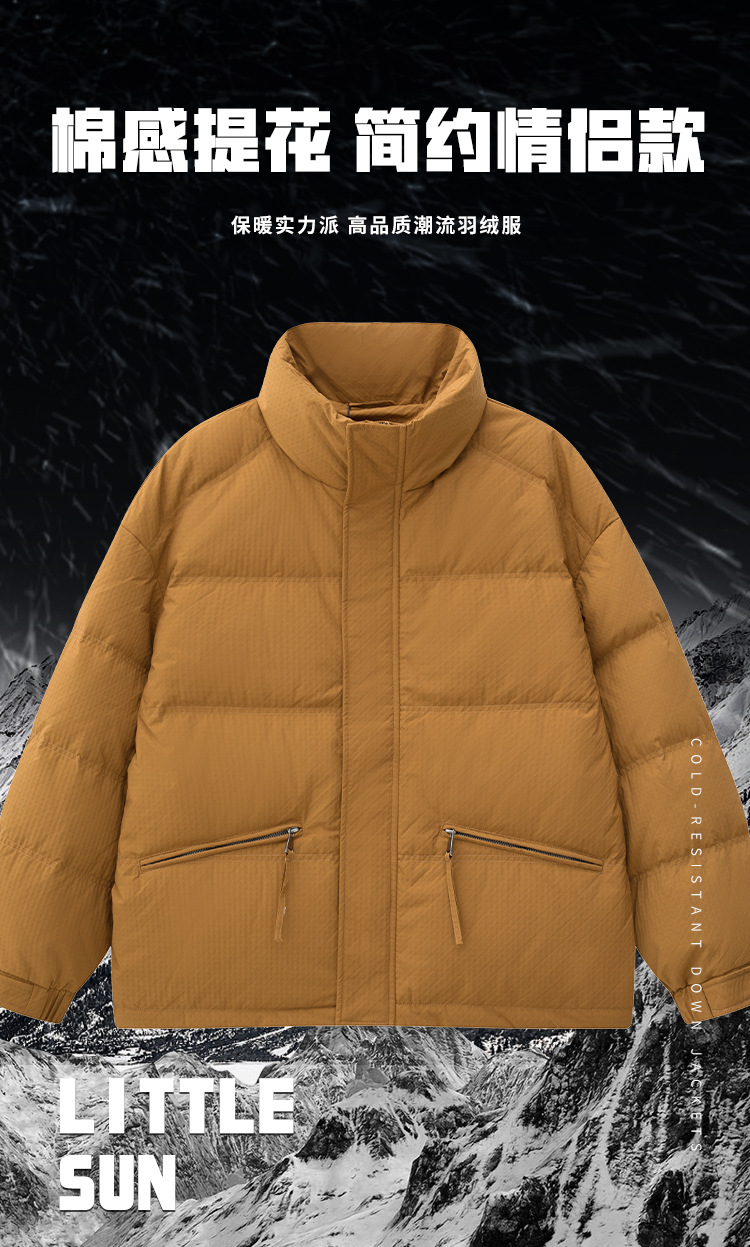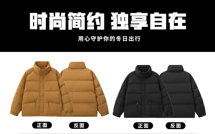 Ropa de pan de cuello alto para hombre de otoño e invierno Chaqueta de plumón de pareja Chaqueta de plumón de pato blanco cálido casual simple protección contra el frío