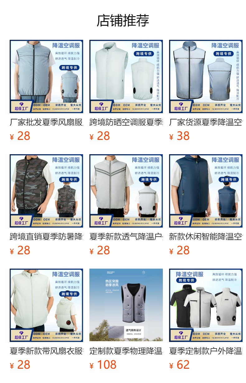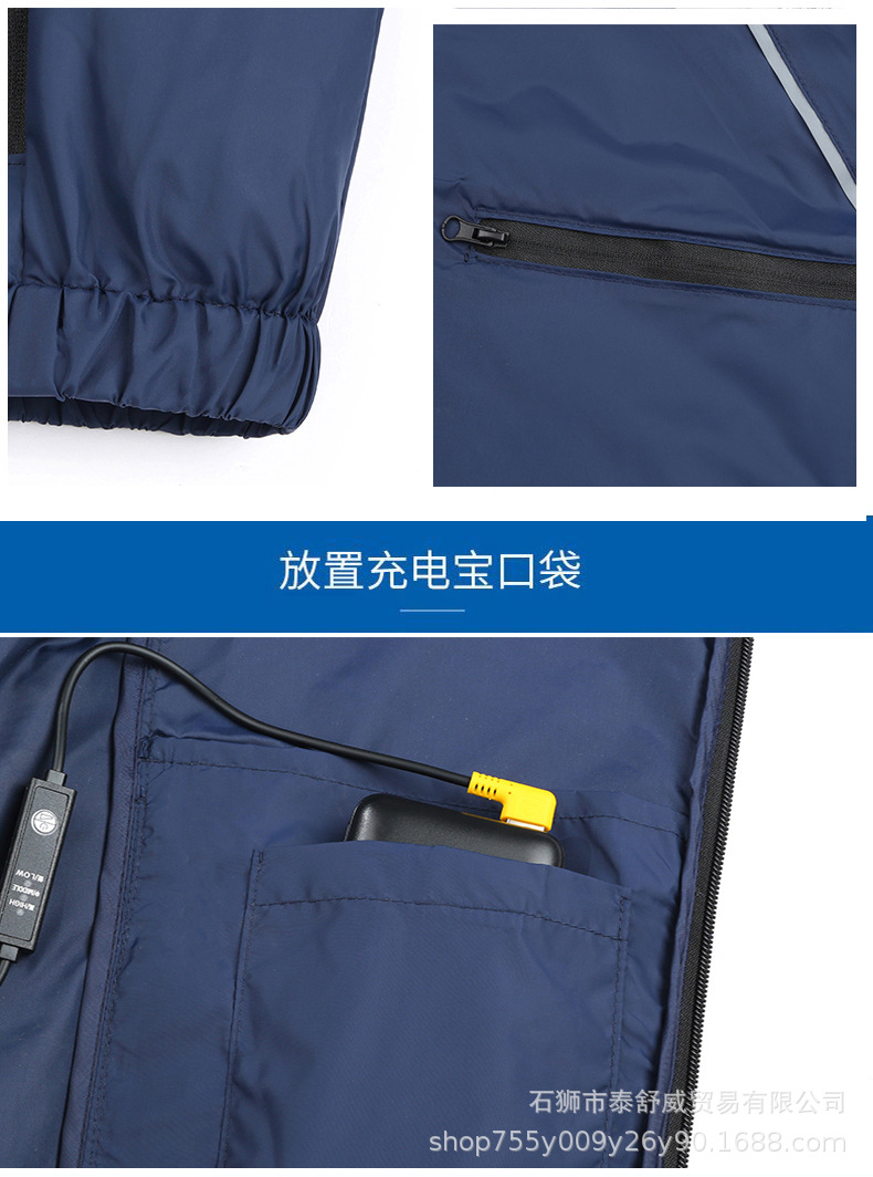 | Color | Una sola ropa azul oscuro, una sola ropa gris claro, un conjunto de ventilador, diez mil miliamperios de carga, ropa azul oscuro + ventilador, ropa gris claro + ventilador |
