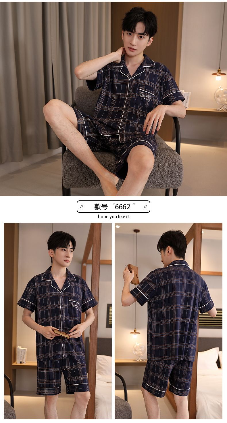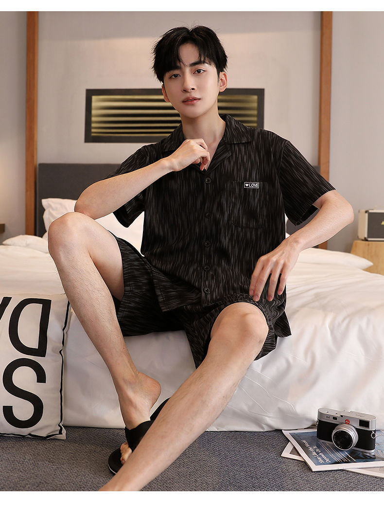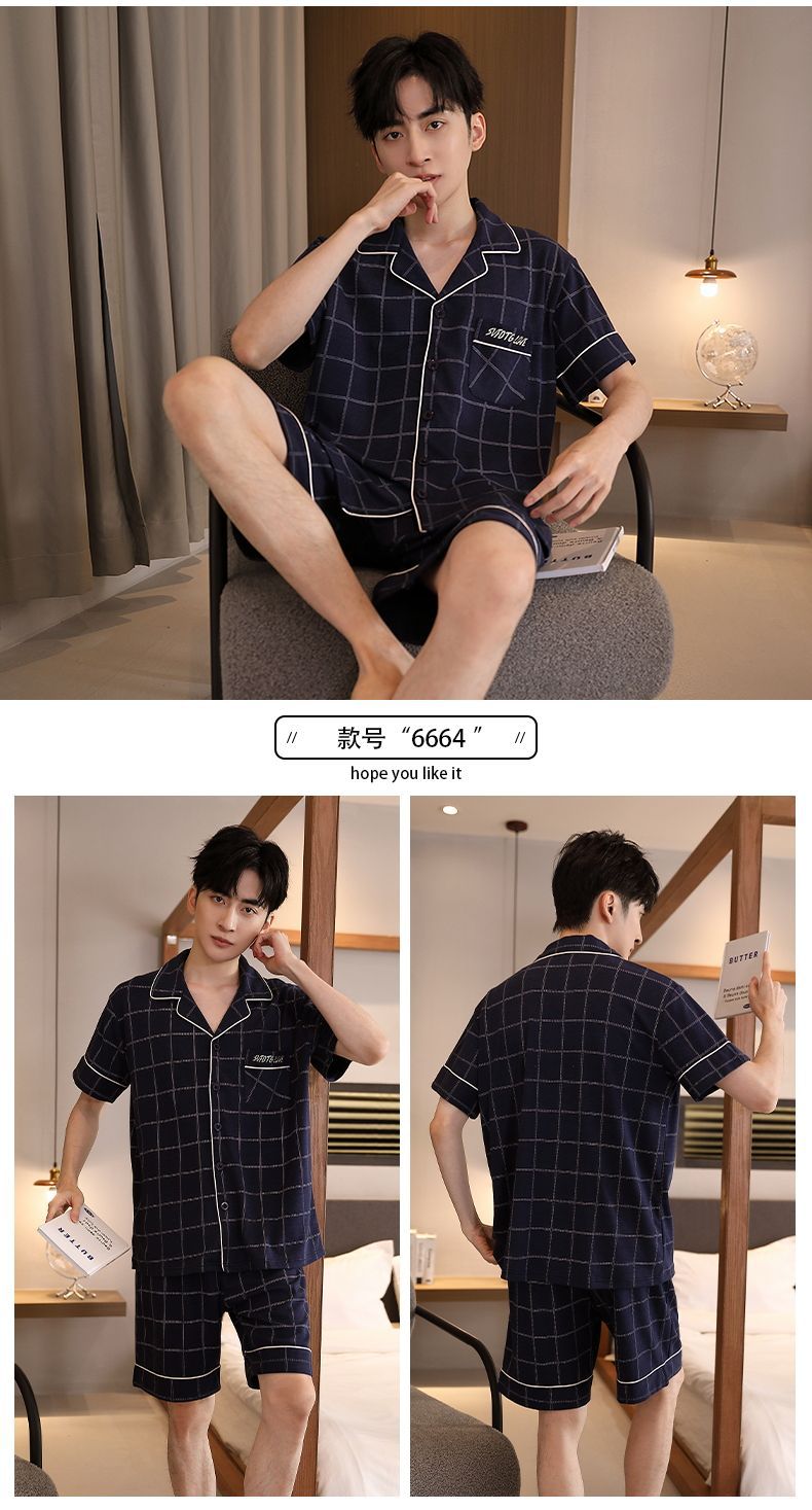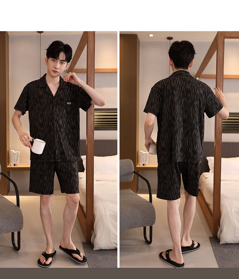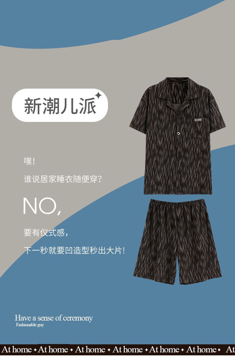 Pijamas de tres piezas Cárdigan para hombre Pantalones cortos de manga corta de verano Pantalones de gran tamaño más gordo y traje de servicio a domicilio