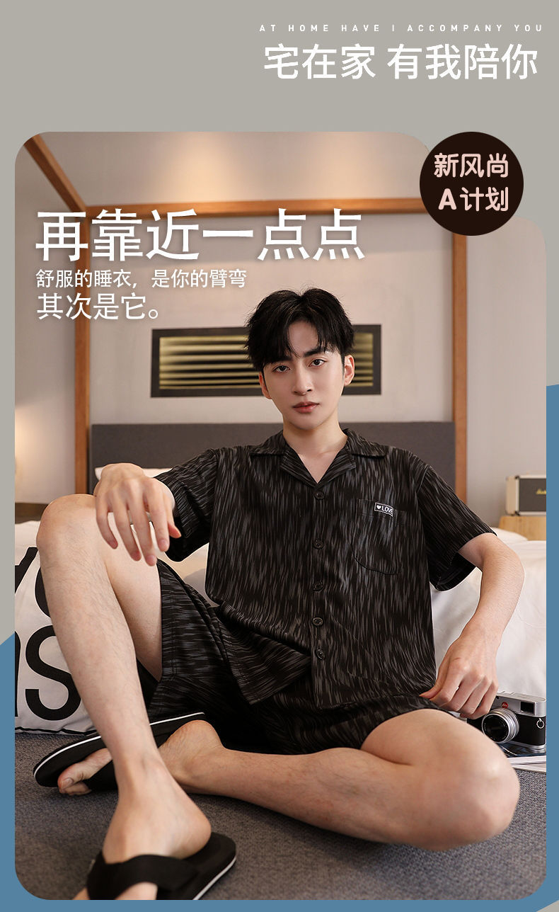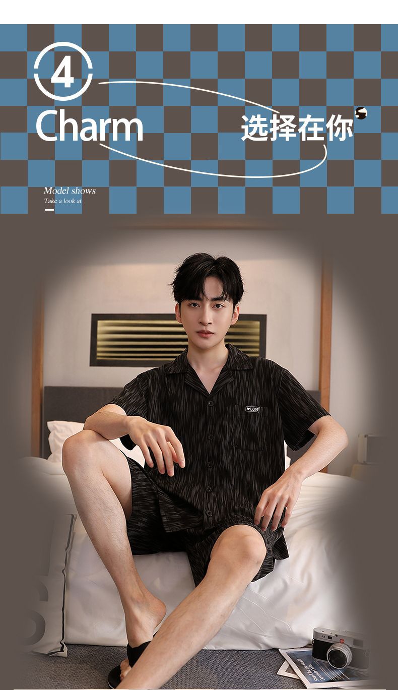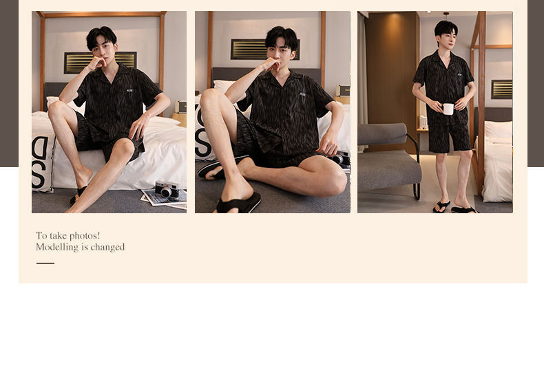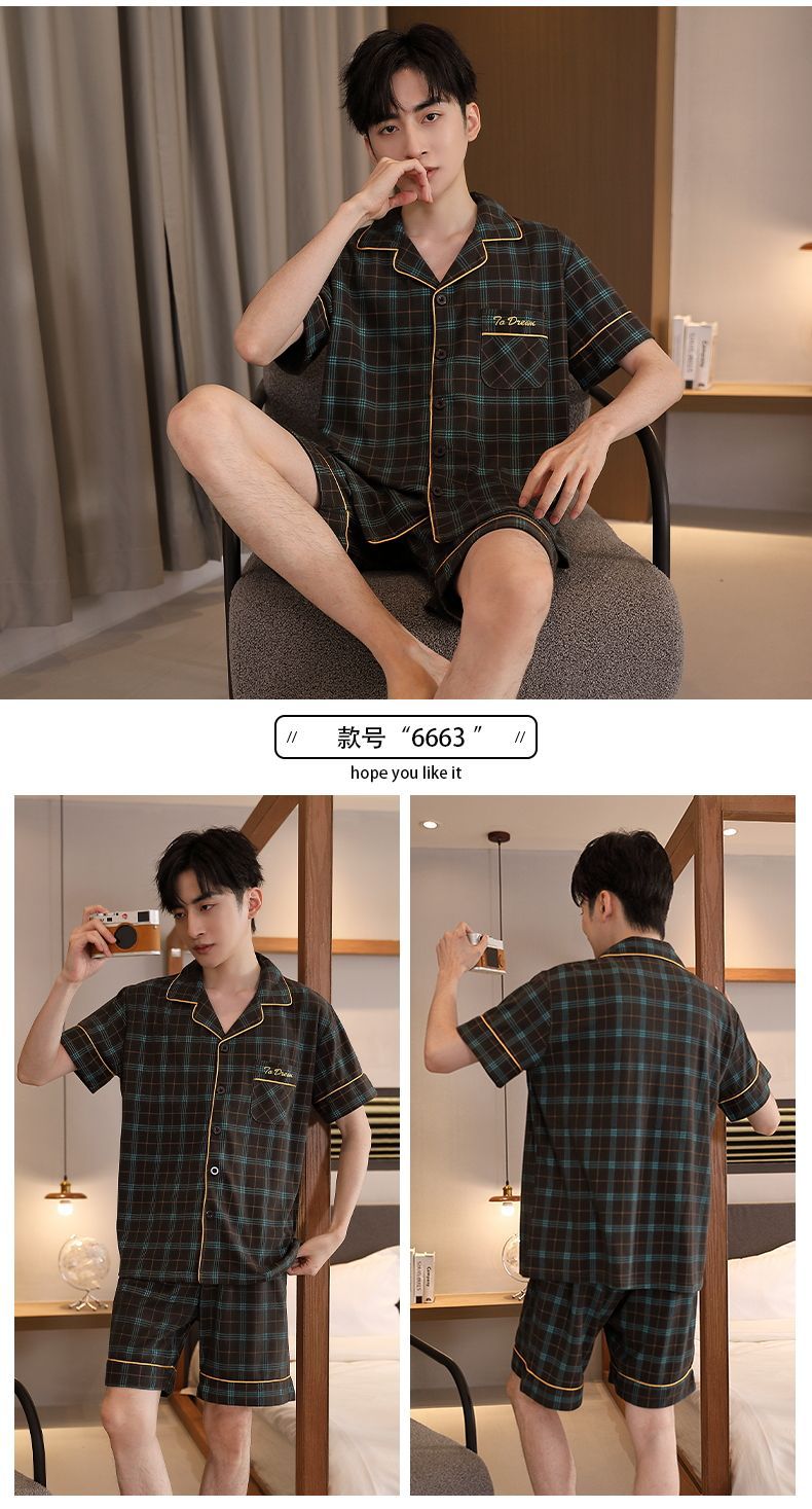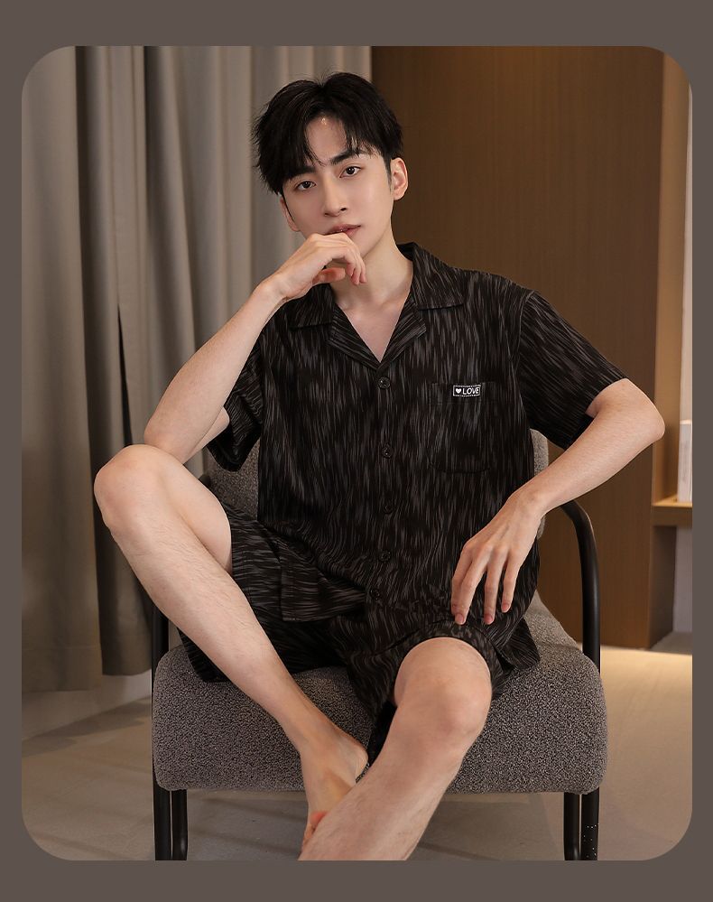 Pijamas de tres piezas Cárdigan para hombre Pantalones cortos de manga corta de verano Pantalones de gran tamaño más gordo y traje de servicio a domicilio
