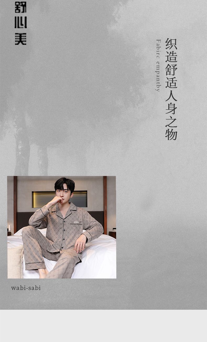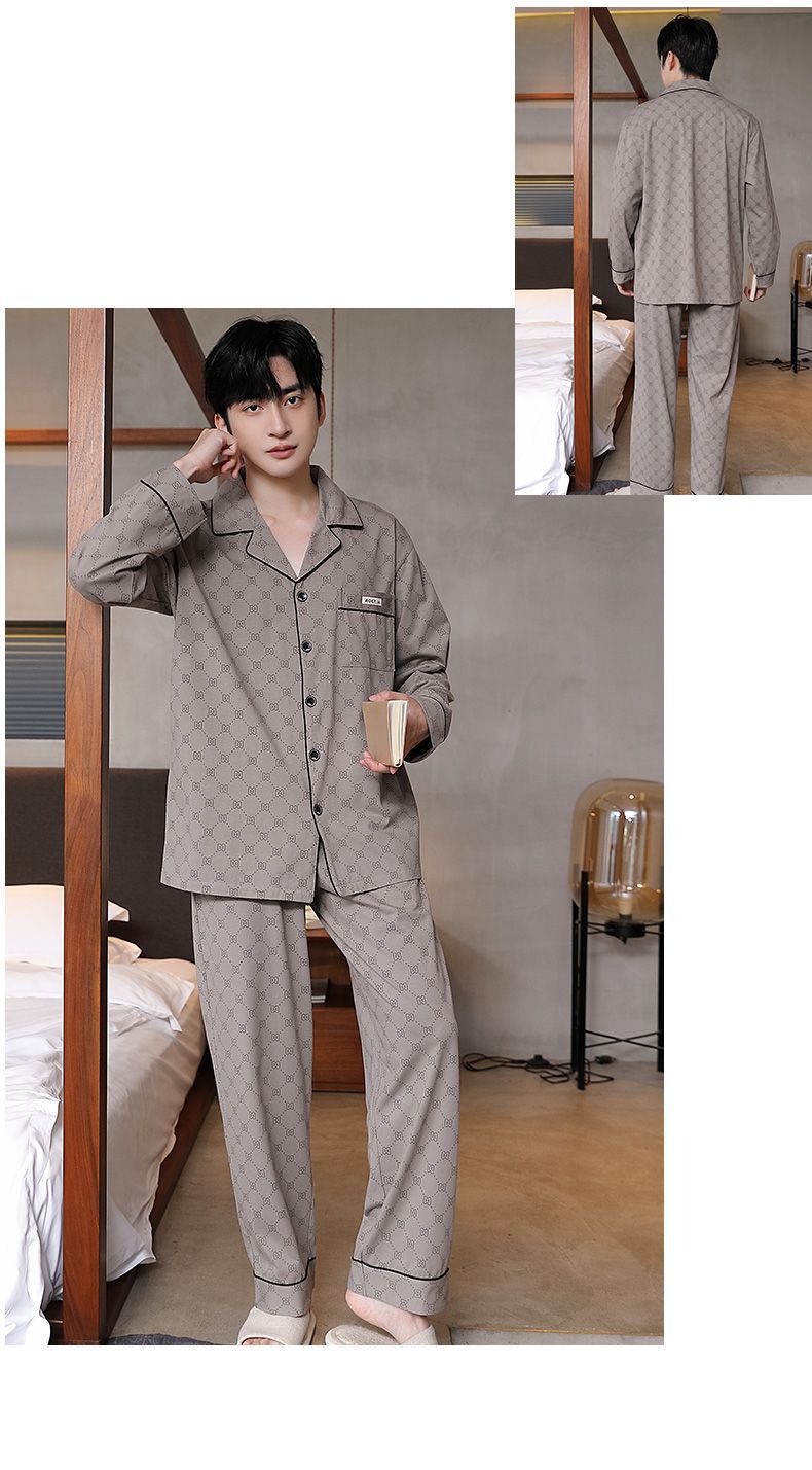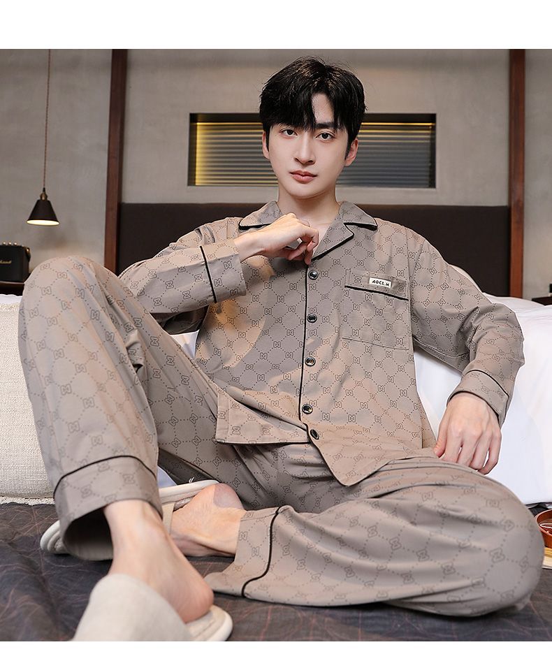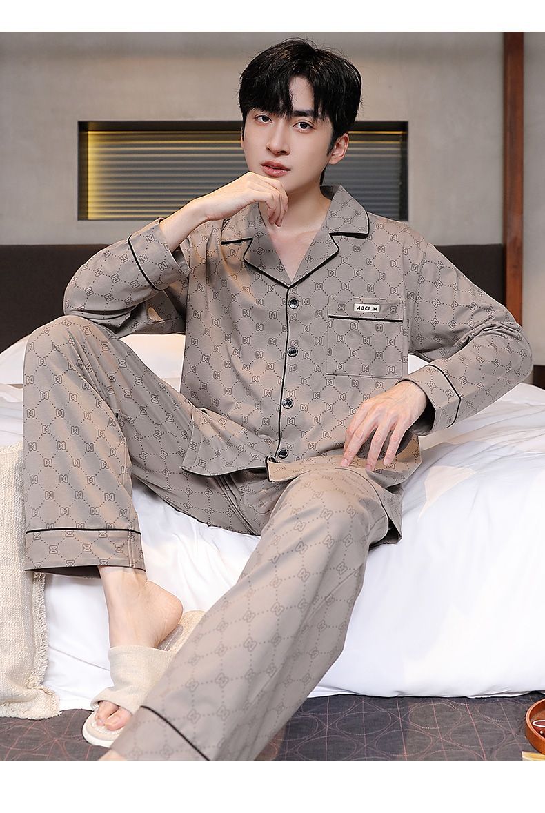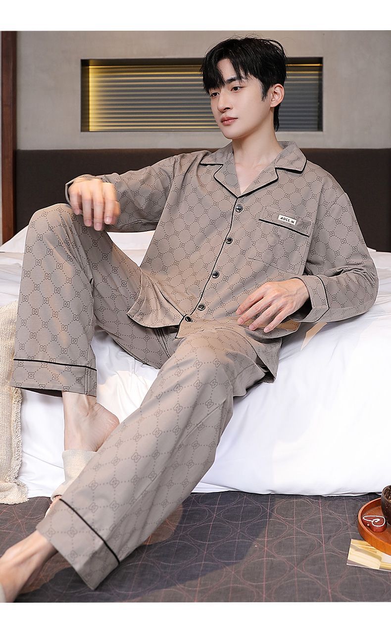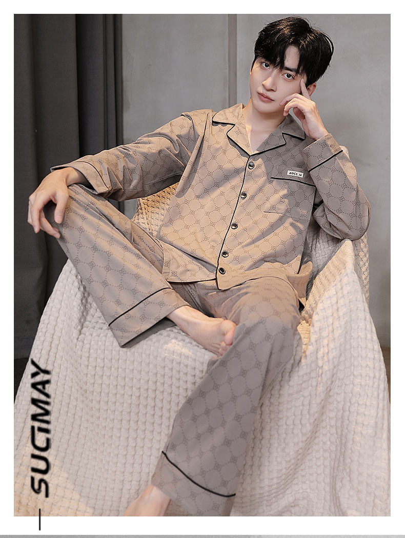 Pijama de hombre otoño y invierno de mangas largas sensación de solapa de moda cómoda ropa casera casual conjunto de ropa exterior