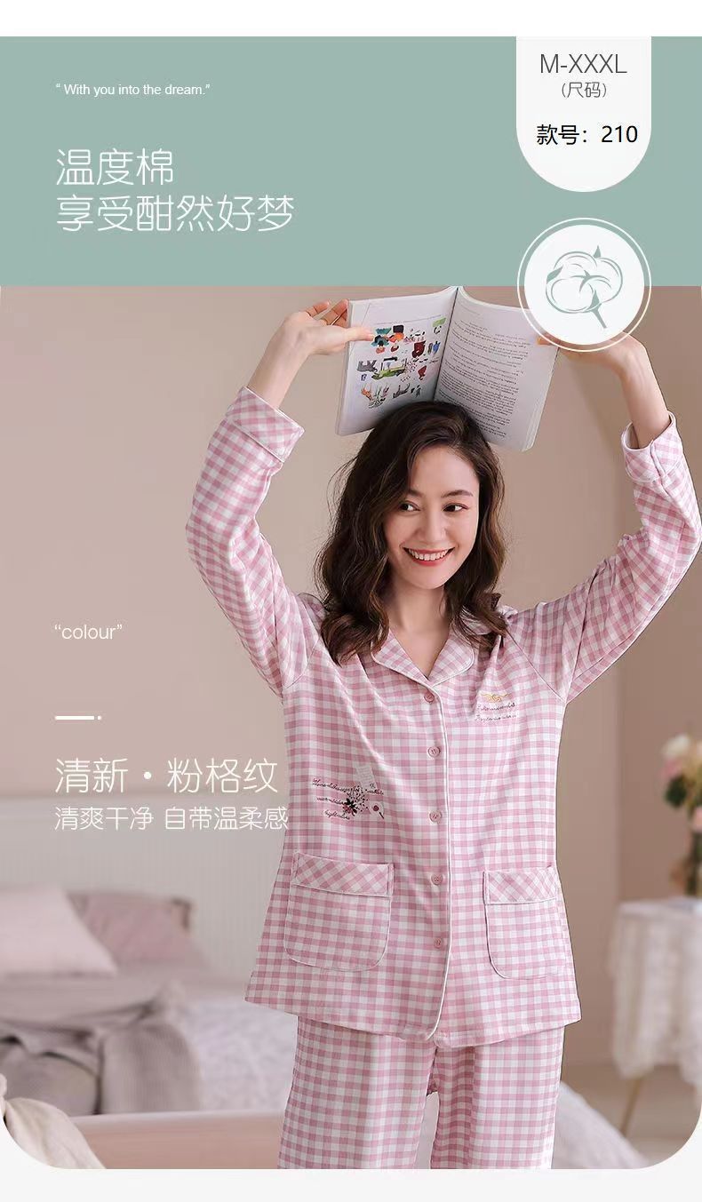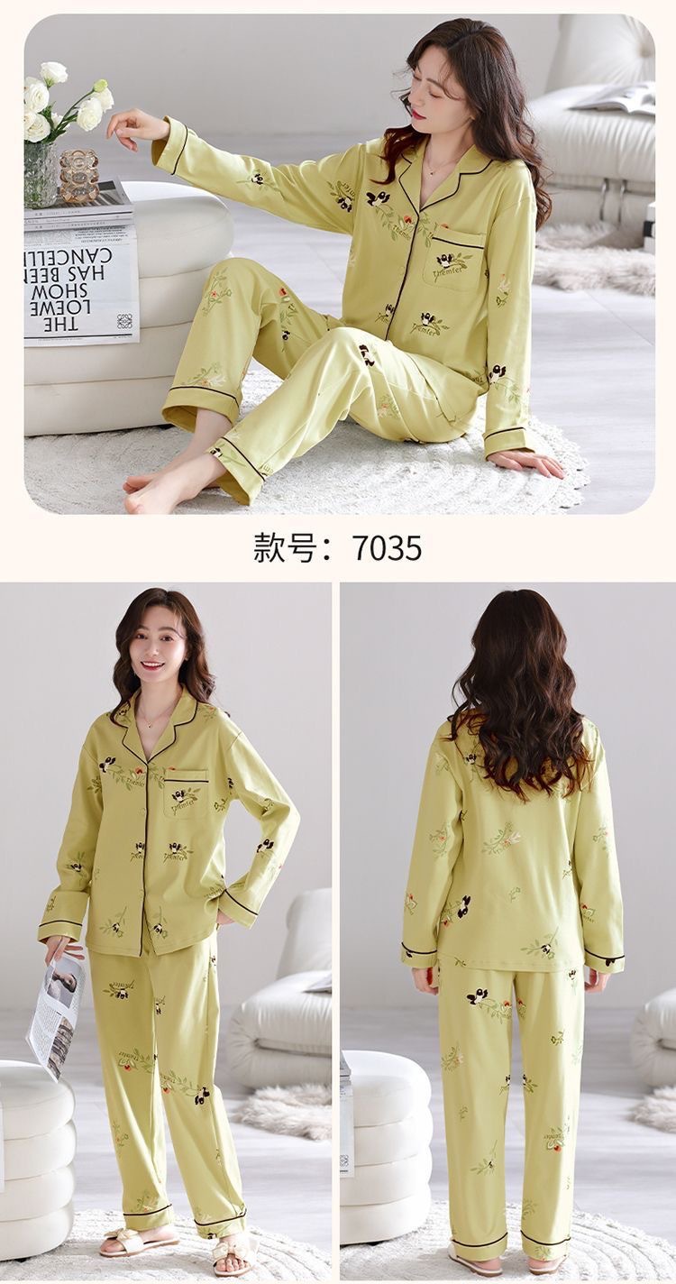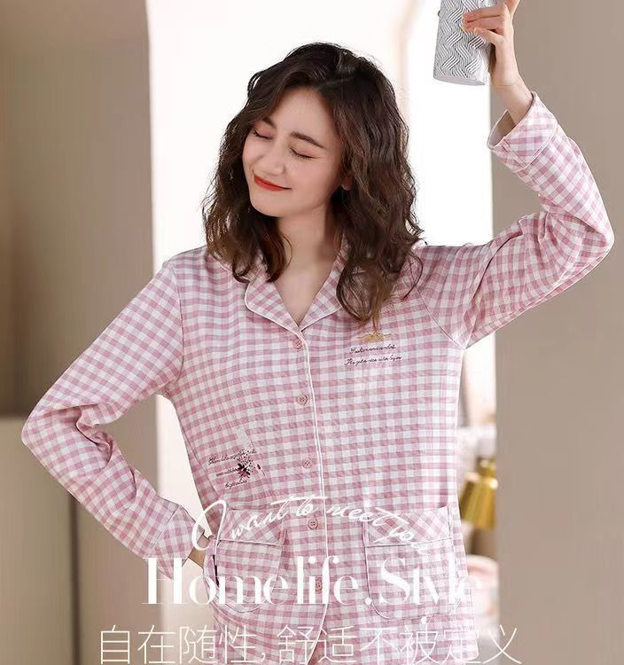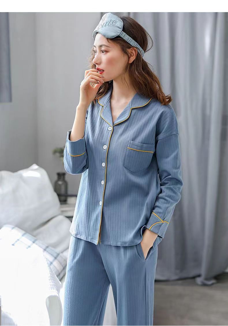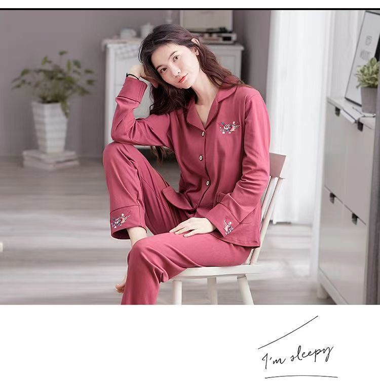 Pijama de otoño de primavera y otoño de algodón de verano con cojín de pecho anti-protuberancia pantalones de manga larga cardigan de alta calidad ropa para el hogar