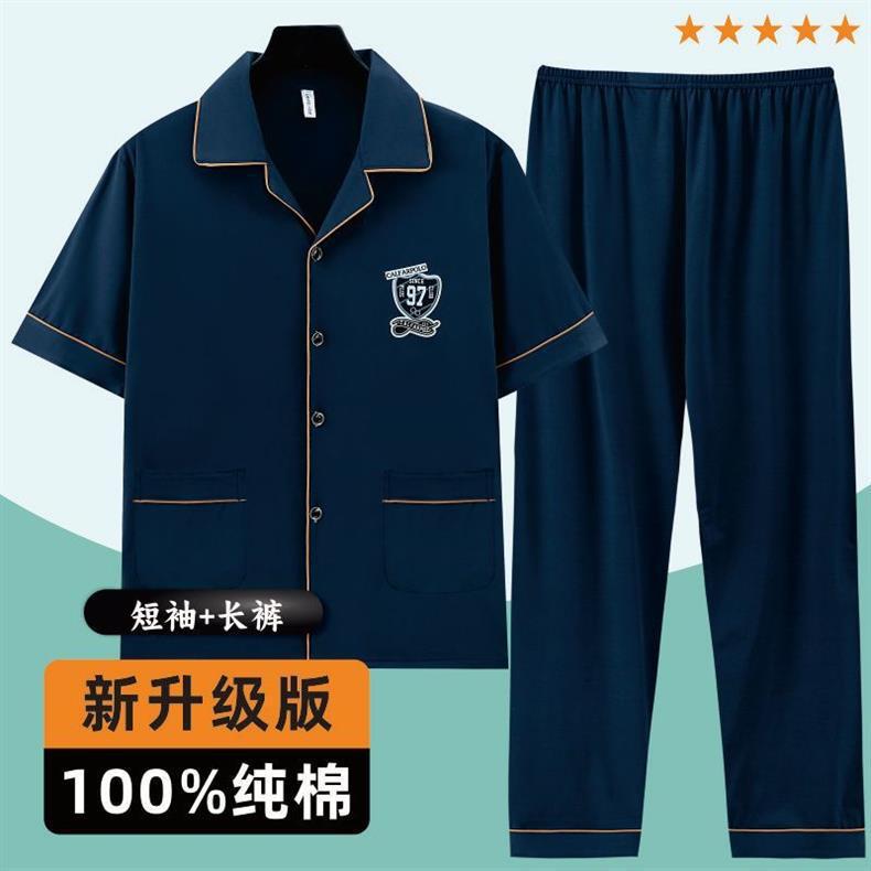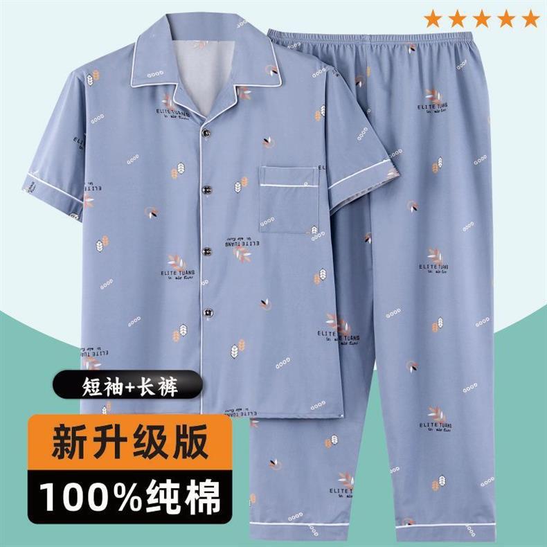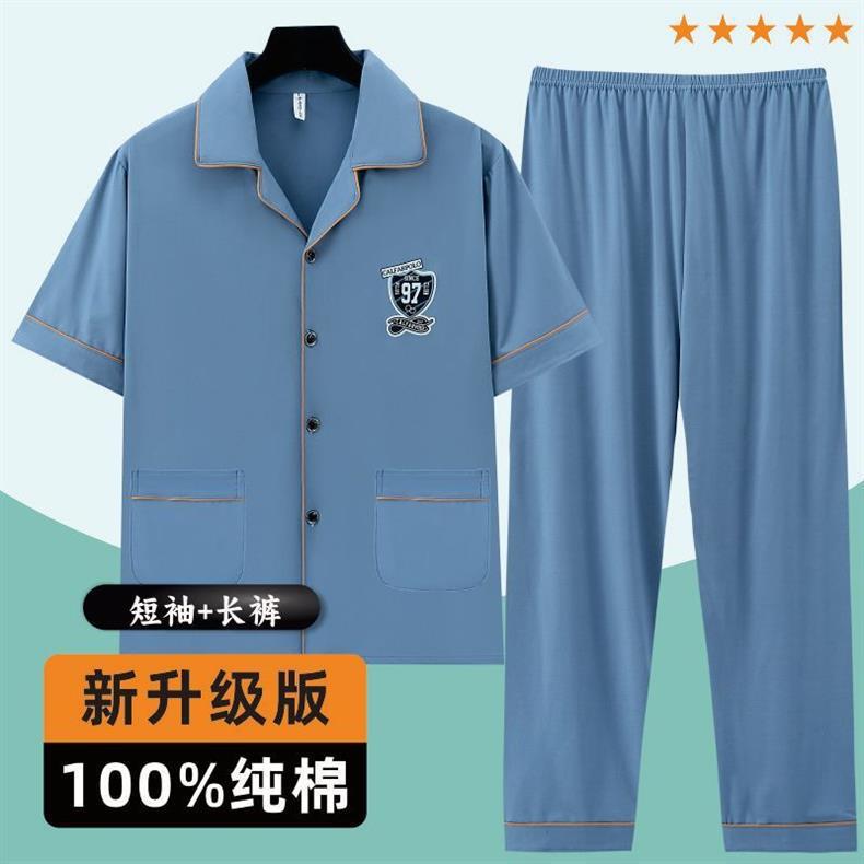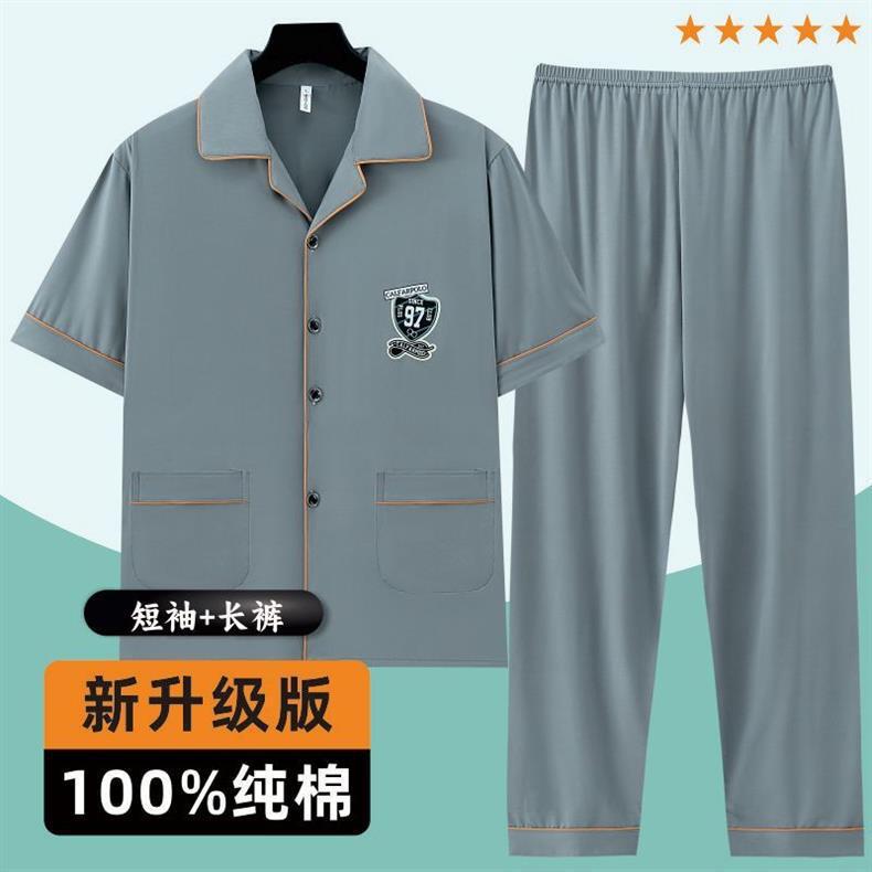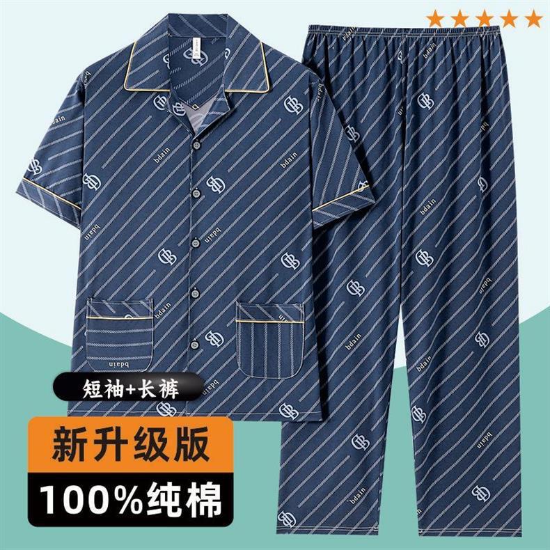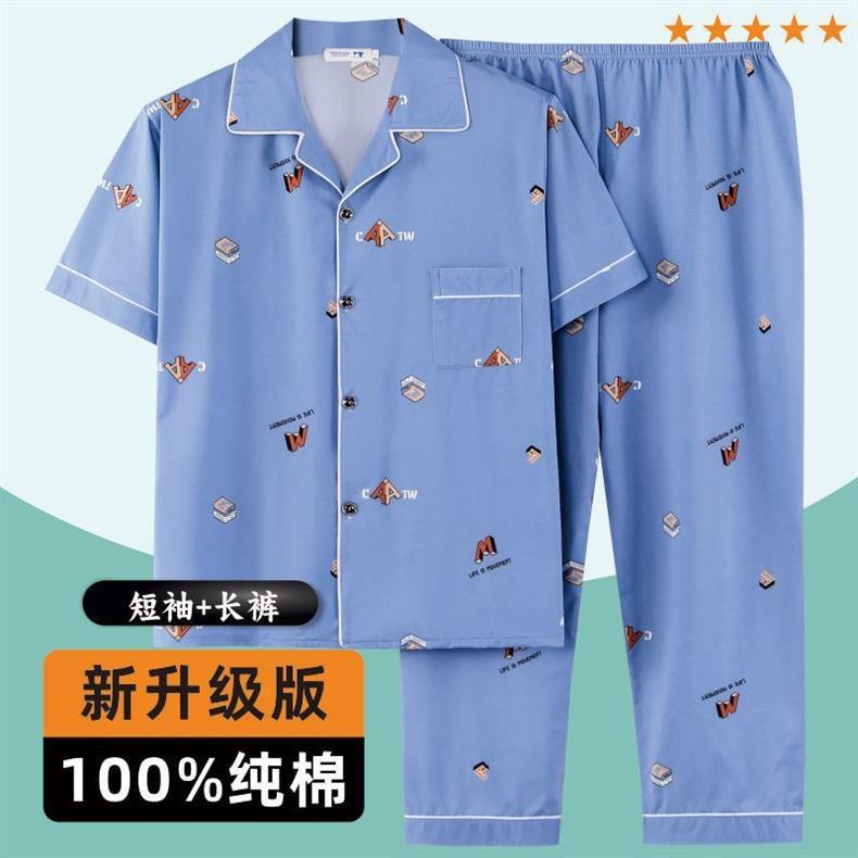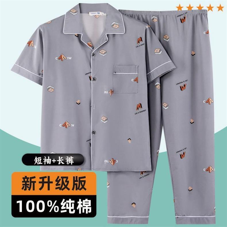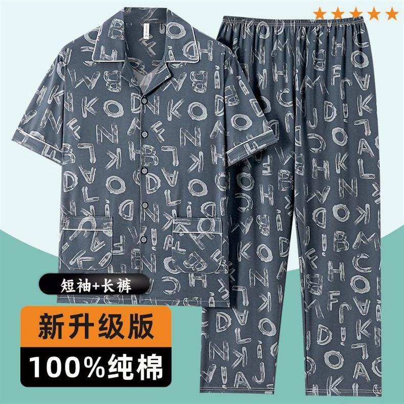 Fertilizador y ropa de hogar de tamaño grande pijama de hombre algodón de verano algodón conjunto de manga corta juveniles primavera y otoño delgada