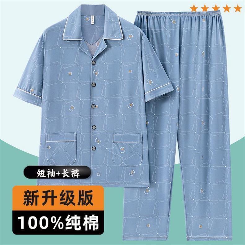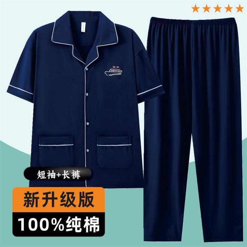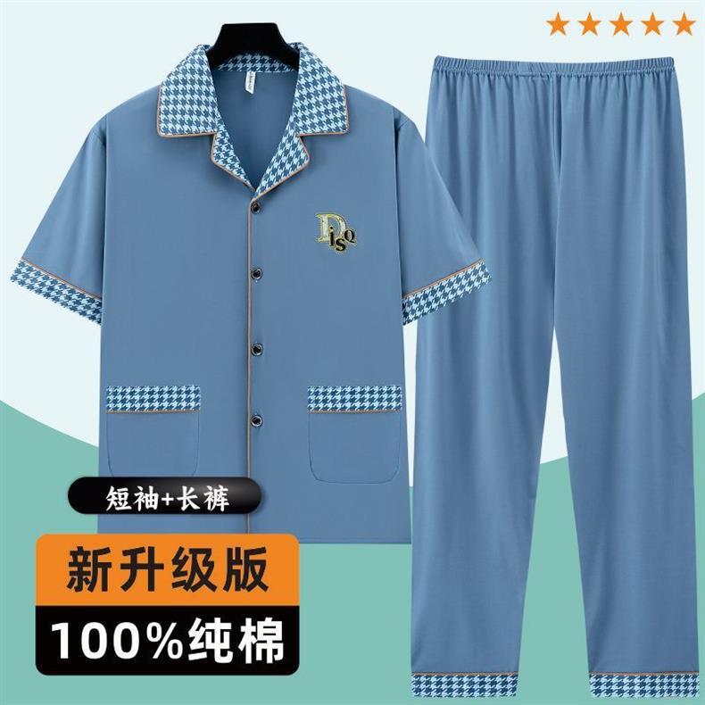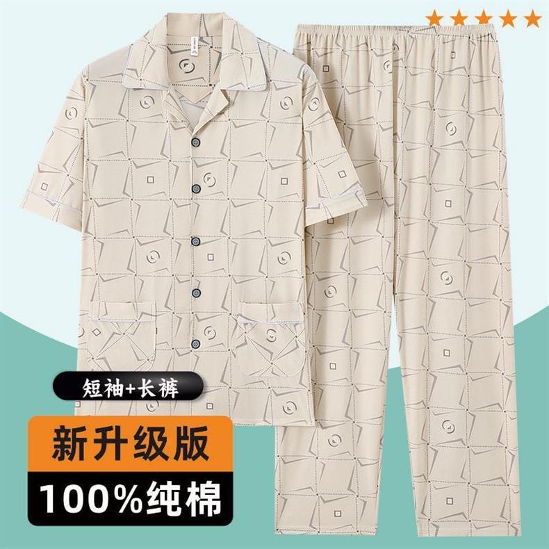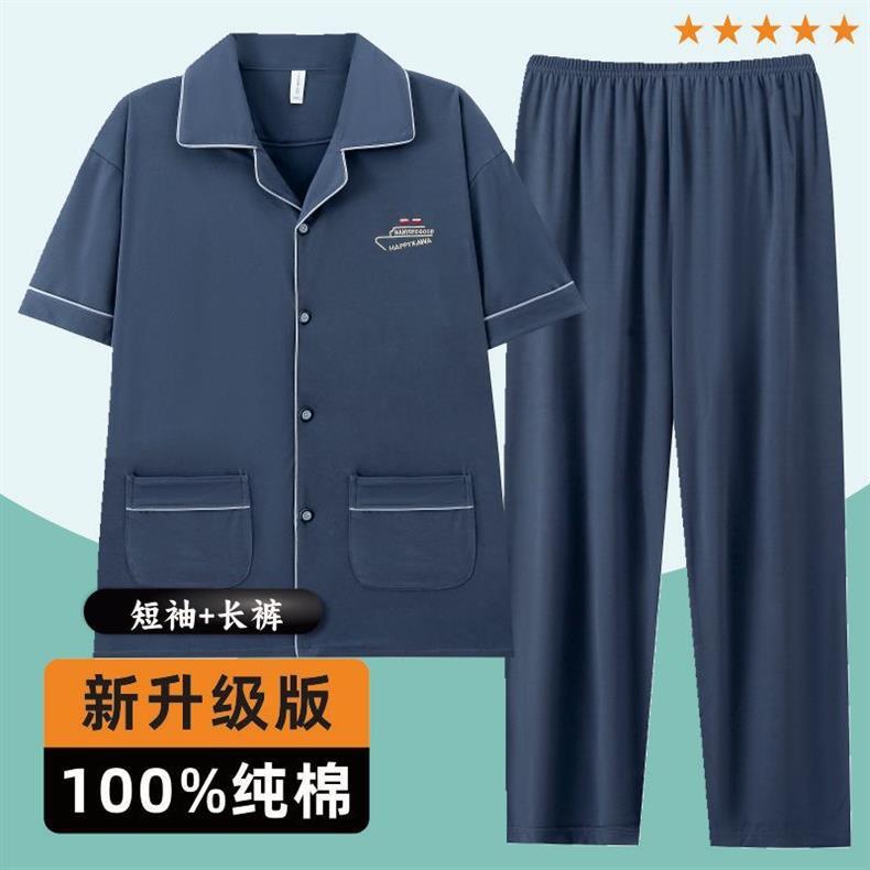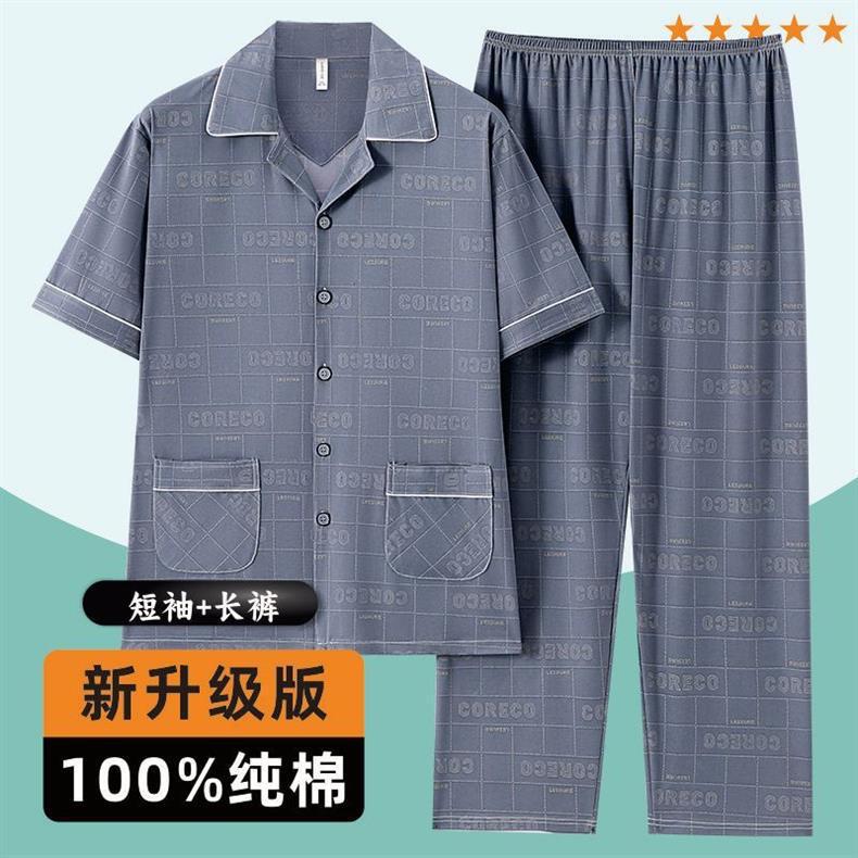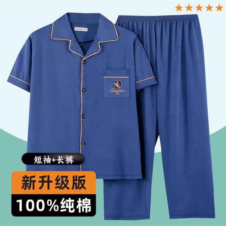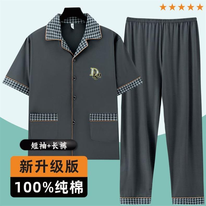 Fertilizador y ropa de hogar de tamaño grande pijama de hombre algodón de verano algodón conjunto de manga corta juveniles primavera y otoño delgada