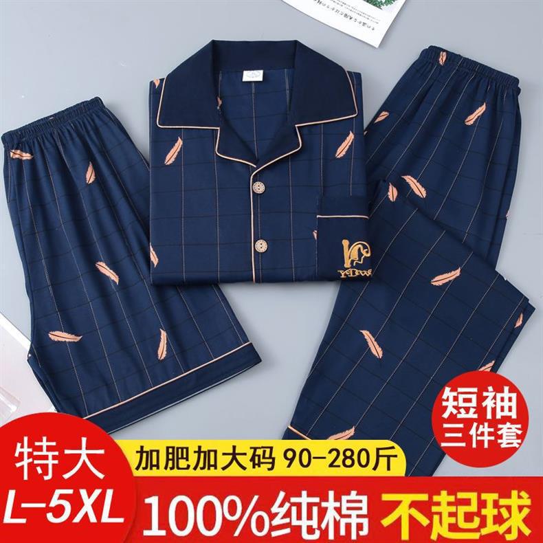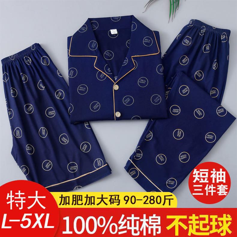 Pijamas de algodón masculino de verano tres piezas set de mangas cortas primavera y otoño delgada tamaño grande se puede usar ropa para el hogar