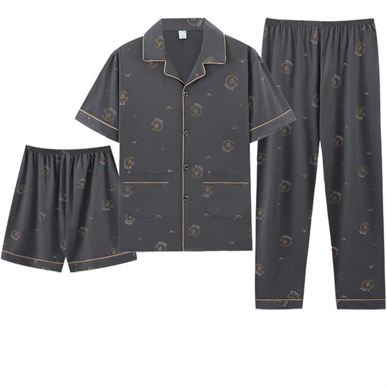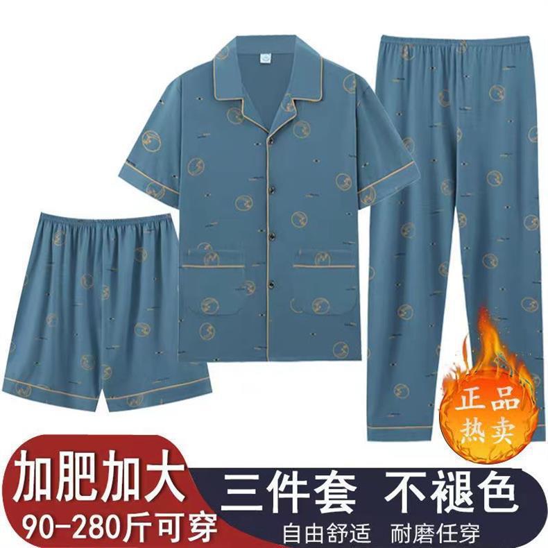 2024 nuevo algodón primavera y otoño tres piezas juego casual se puede usar pantalones de mangas cortas pijamas de hombre ropa para el hogar de tamaño grande