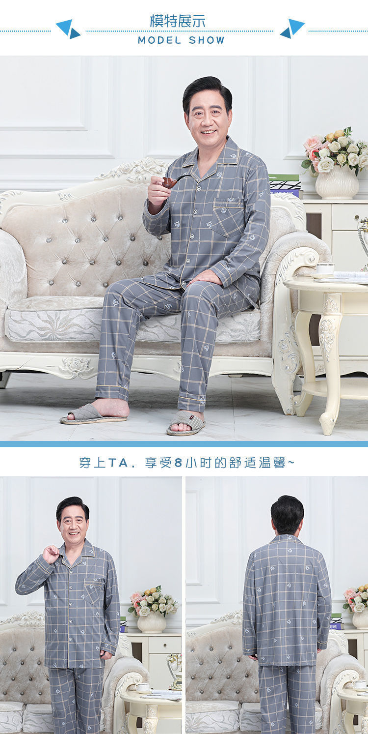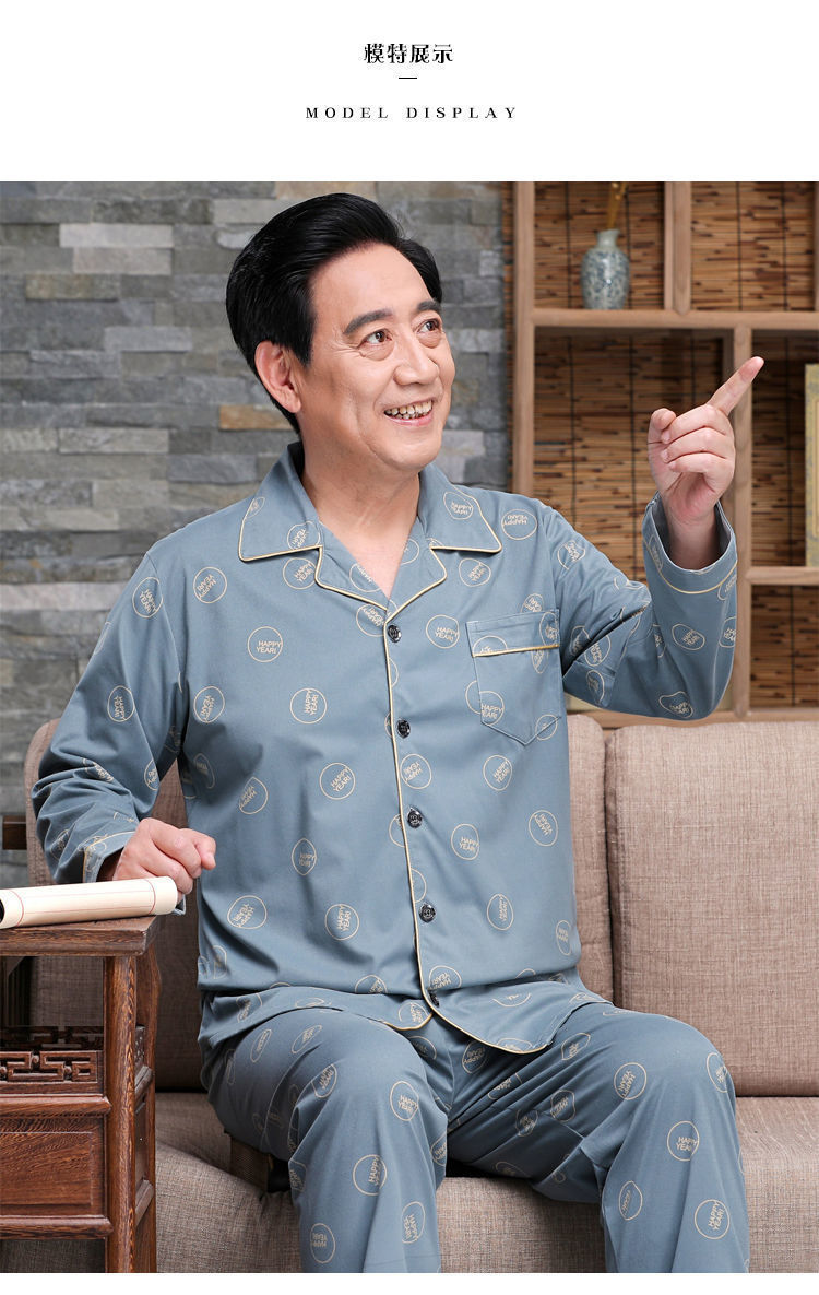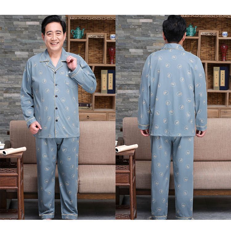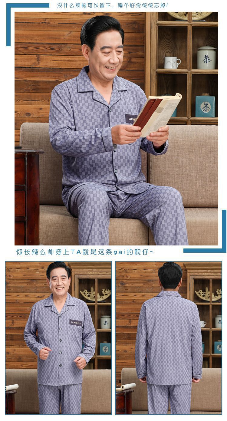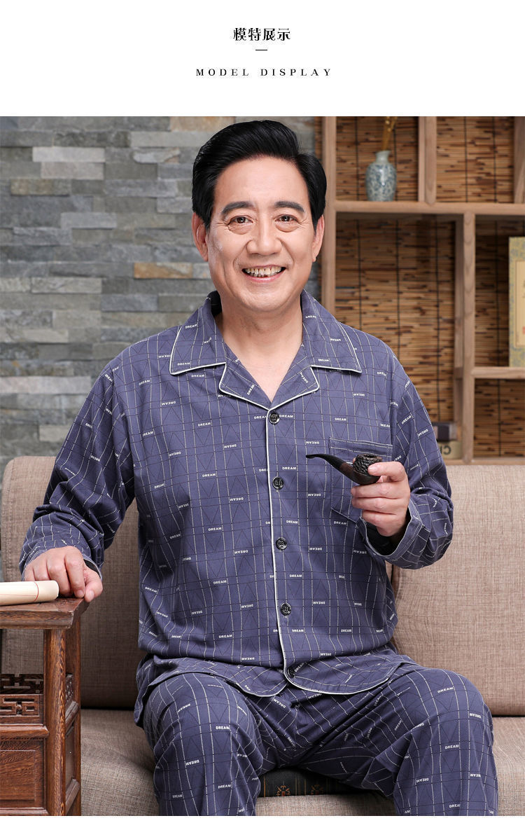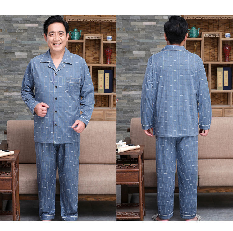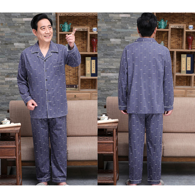 Pijamas de mediana edad y ancianos hombres 100% algodón primavera y otoño manga larga otoño e invierno más tamaño viejo papá traje de uso doméstico