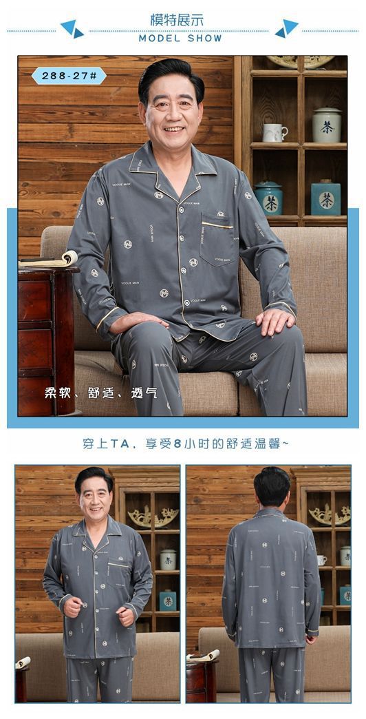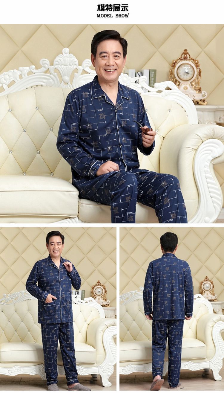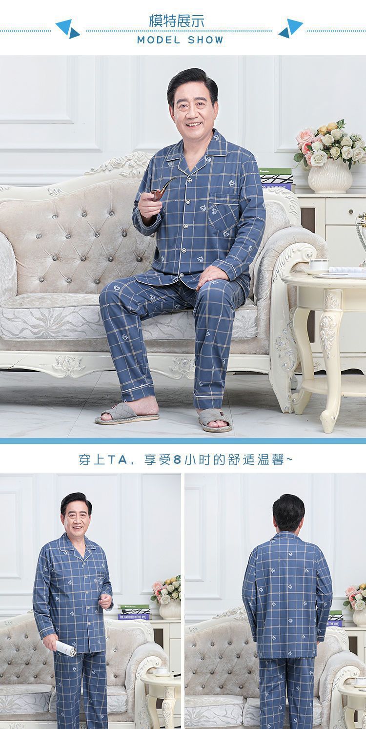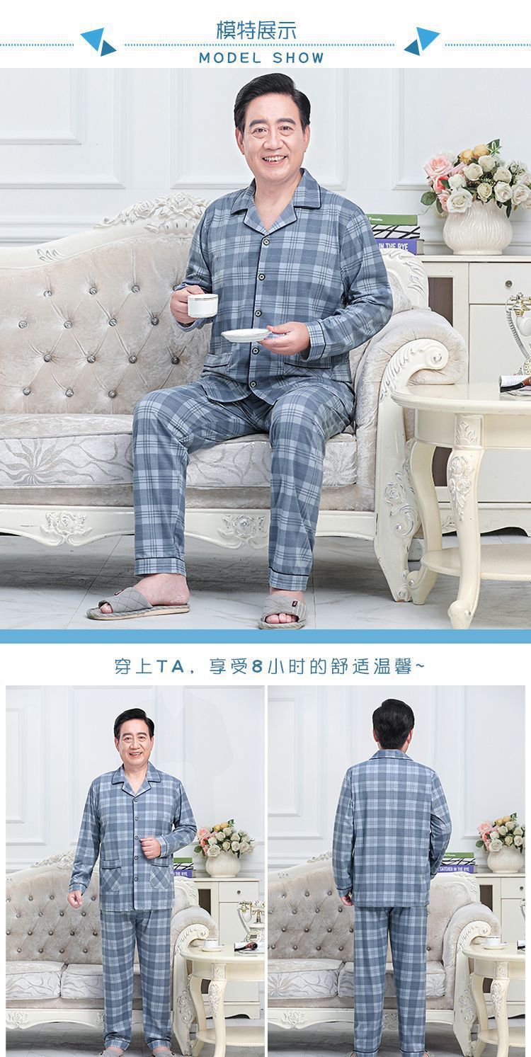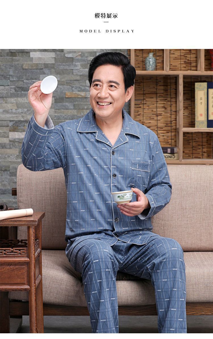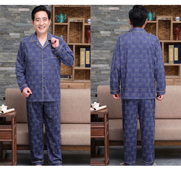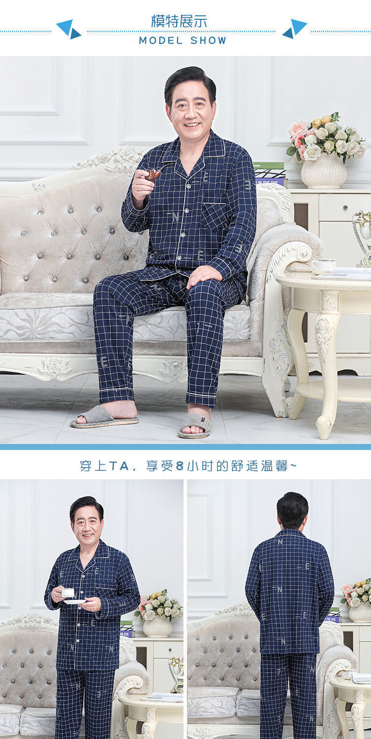 Pijamas de mediana edad y ancianos hombres 100% algodón primavera y otoño manga larga otoño e invierno más tamaño viejo papá traje de uso doméstico