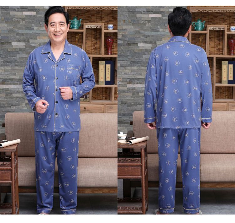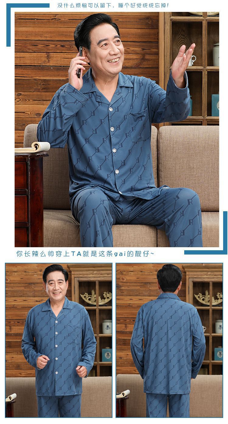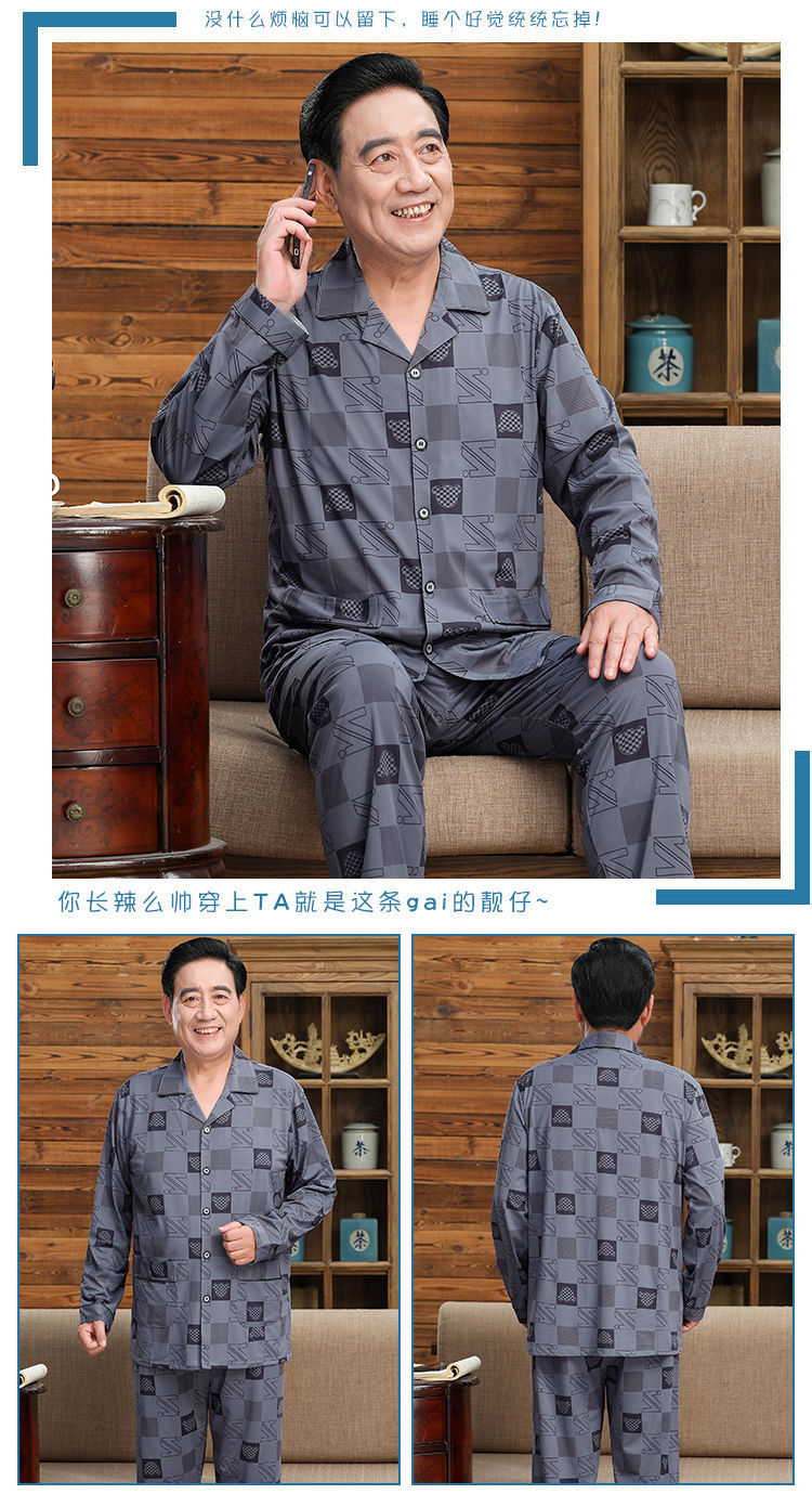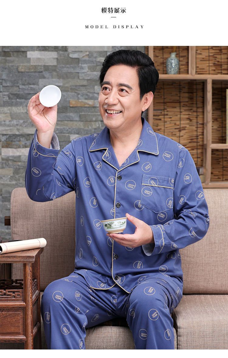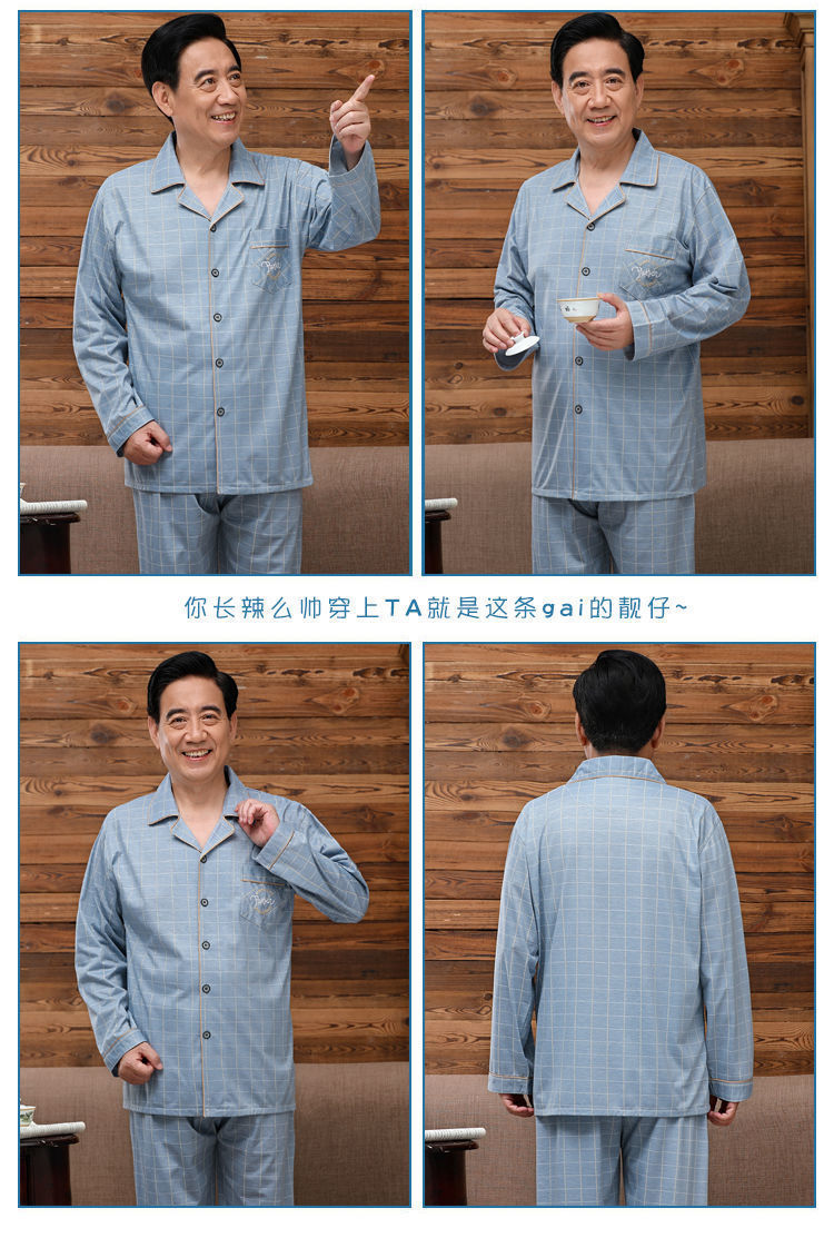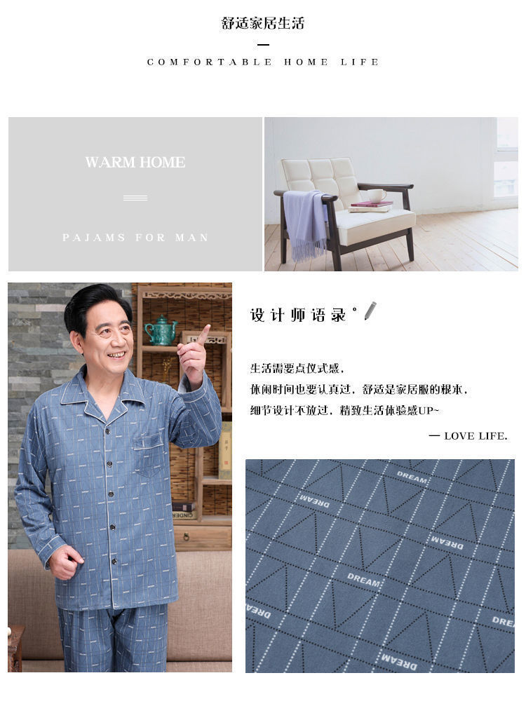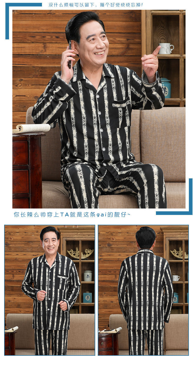 Pijamas de mediana edad y ancianos hombres 100% algodón primavera y otoño manga larga otoño e invierno más tamaño viejo papá traje de uso doméstico