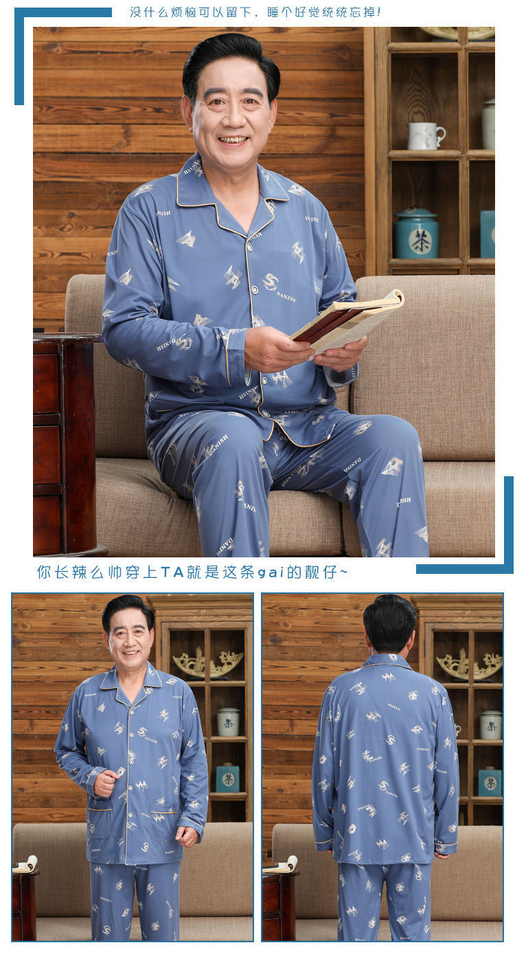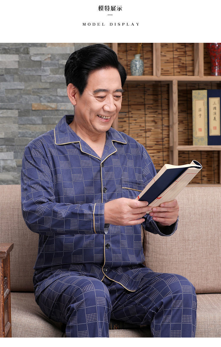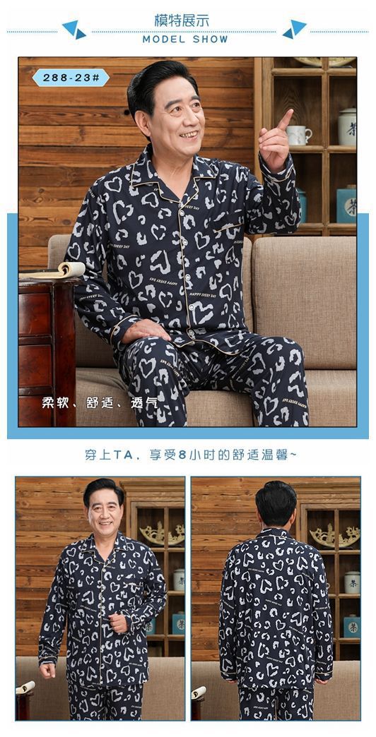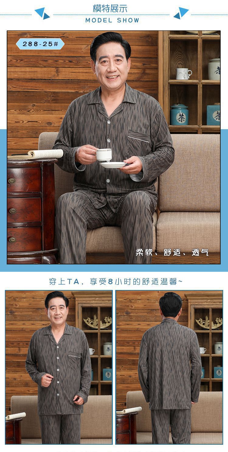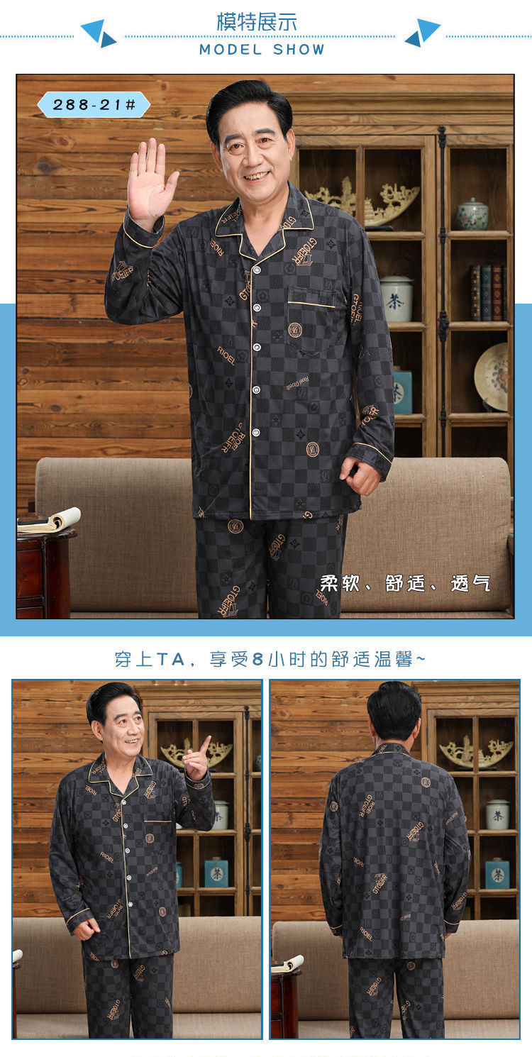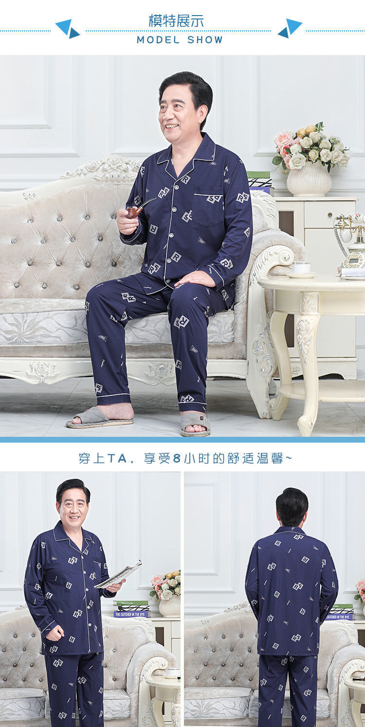 Pijamas de mediana edad y ancianos hombres 100% algodón primavera y otoño manga larga otoño e invierno más tamaño viejo papá traje de uso doméstico