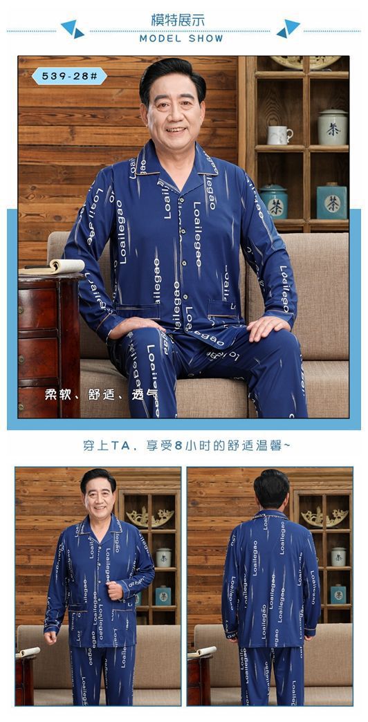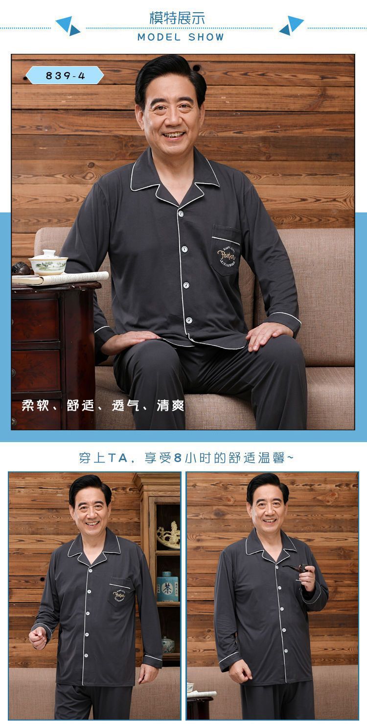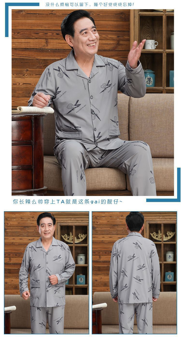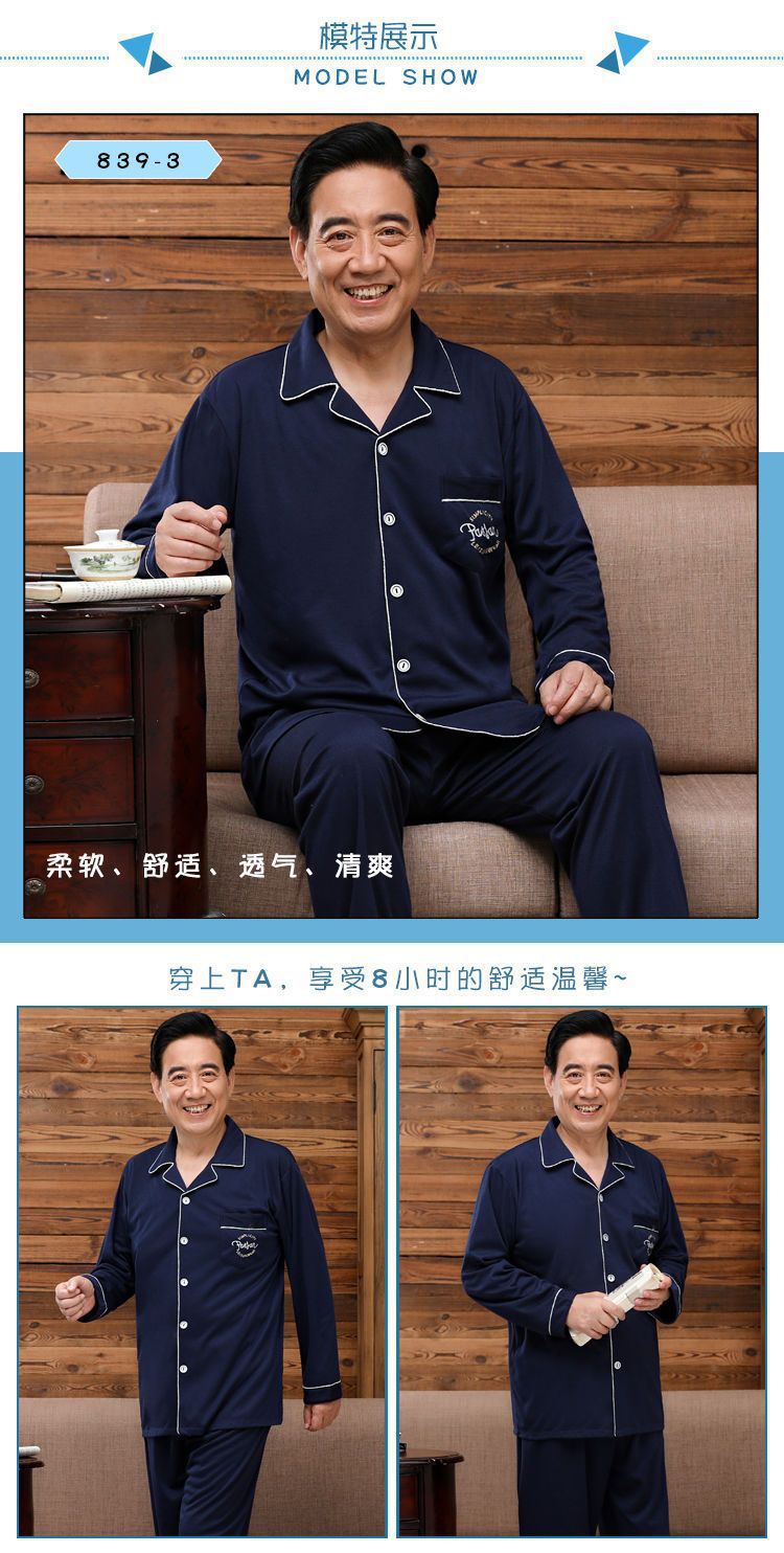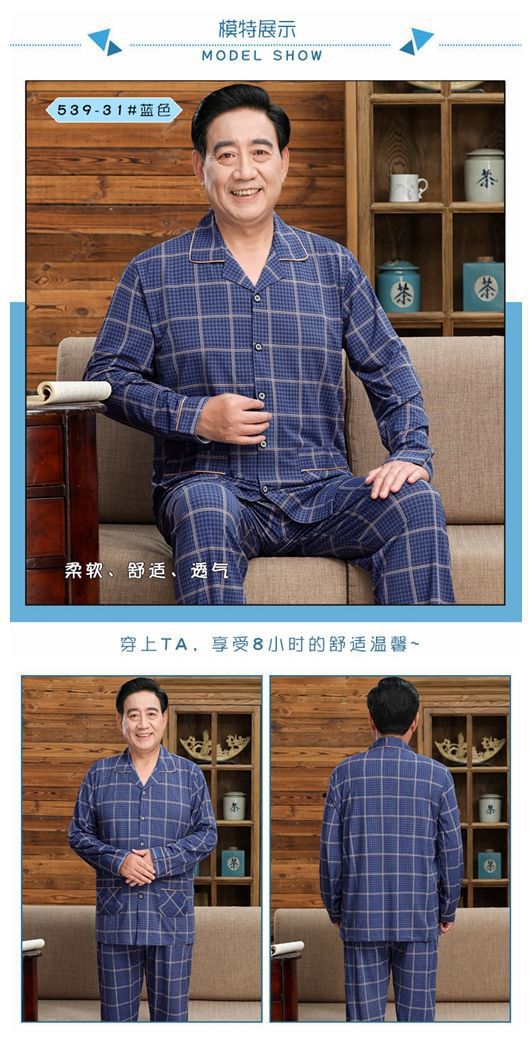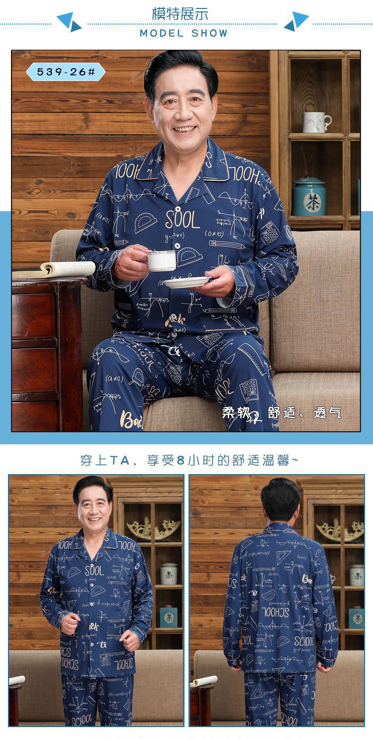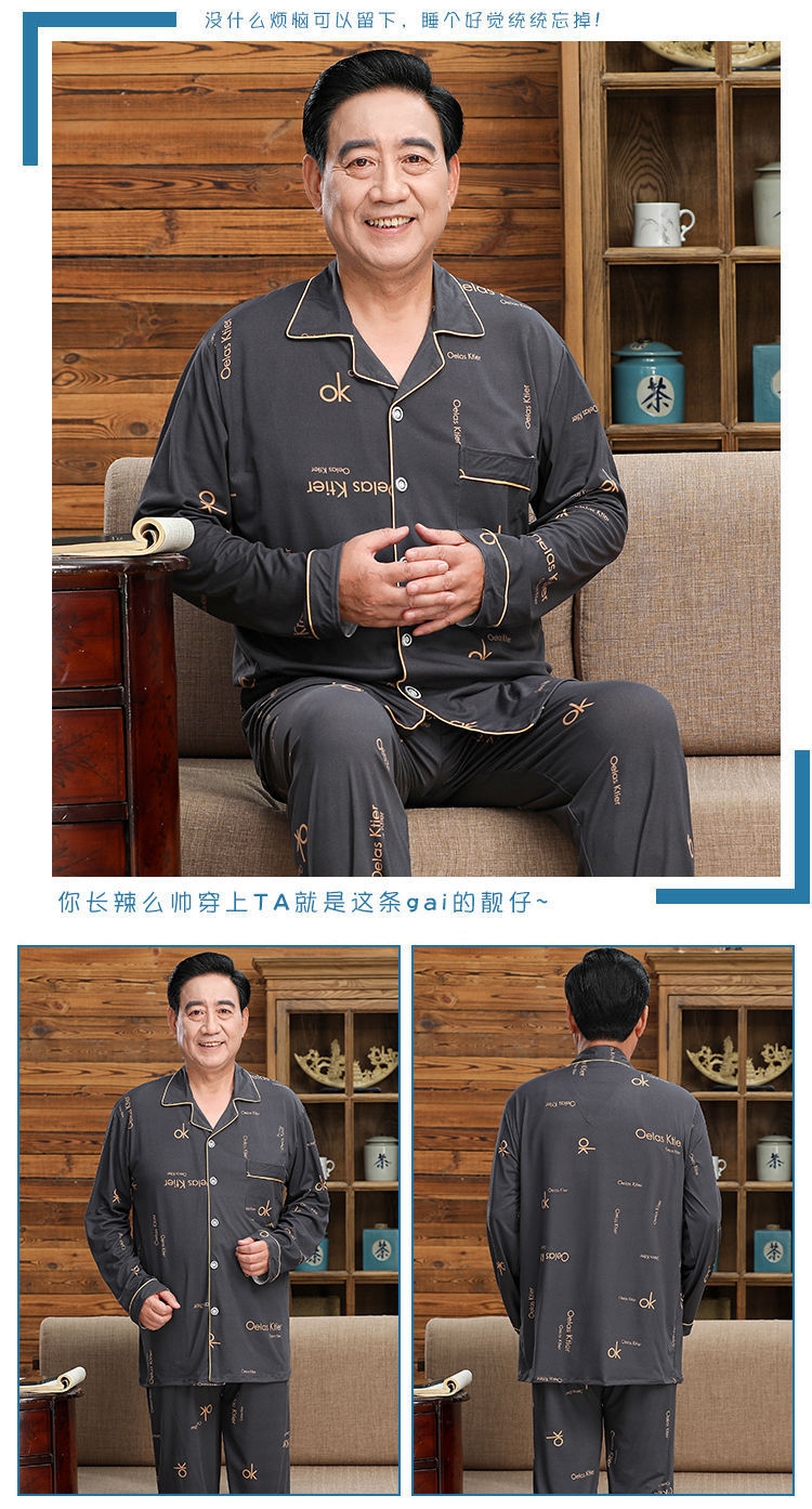 Pijamas de mediana edad y ancianos hombres 100% algodón primavera y otoño manga larga otoño e invierno más tamaño viejo papá traje de uso doméstico
